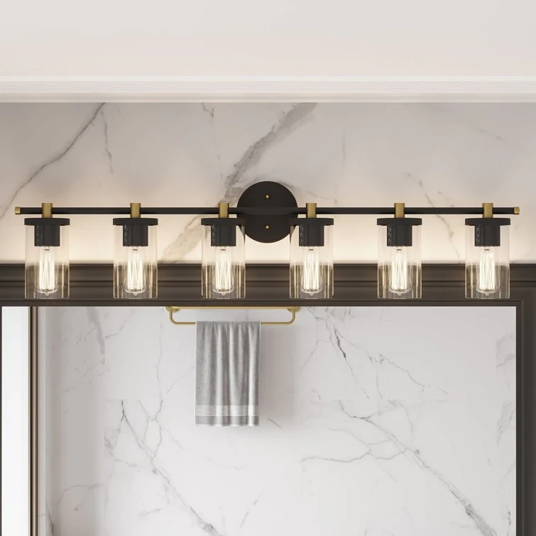 Modern Black Gold 2/3/4-Light Linear Bathroom Vanity Lights with Seeded Glass