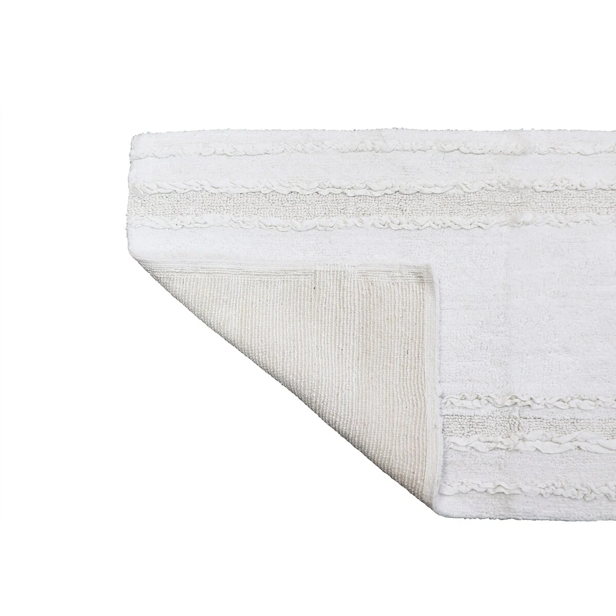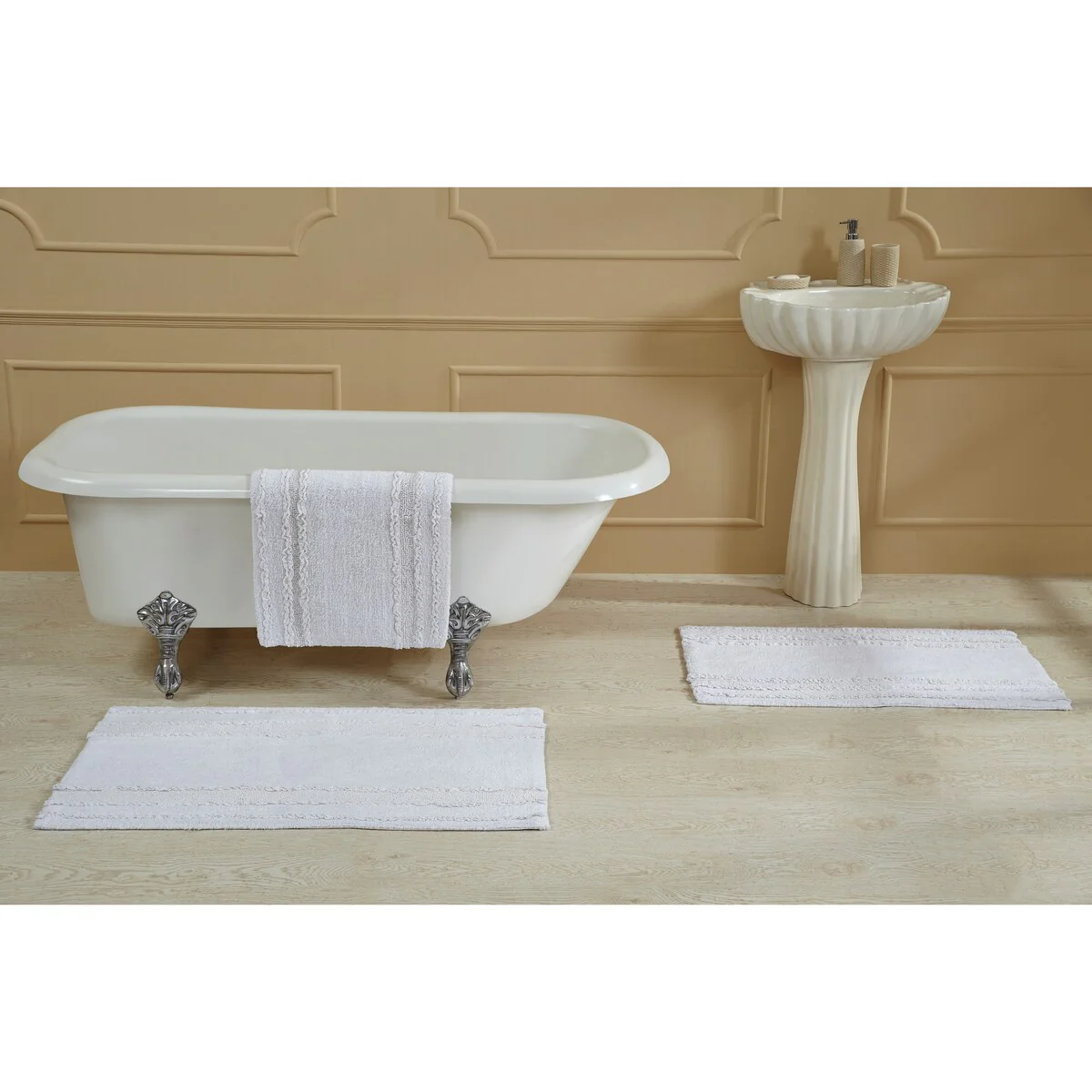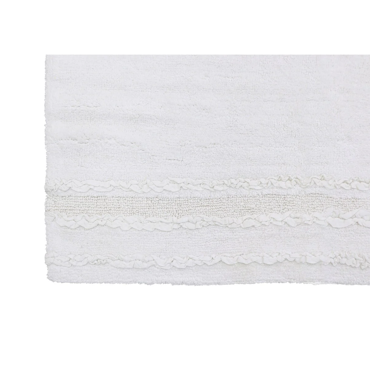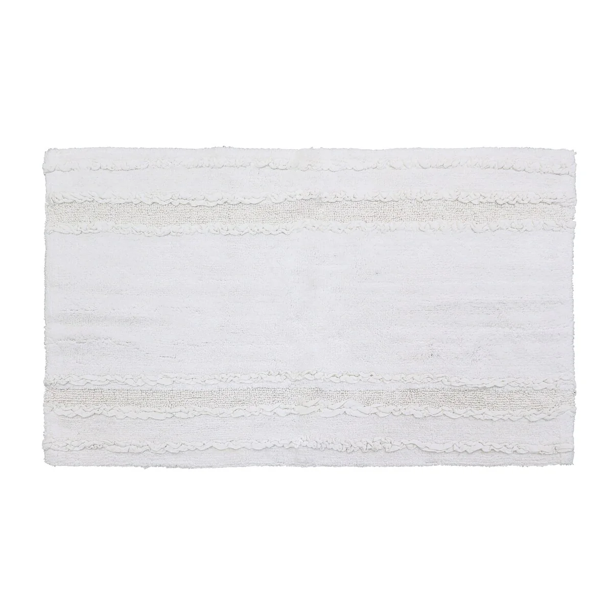Give your feet a warm and cozy comfort after you step out of the shower or bath with this Ruffle Collection of bath rug The stylish Ruffle rugs for the bathroom come in a wide range of sizes and colors for you to choose from Ruffle Border Collection of bath rug is conveniently machine washable for easy care and impressive longevity in your home Manufactured using premium quality Cotton Yarn, it is highly absorbent and makes your bathroom floors dry quick Ruffle Border collection of bath rugs are made of 100% soft Cotton They are comfortable stylish and absorbent - ideal for outside the bathtub shower spa or near the sink They are also great in the kitchen or at a doorway It has a intrigue over stich of stripe with ruffle fabric Ruffle Border Collection are available in 3 colors and 3 Sizes