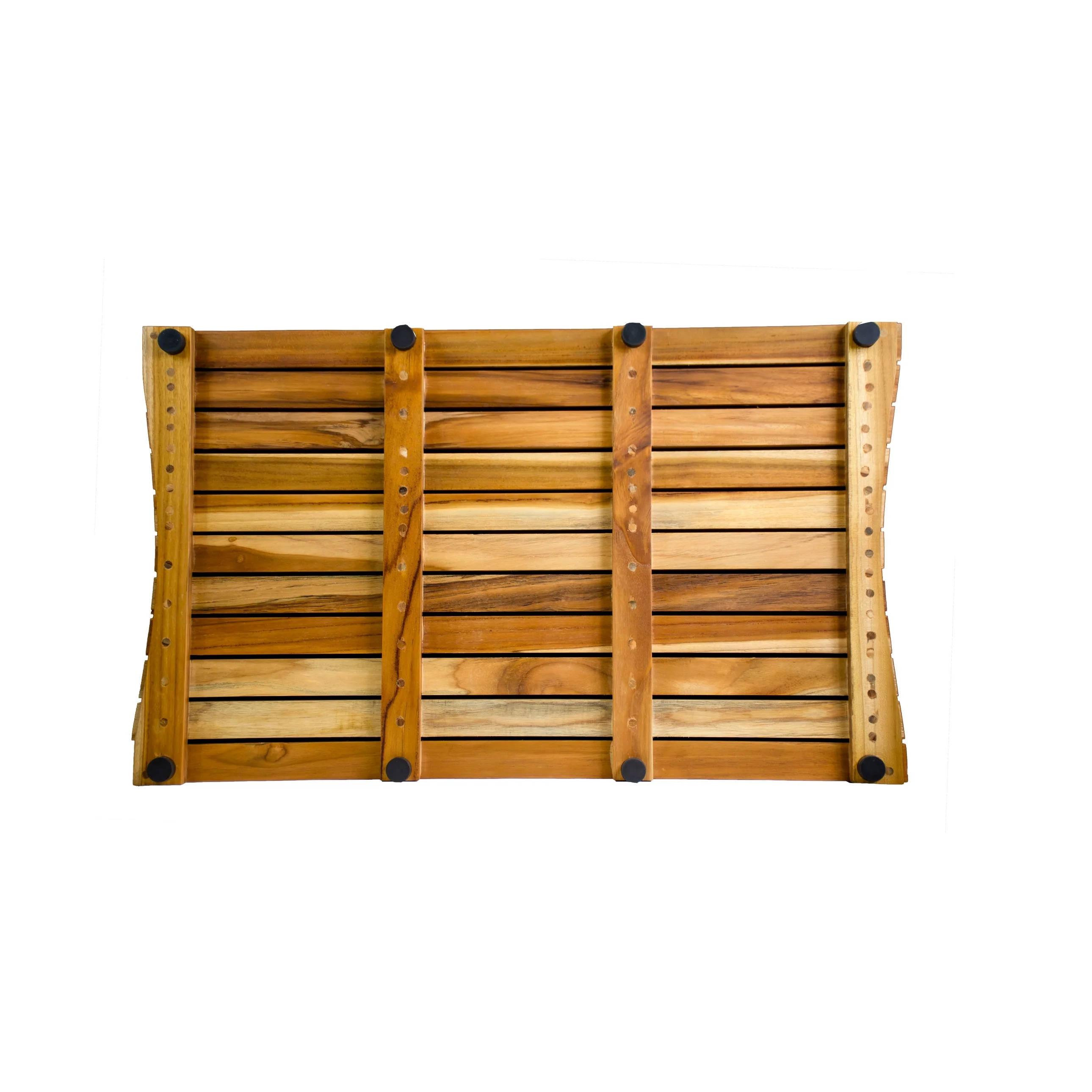 Solid Plantation Teak Construction: Crafted from sustainably sourced solid teak, this mat offers both durability and natural beauty, showcasing unique grains and rich hues that add warmth and elegance to any space.