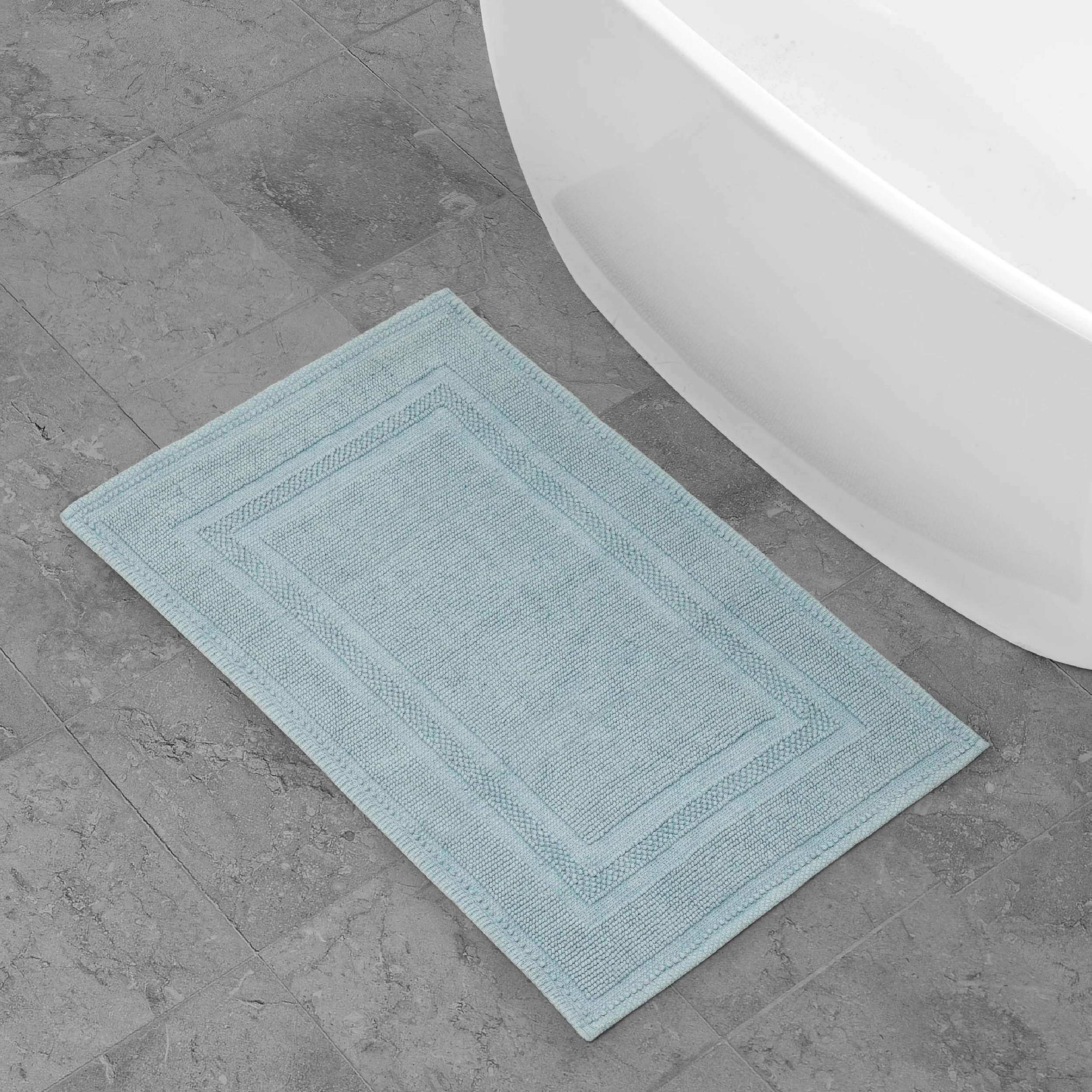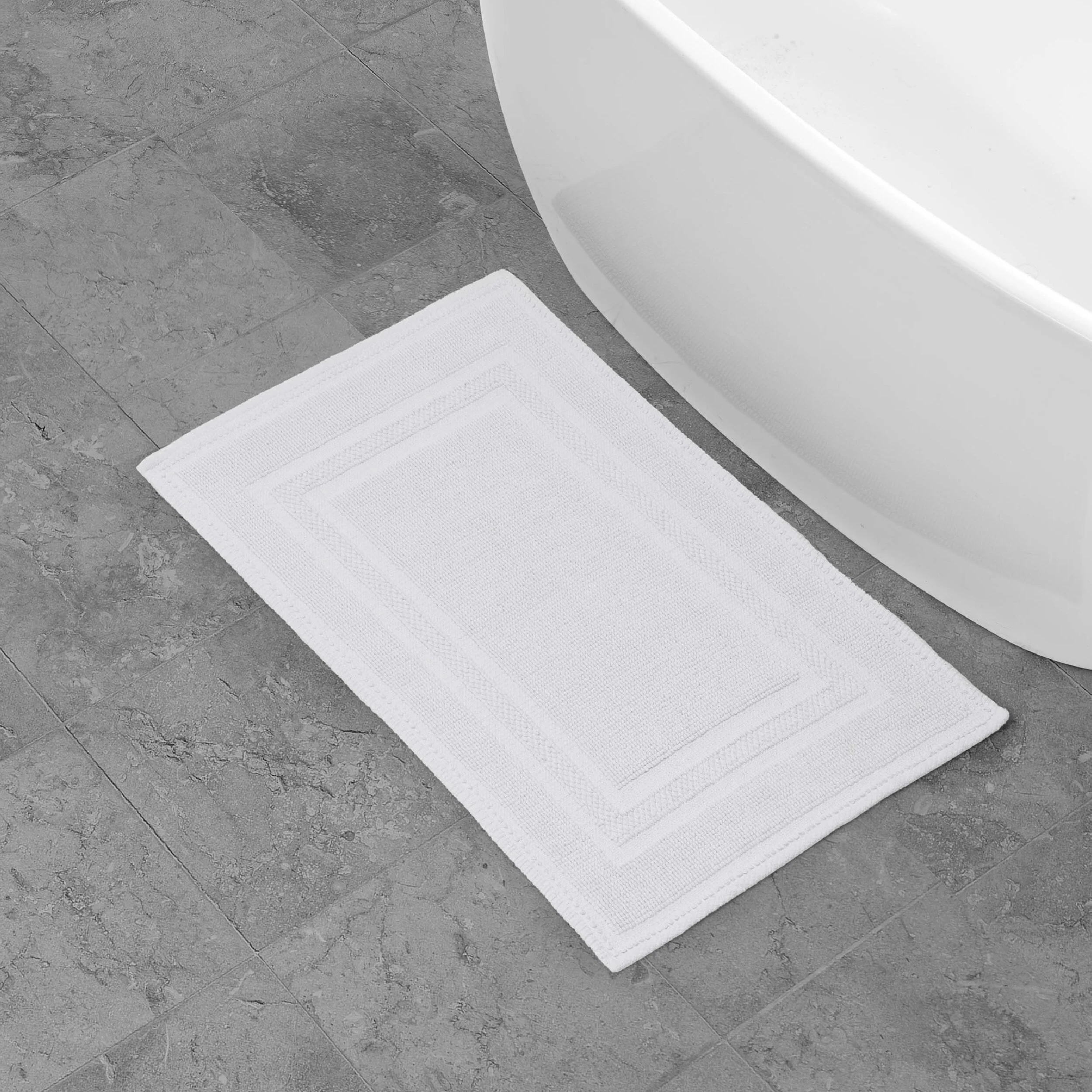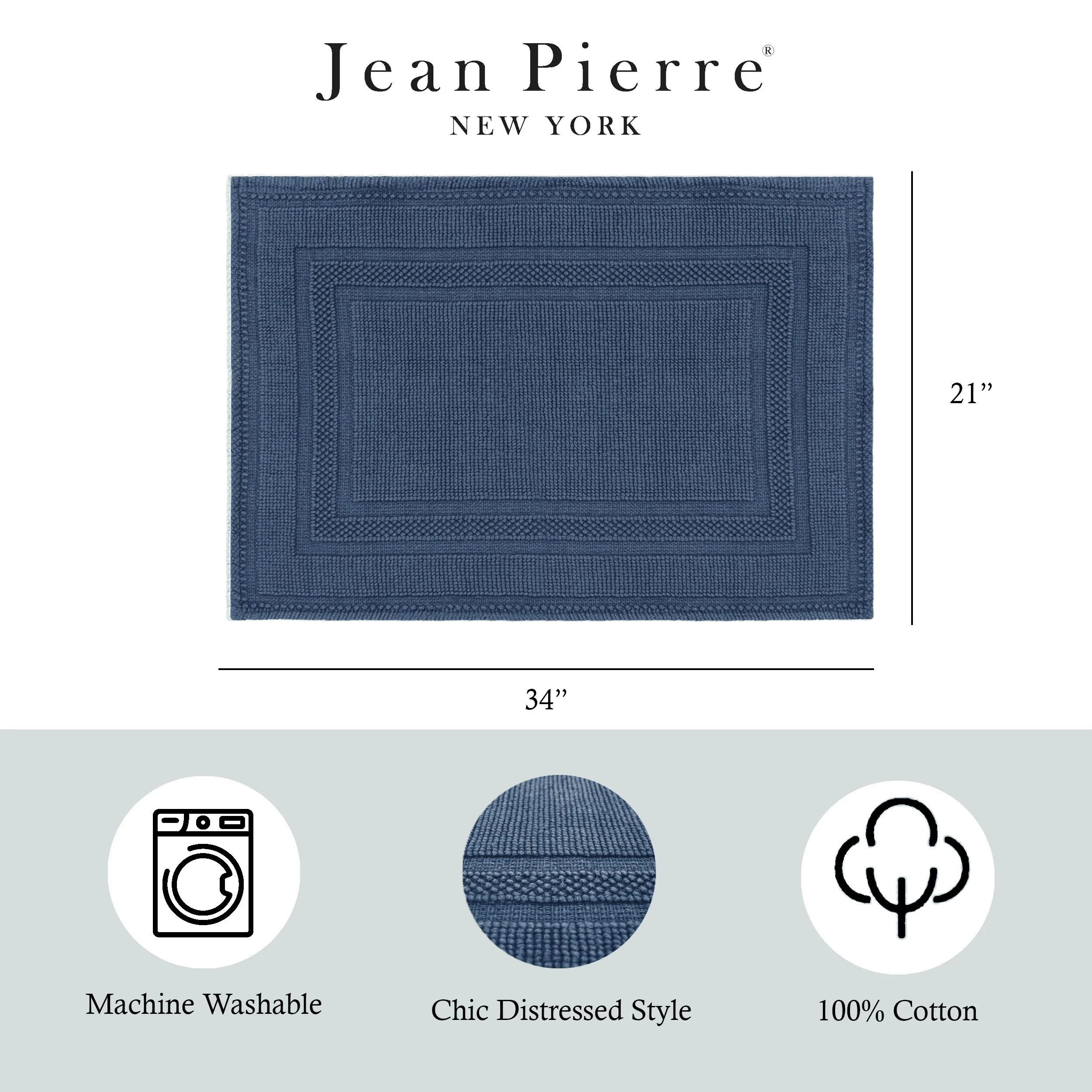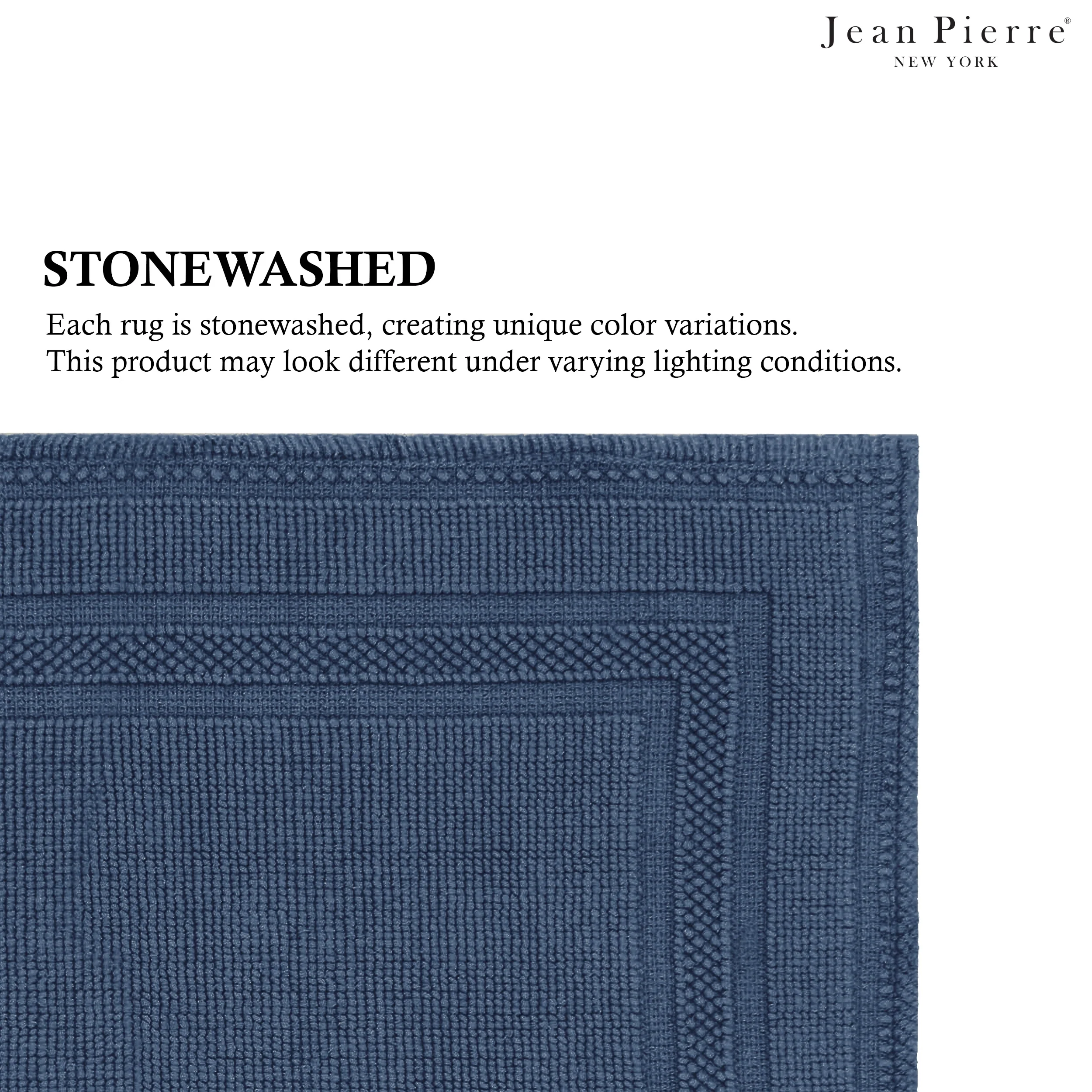 Elevate your bathroom with the chic distressed style of the Jean Pierre Cotton Stonewash Racetrack Bath Rug. This 100% natural cotton bath rug boasts a classic woven design and comes in trendy colors to seamlessly update your bathroom decor. The stonewash process creates unique variations in color and tone for an inviting look. Machine washable and available in a range of sizes. Rug pad recommended (sold separately).