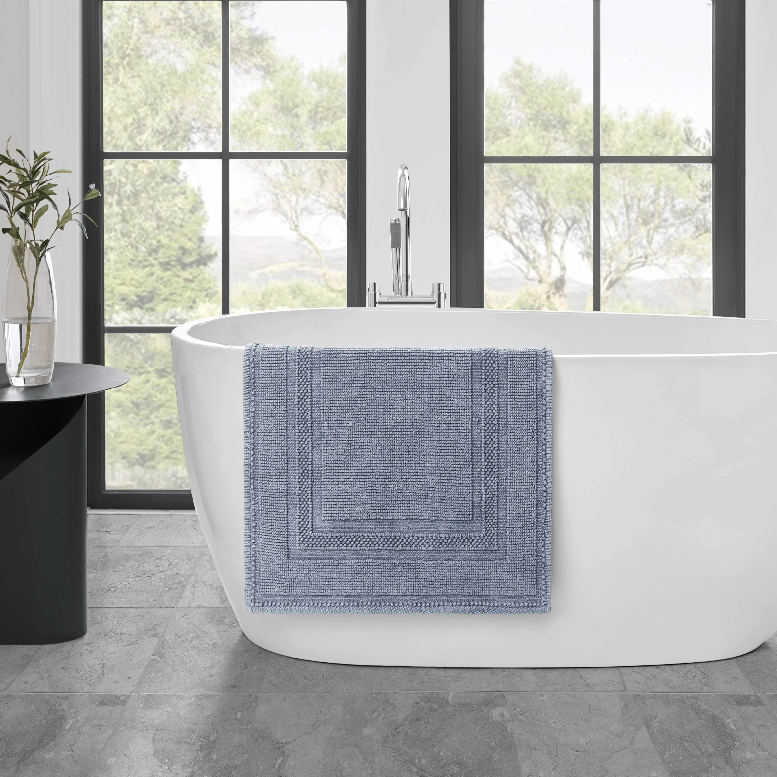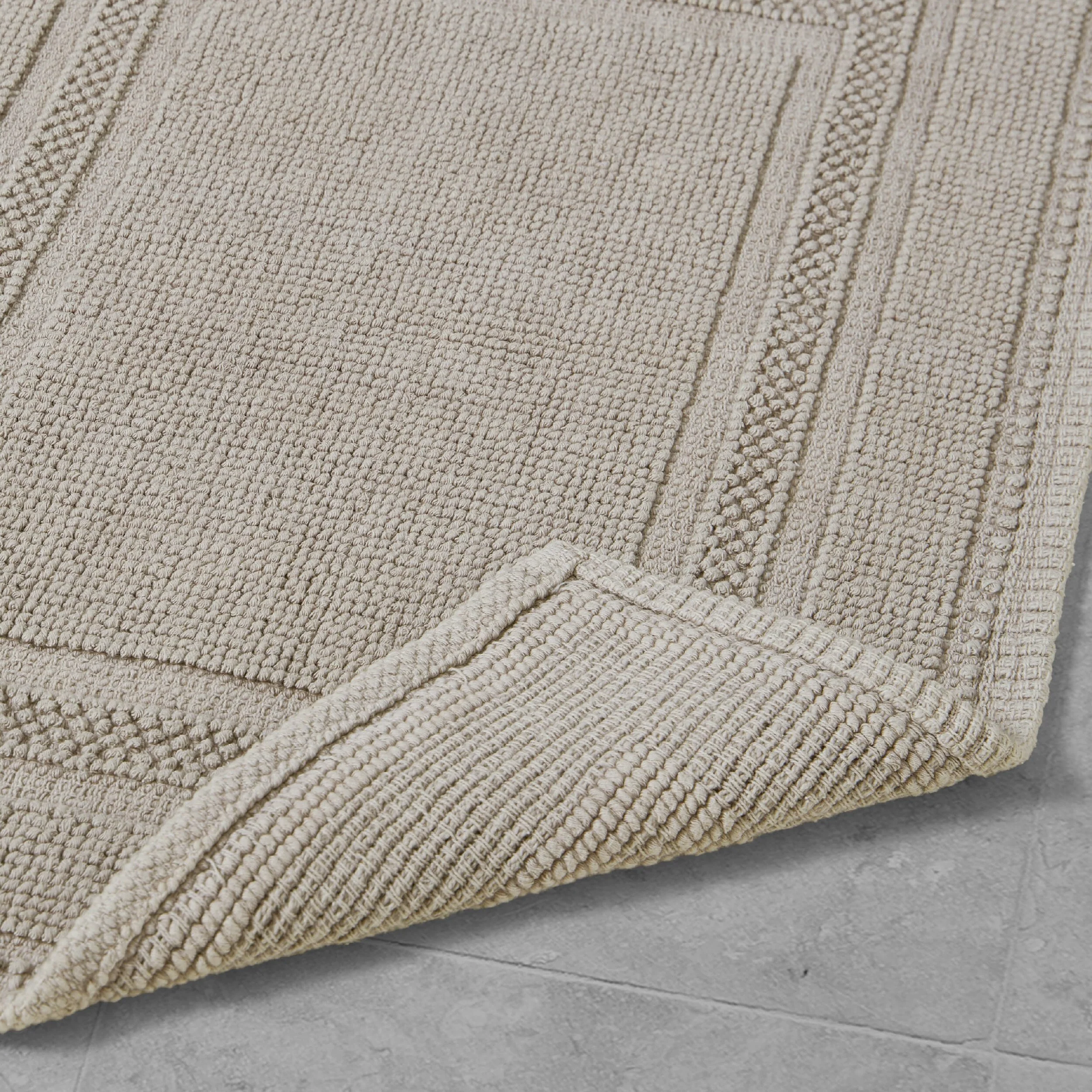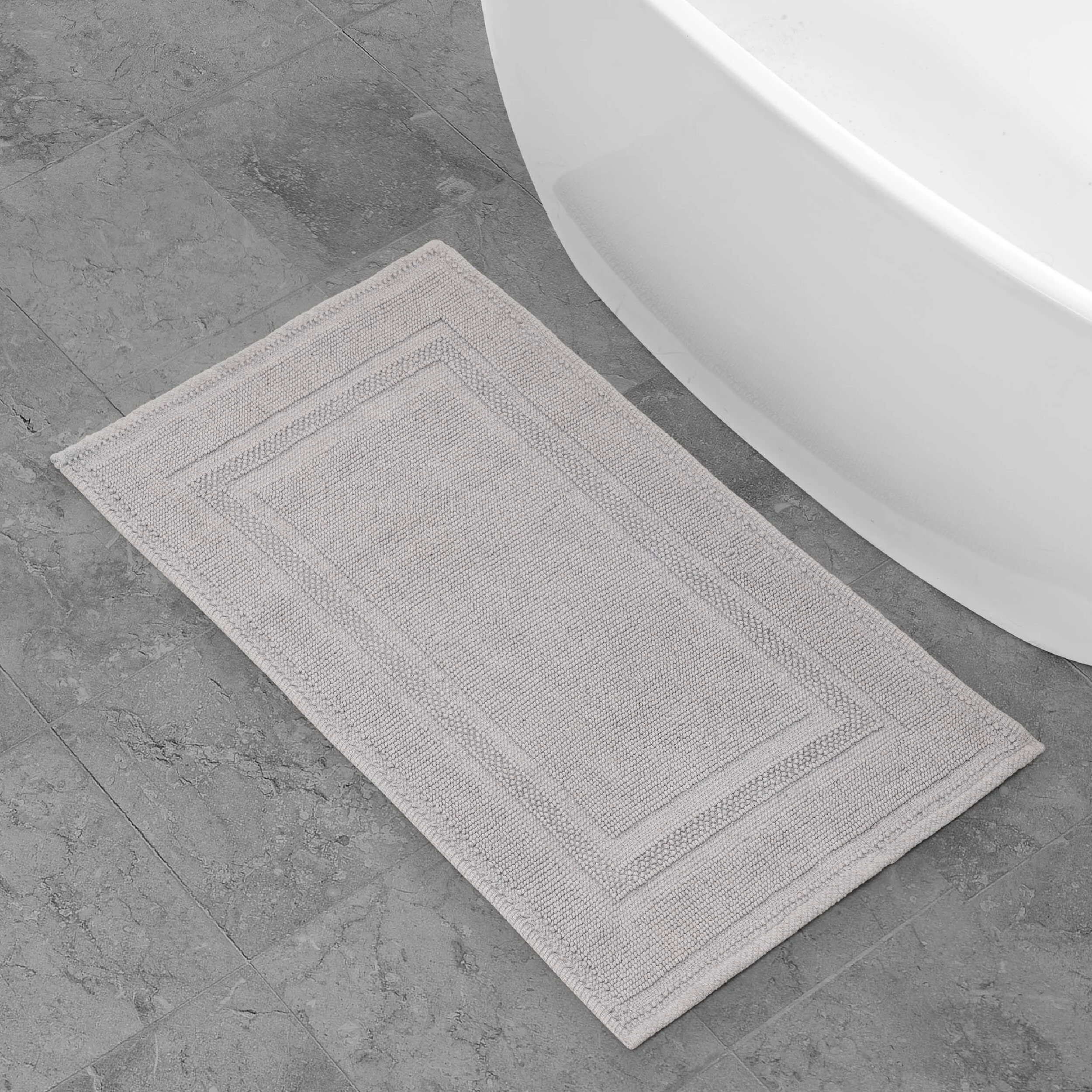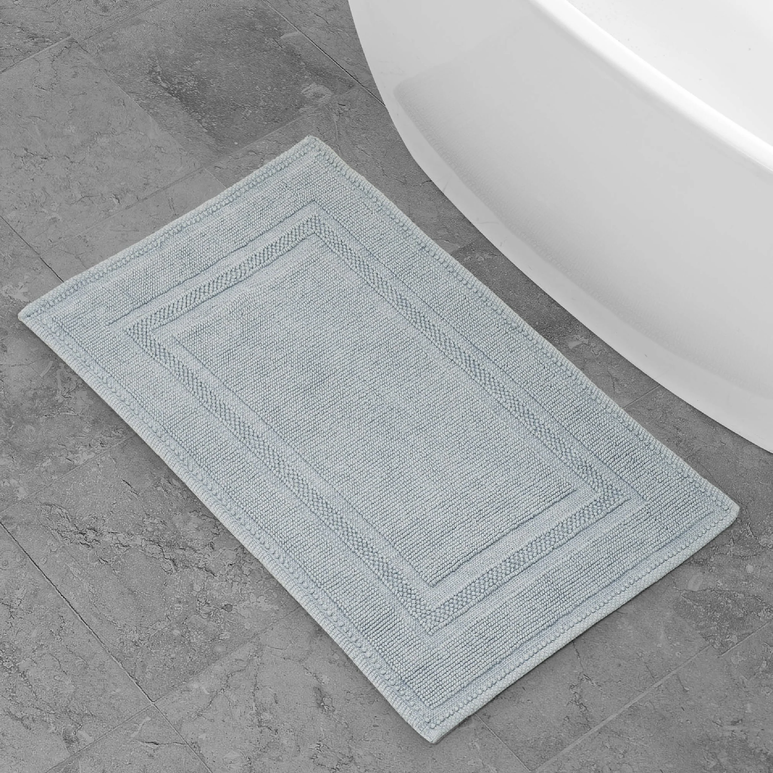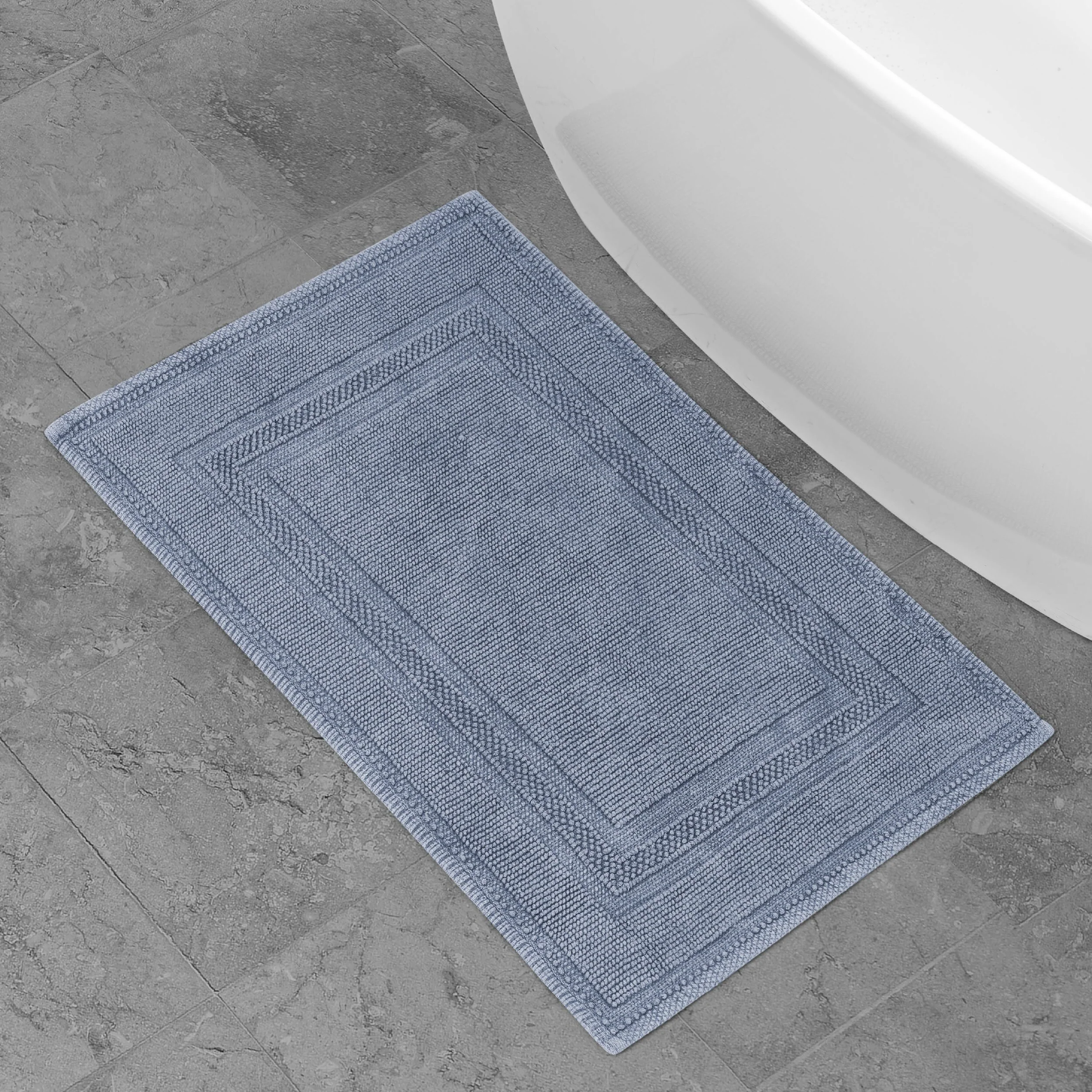 Elevate your bathroom with the chic distressed style of the Jean Pierre Cotton Stonewash Racetrack Bath Rug. This 100% natural cotton bath rug boasts a classic woven design and comes in trendy colors to seamlessly update your bathroom decor. The stonewash process creates unique variations in color and tone for an inviting look. Machine washable and available in a range of sizes. Rug pad recommended (sold separately).