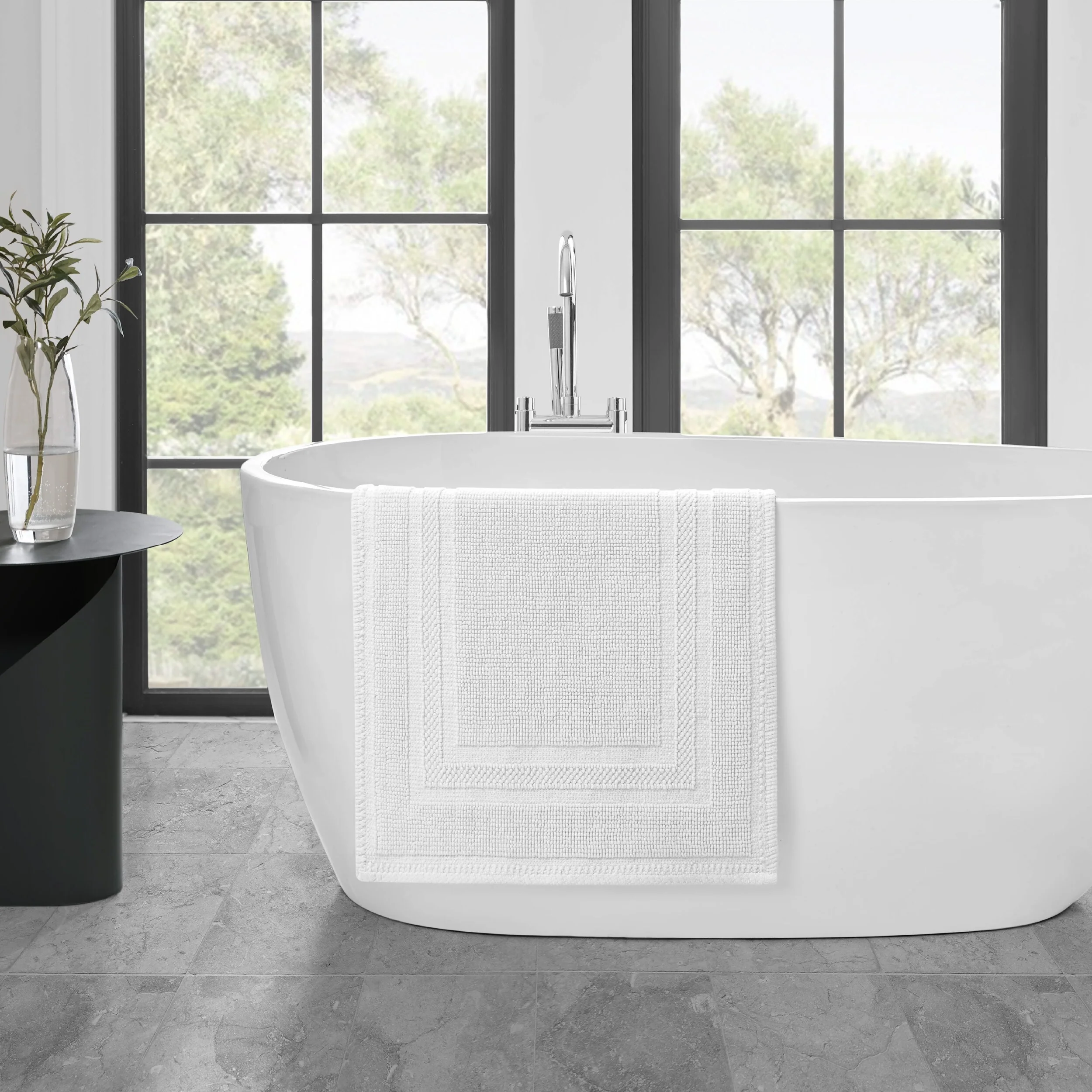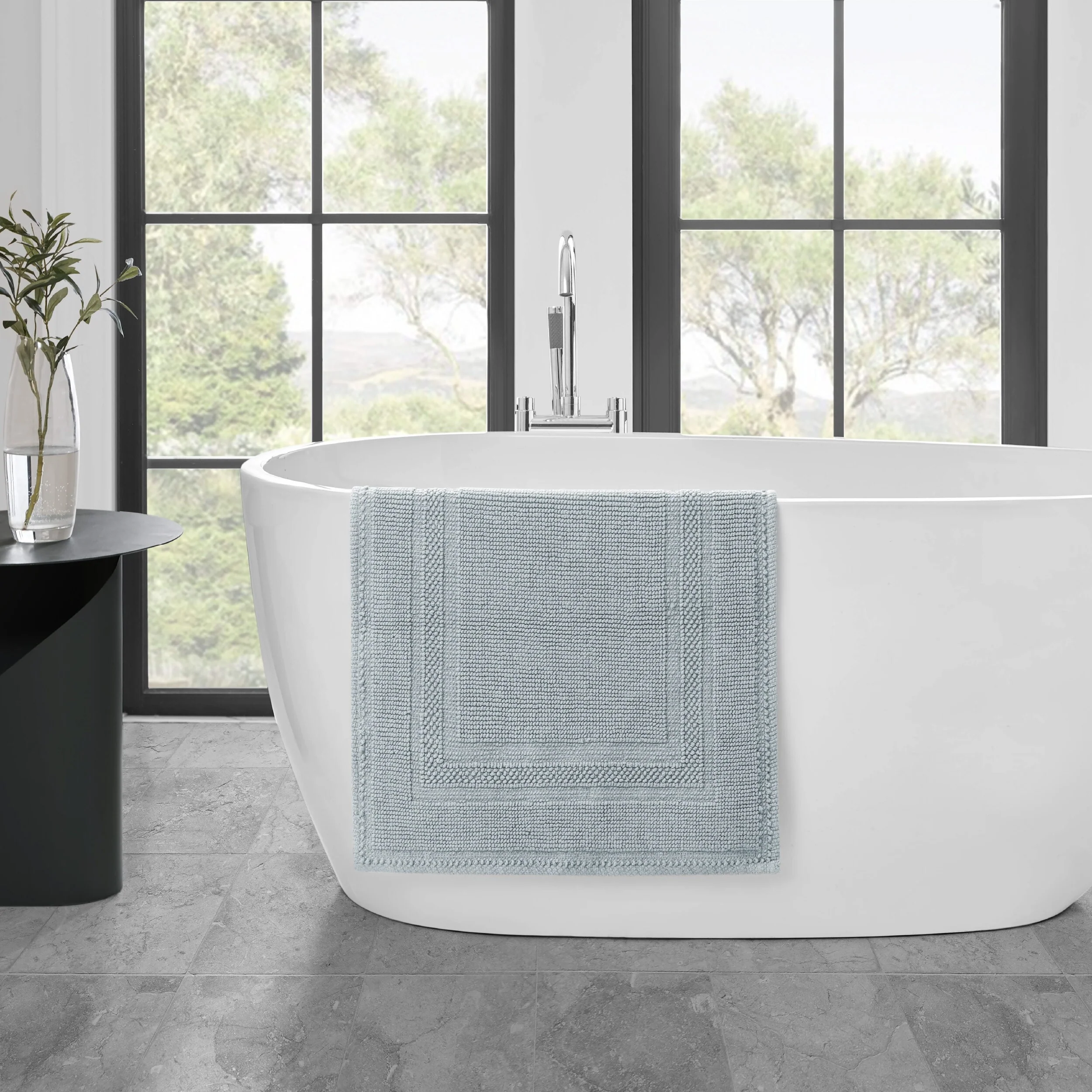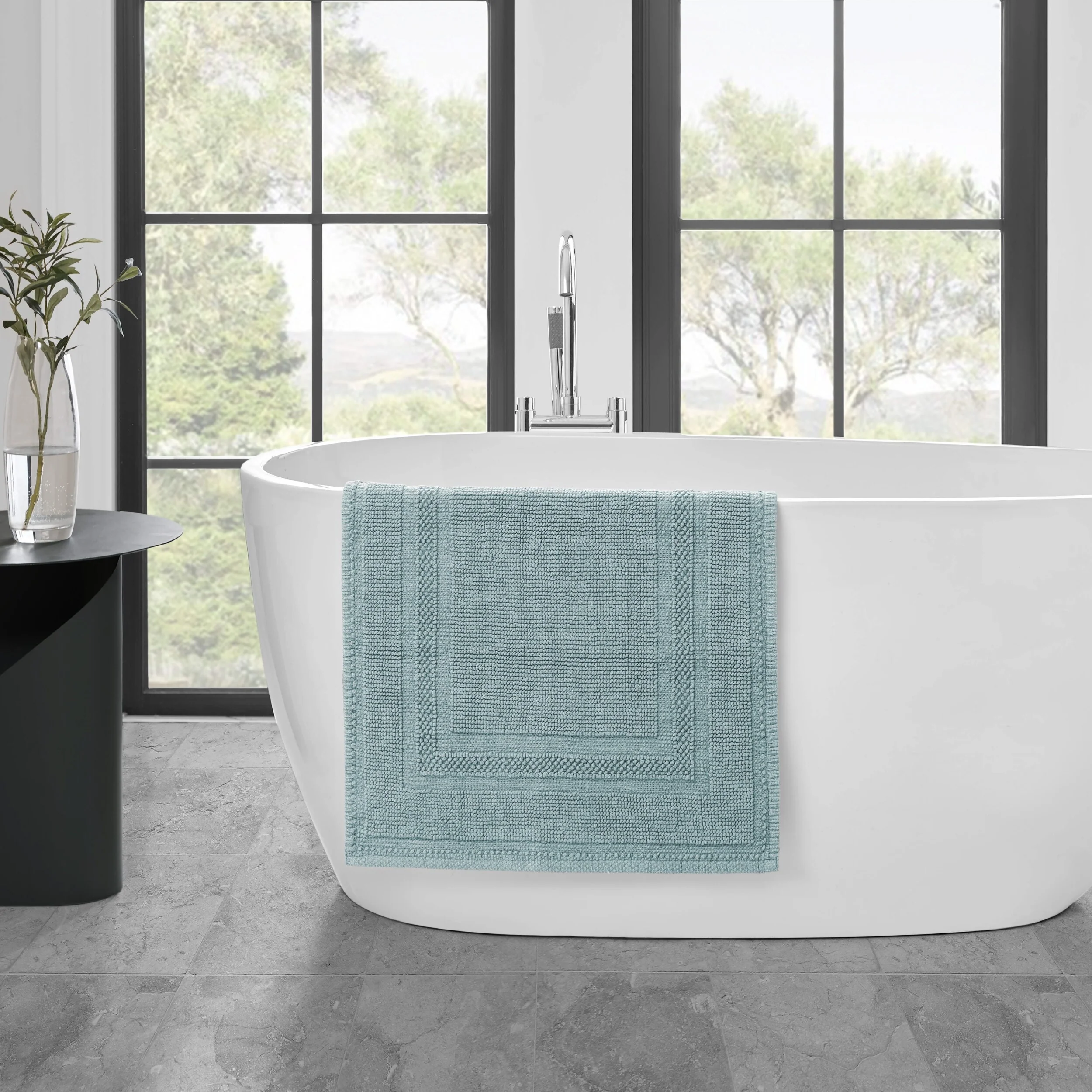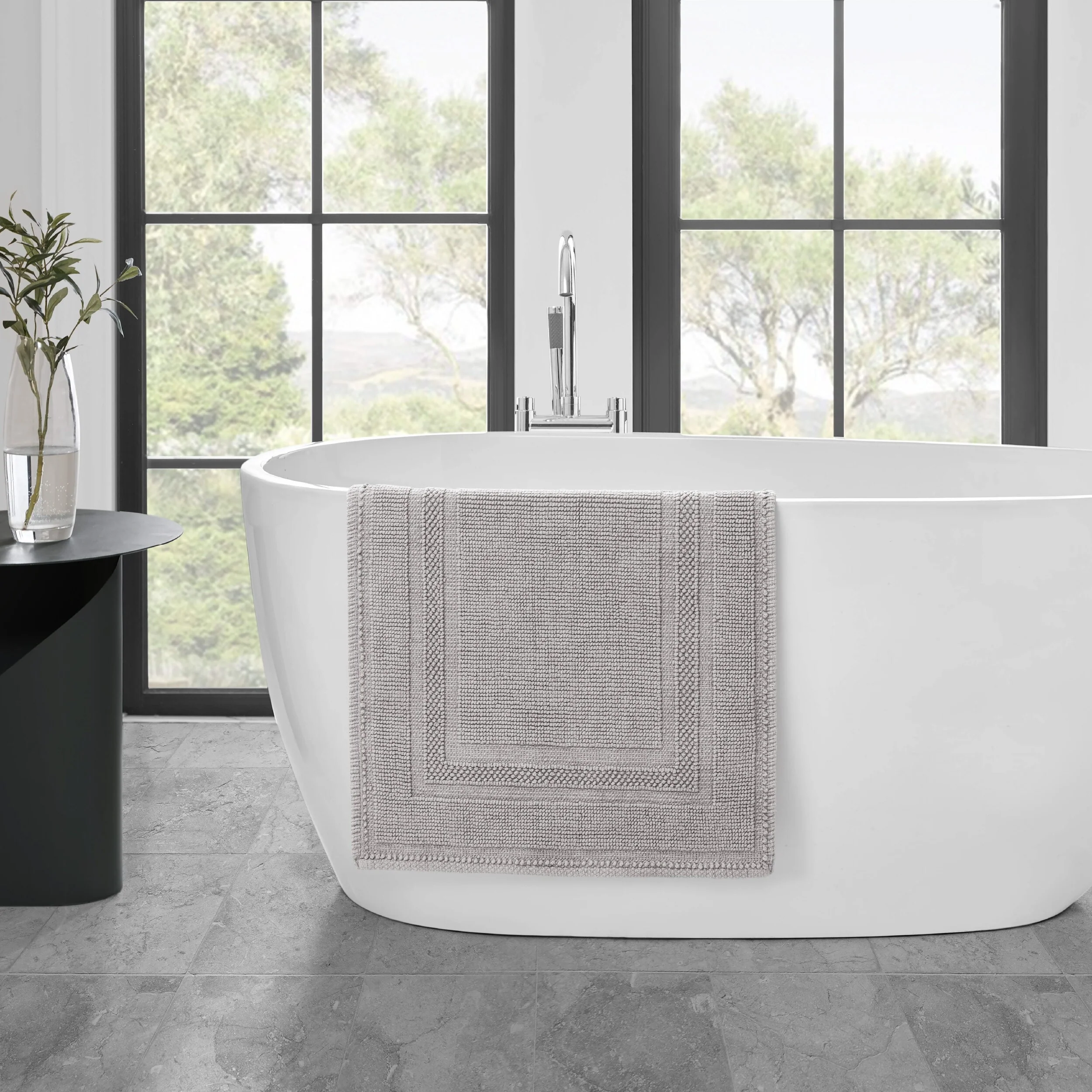 Elevate your bathroom with the chic distressed style of the Jean Pierre Cotton Stonewash Racetrack Bath Rug. This 100% natural cotton bath rug boasts a classic woven design and comes in trendy colors to seamlessly update your bathroom decor. The stonewash process creates unique variations in color and tone for an inviting look. Machine washable and available in a range of sizes. Rug pad recommended (sold separately).