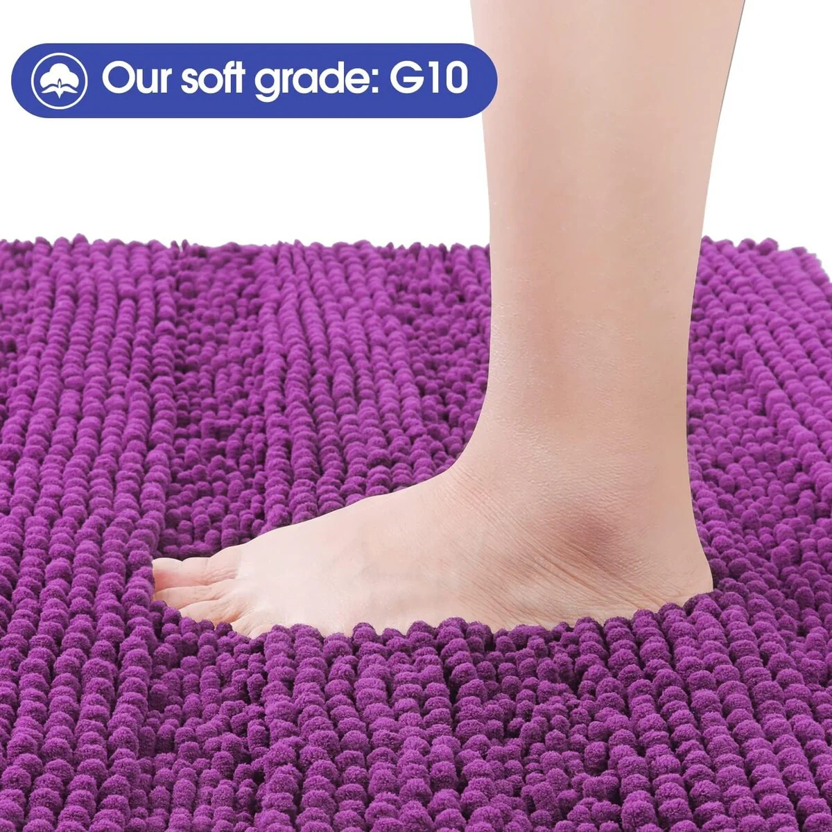 SUPERIOR ABSORBENCY: The bold pile chenille on the top surface of the luxurious toilet mat soak up a lot of water and keep your floor dry when you're stepping out of the bath, Jacuzzi, shower, or getting ready by the sink, moisture is trapped in the bathroom rug��s deep pile, to avoid the dripping water disturbing your bathroom's serenity and tidy.
