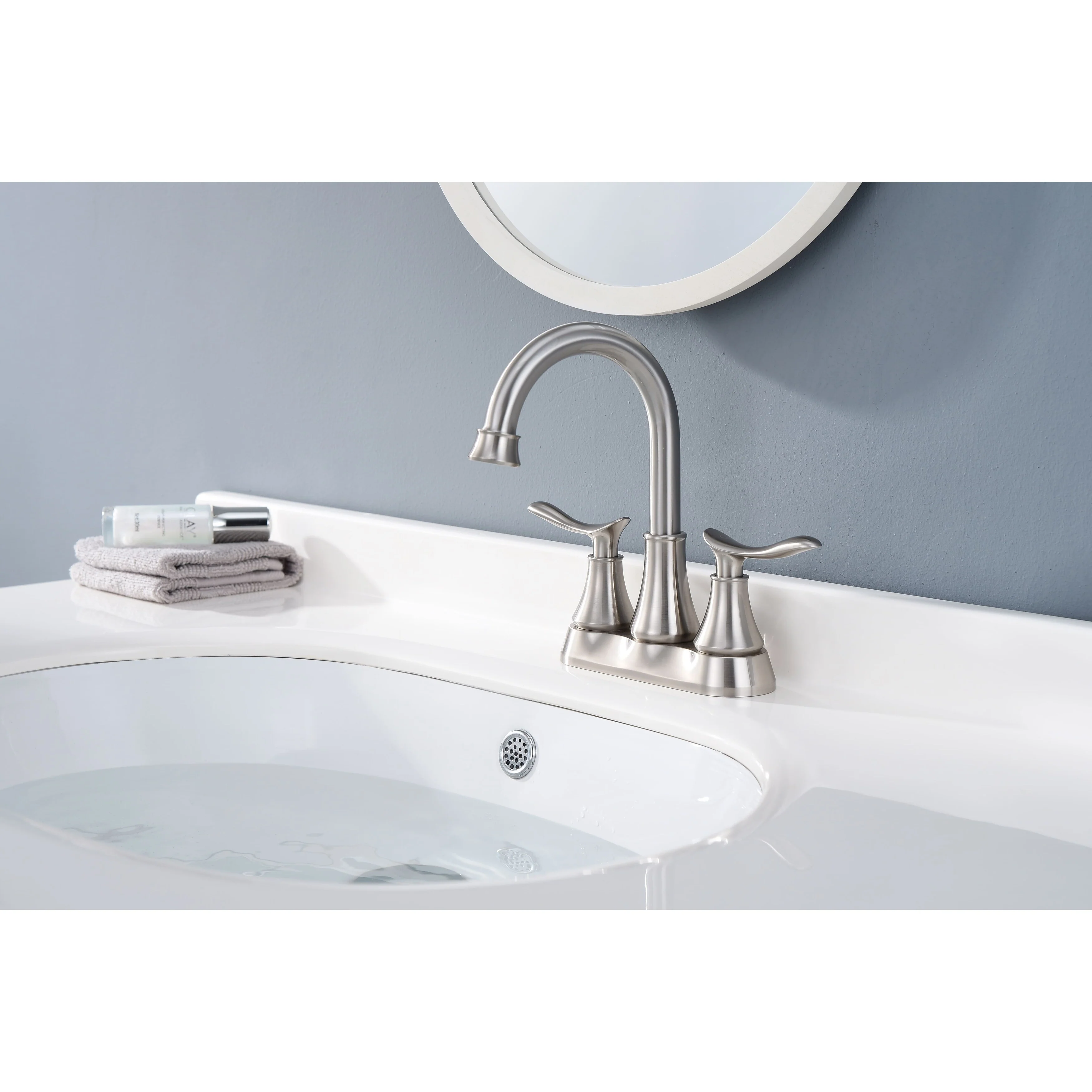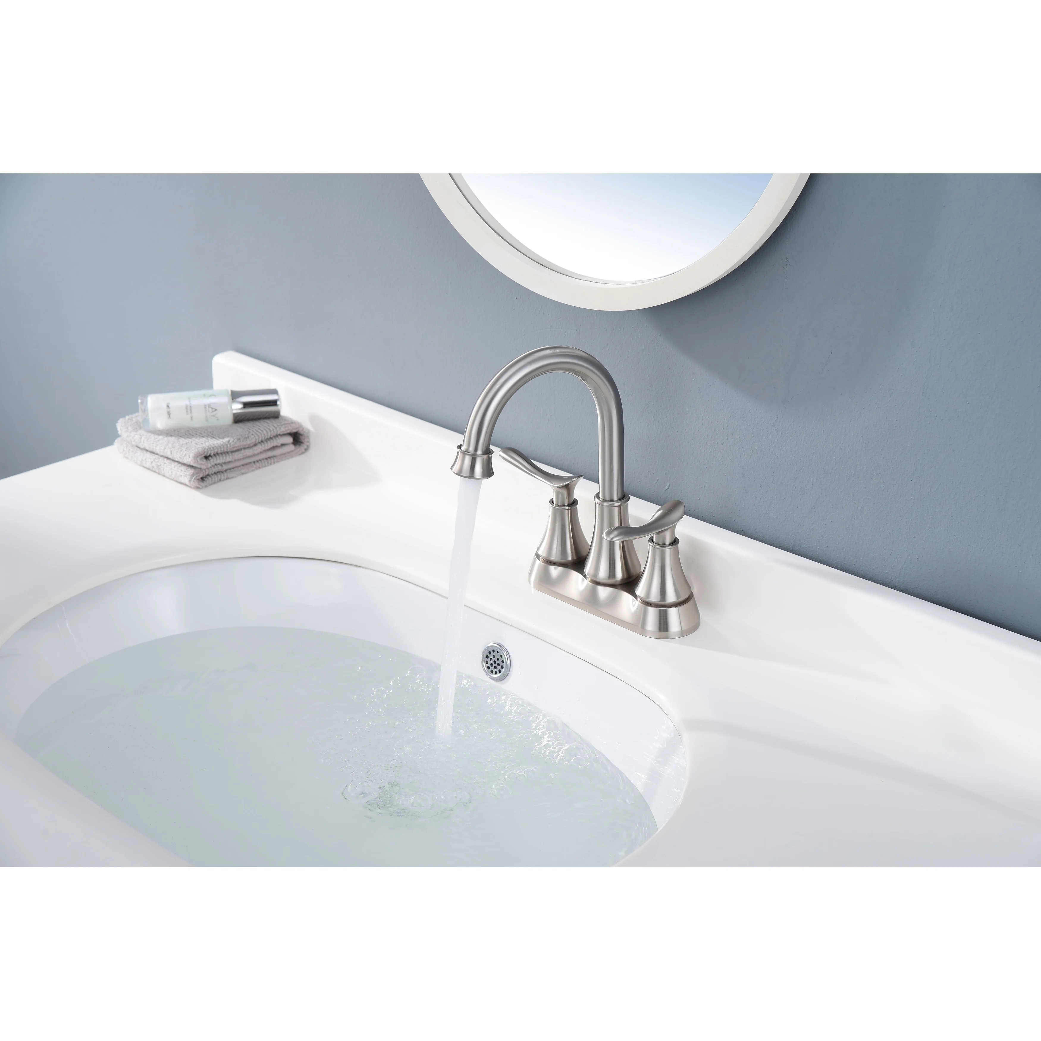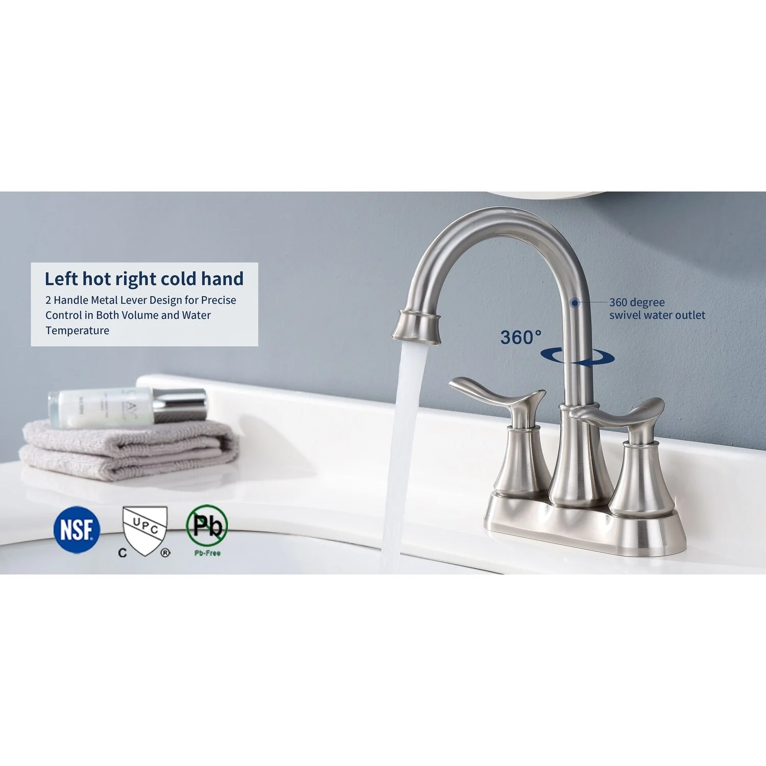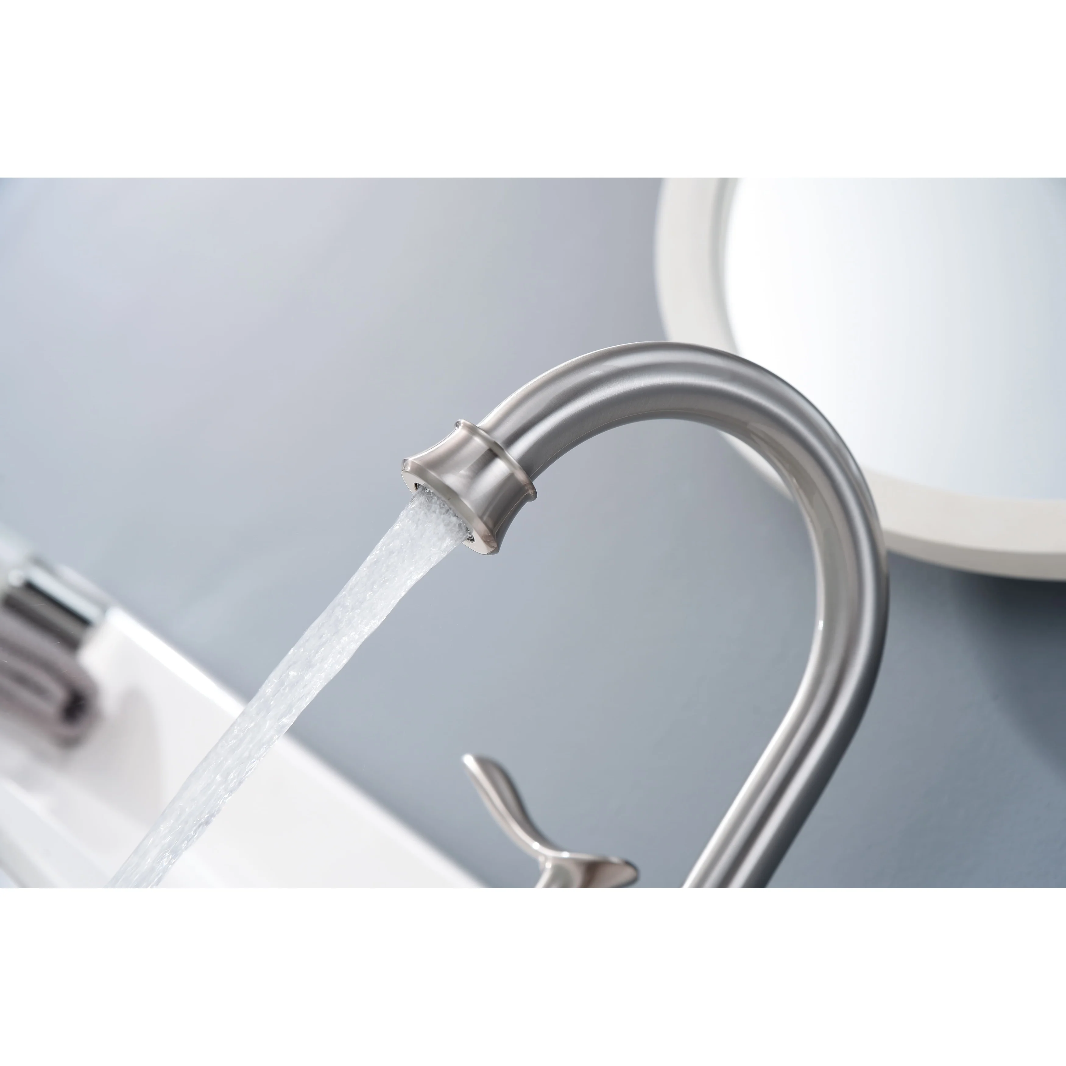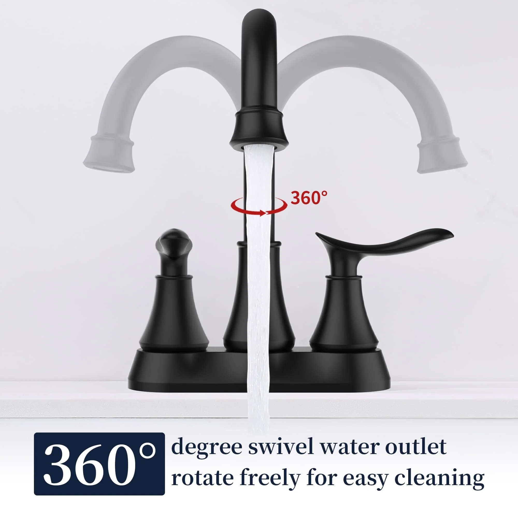 ��360掳Rotation��360 degree swivel nozzle supply full range of washing for your bathroom sink. The high-arc, gooseneck design swivels 360 degrees bathroom sink faucet, added convenience during everyday bathroom tasks. This dual handle bathroom sink faucet is ideal choice for your bathroom.
