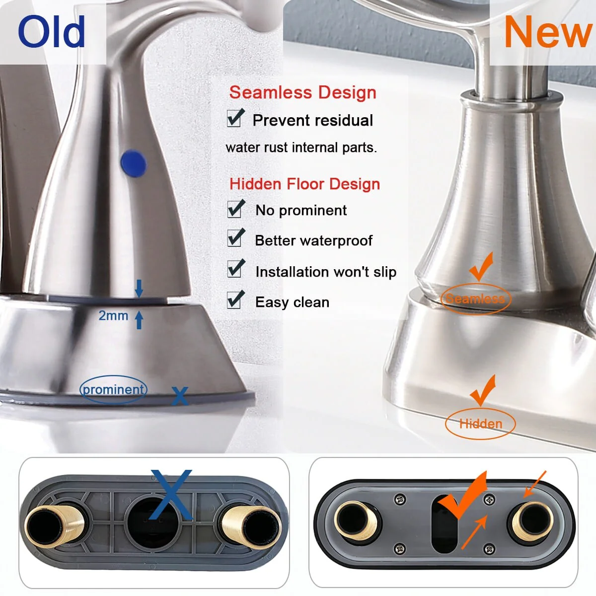 ��Premium Material & Design�� Exquisite 4 inch centerset bathroom faucet for bathroom sink, anti-scratch, resist rust, corrosion and tarnish, no water spot and finger print. Hidden bottom floor design : No prominent. Better water proof ( Prevent residual water rust Internal parts ) Exceed industry longevity standards, ensuring durable performance for life.