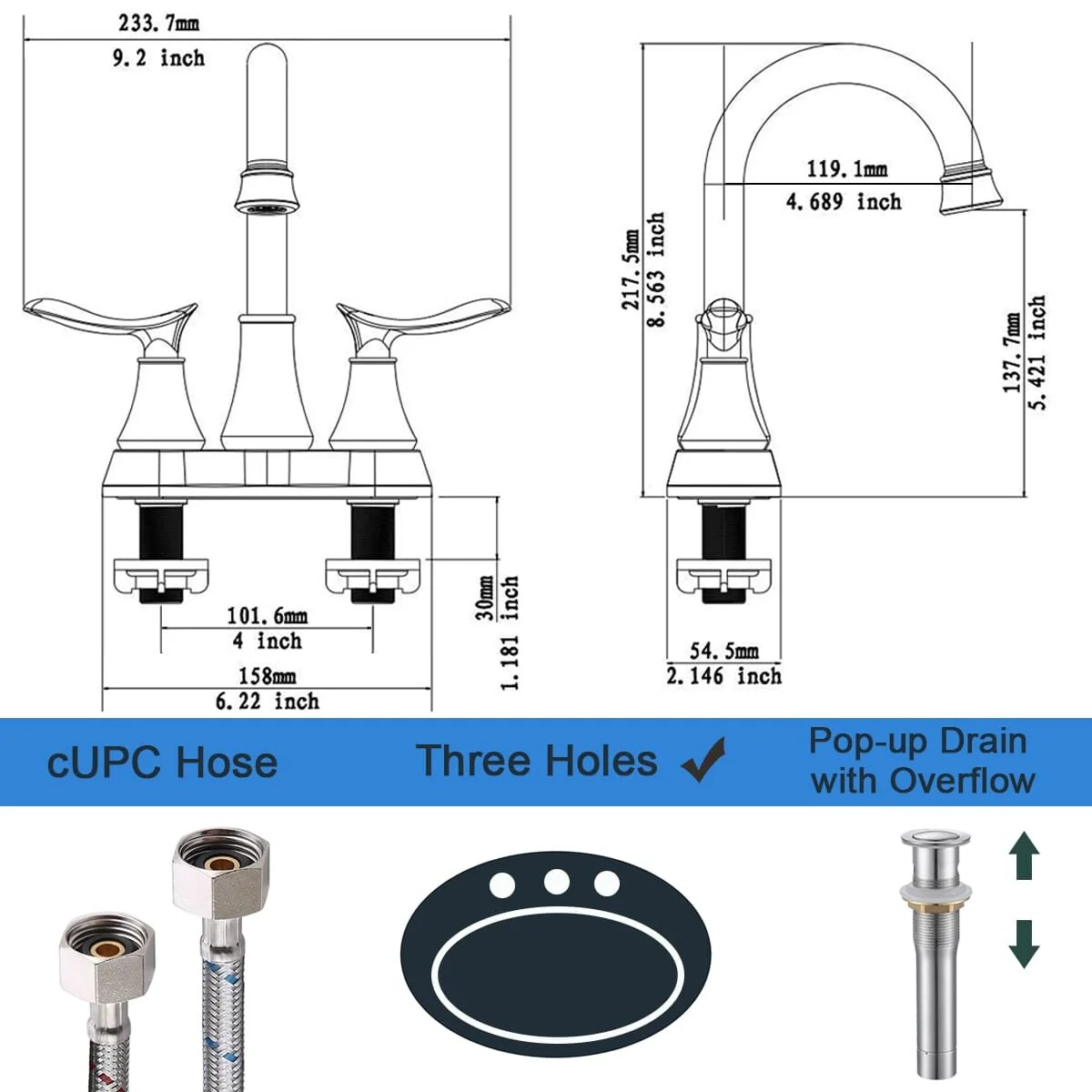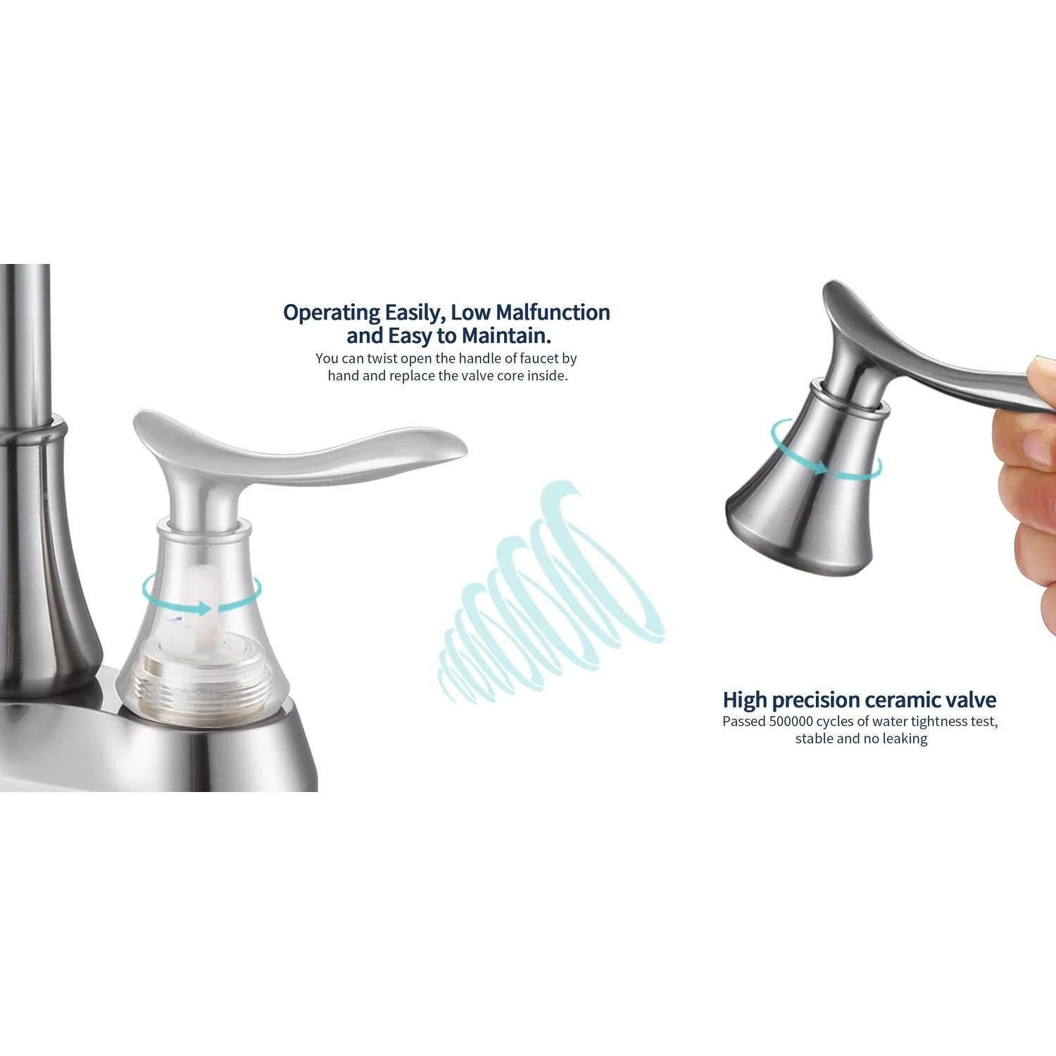 ��Easy to Install��The 4 inch centerset bathroom sink faucet design can help you install by following the instruction with 30mins, without a plumber and save the fee. Unique fast connect construction, the hot and cold water can be mixed by quick-install pipe without wrench, through technique to prevent pipe burst.
