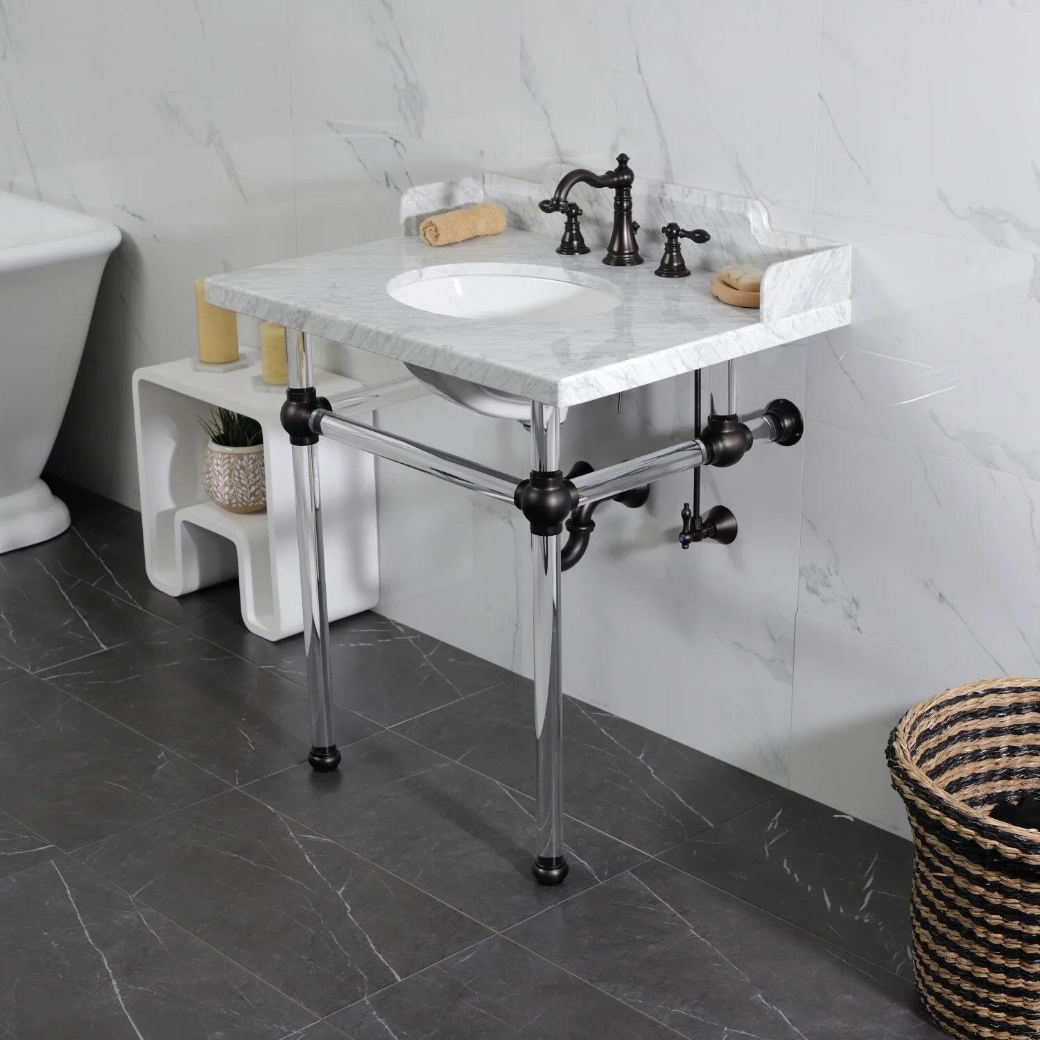 - Deck mount 8' to 16' widespread 3-hole installation