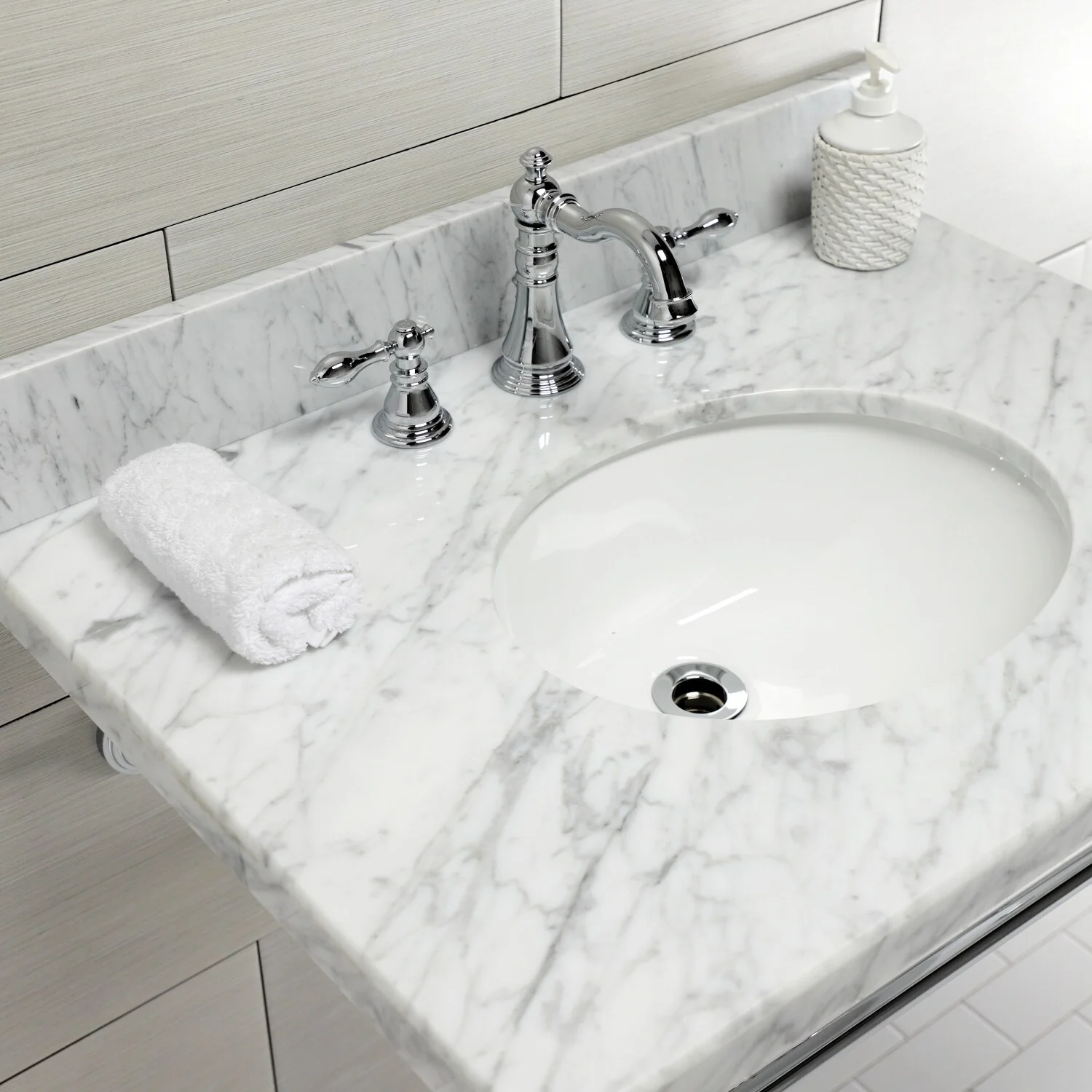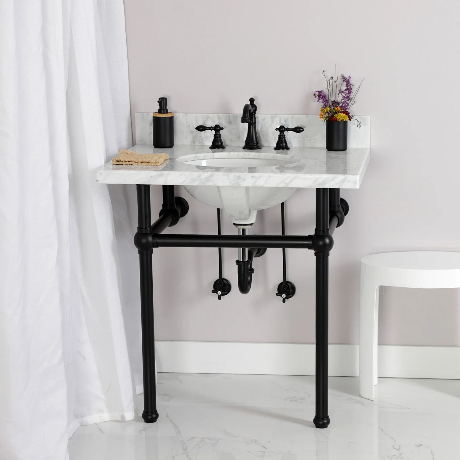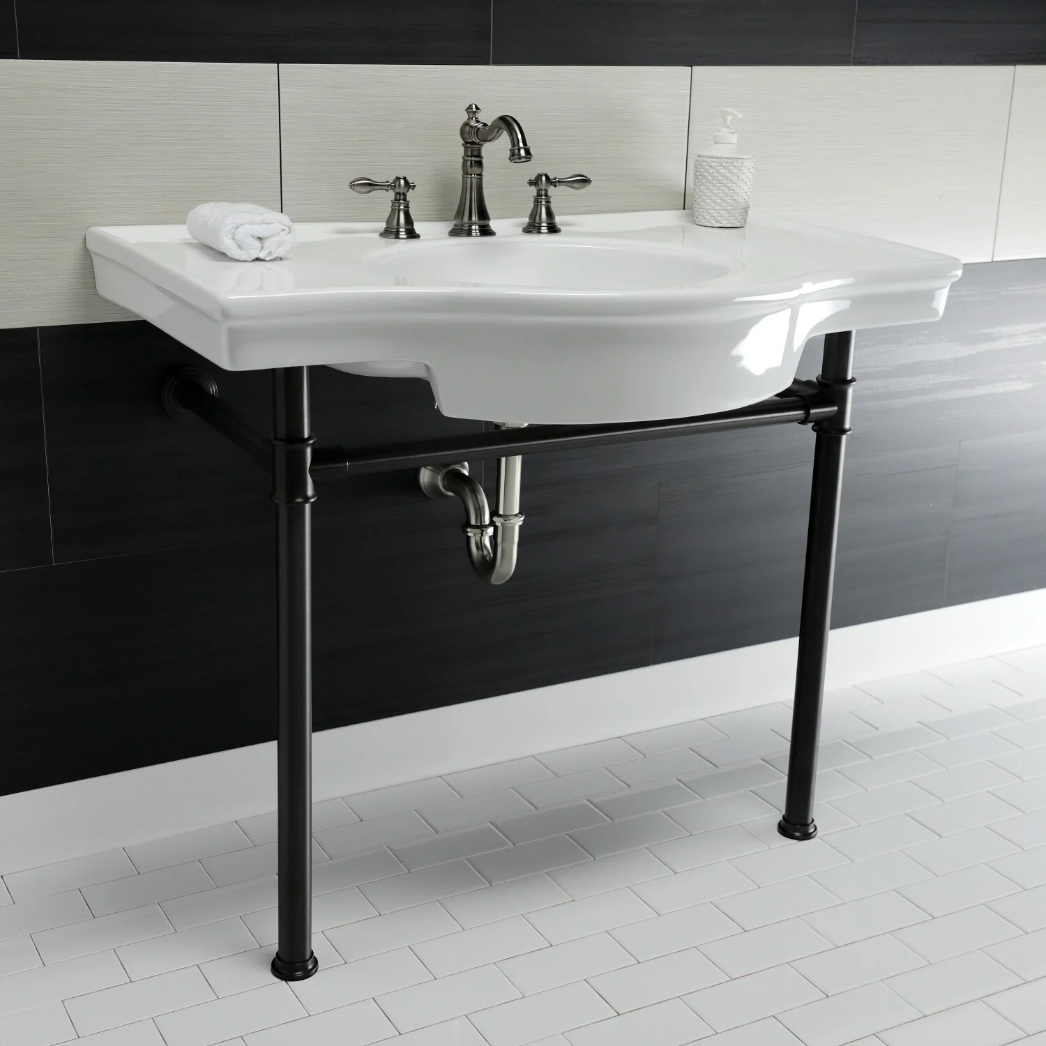 - Includes matching finish pop-up drain and tailpiece assembly