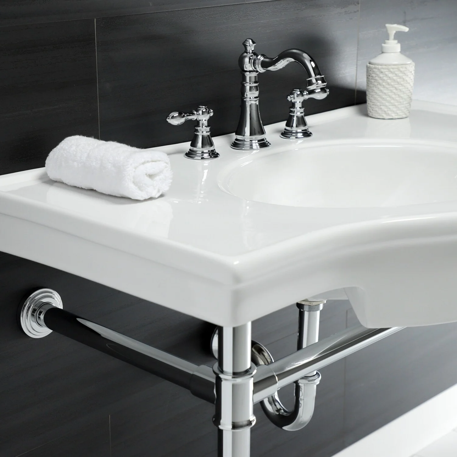 - Drain assembly perfectly suited for console sink installation