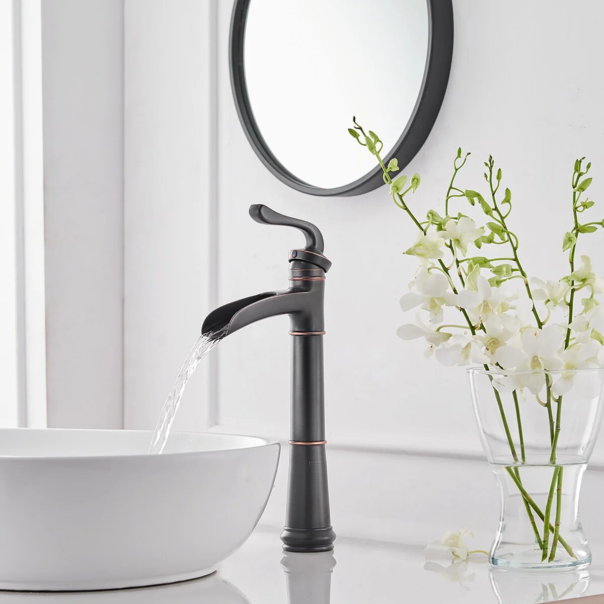 The Single Hole Bathroom Faucet with a matching pop-up drain is where character and style collide. Uniquely shaped with a semi-open spout, this faucet allows water to gracefully cascade directly into the sink, creating a soothing waterfall effect. Simple ����enough to pair with any complementary vessel sink, the Faucet is sure to make a statement in every bathroom where it is easily installed.
