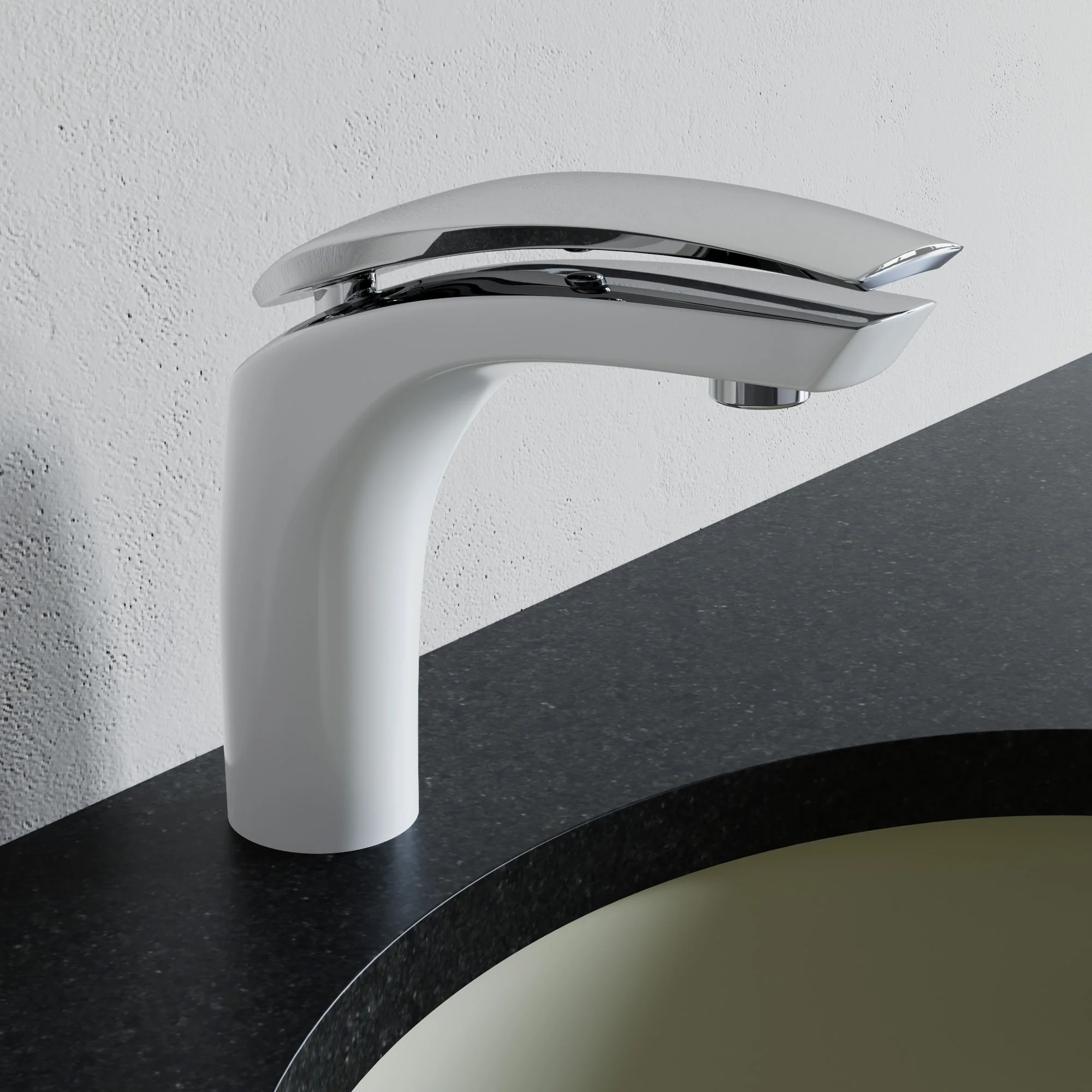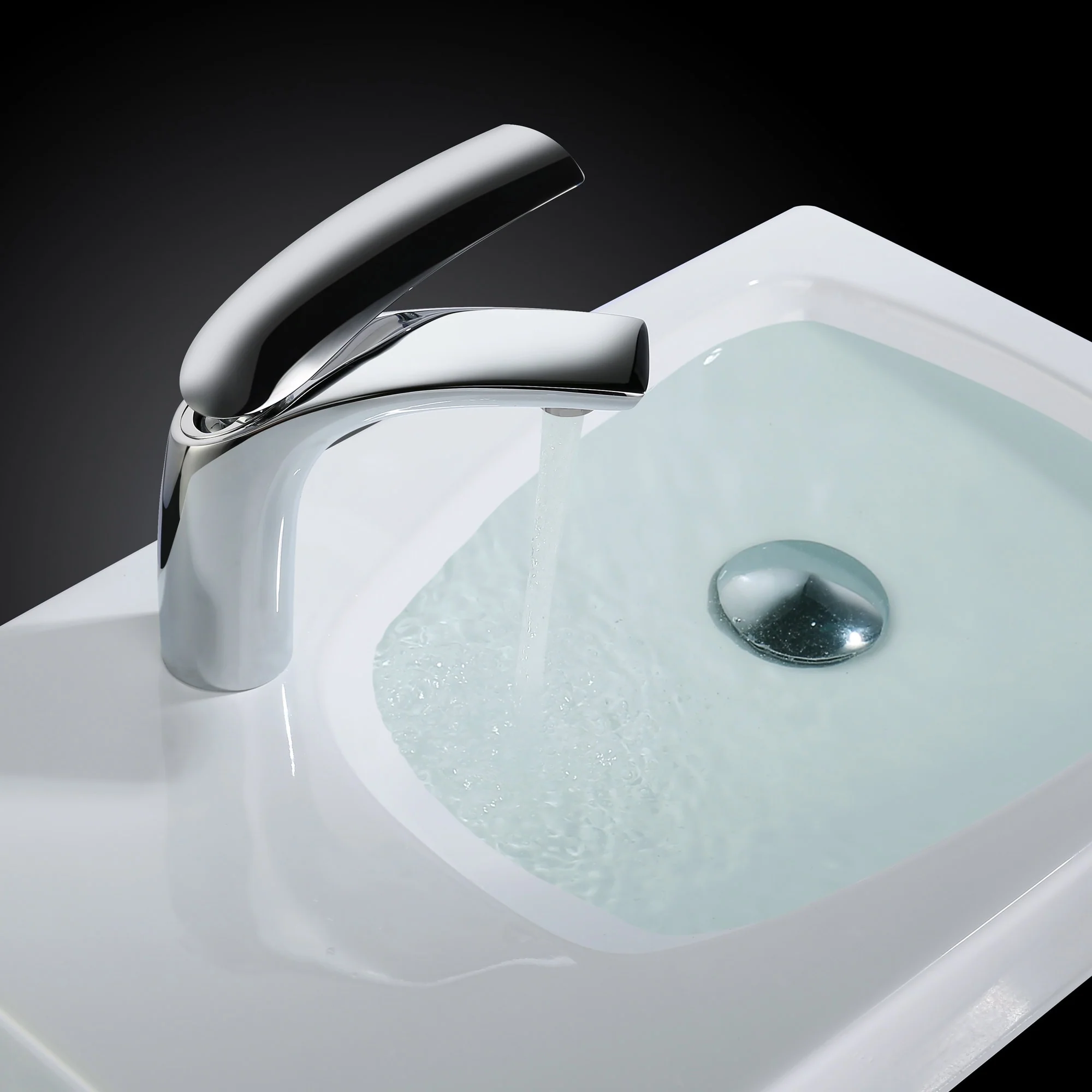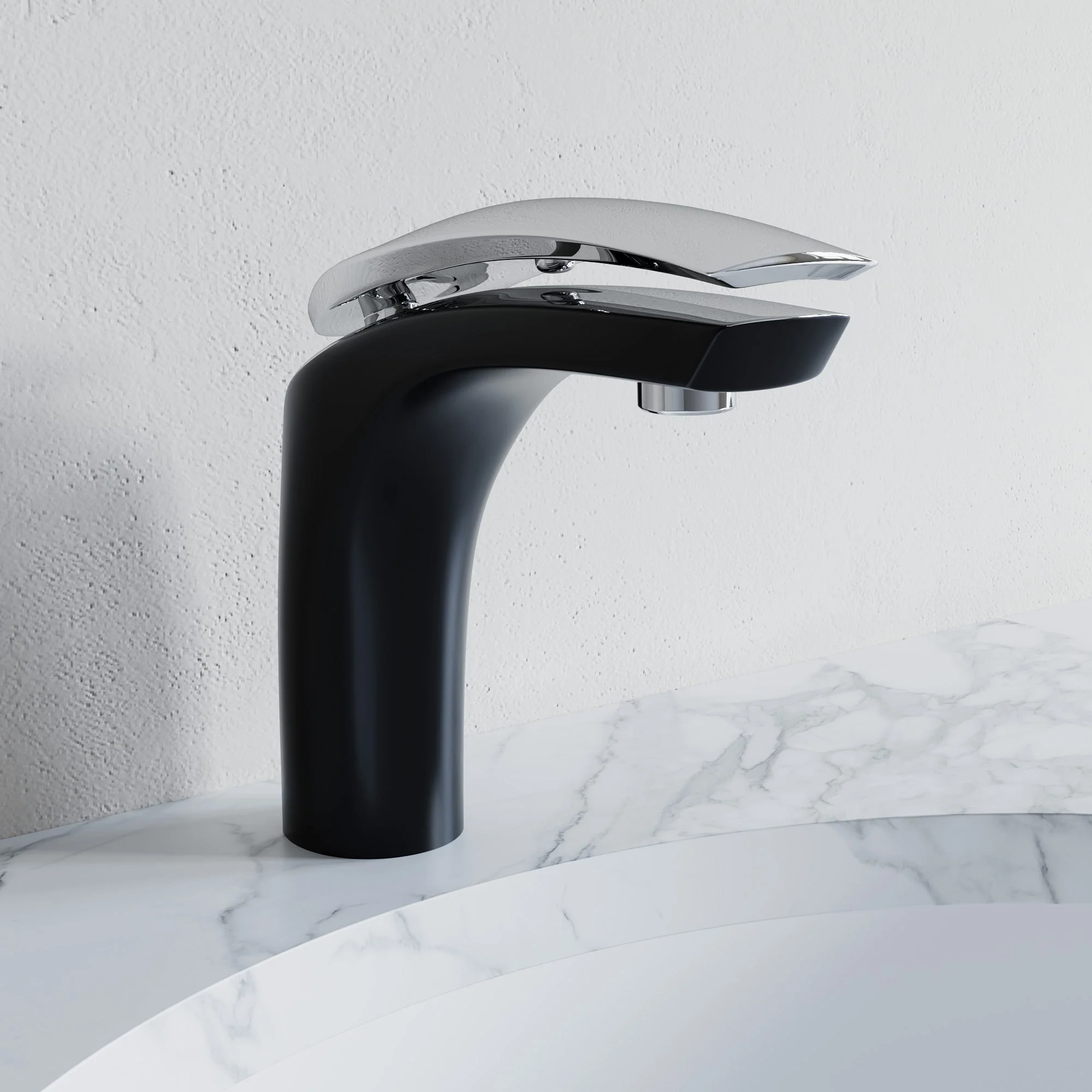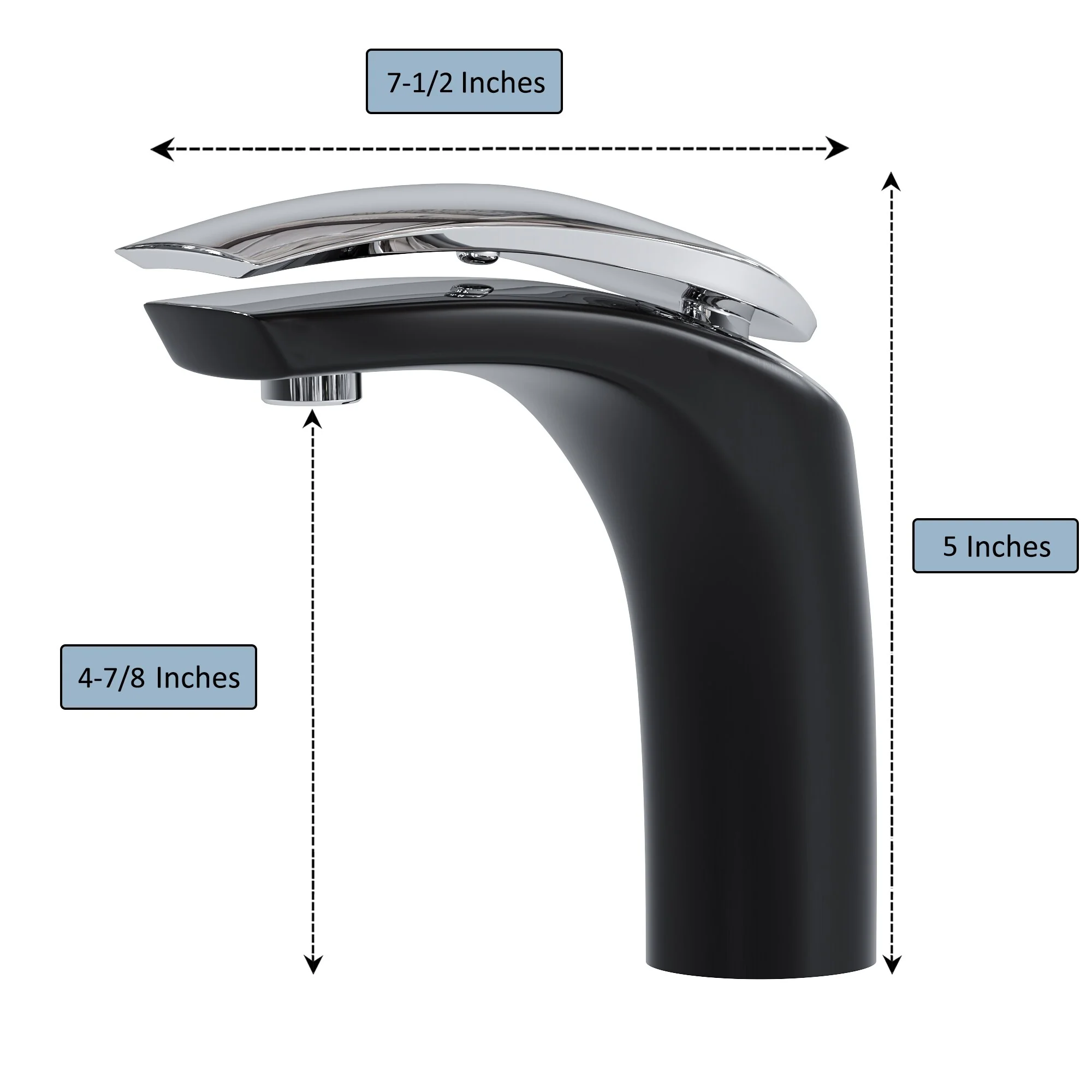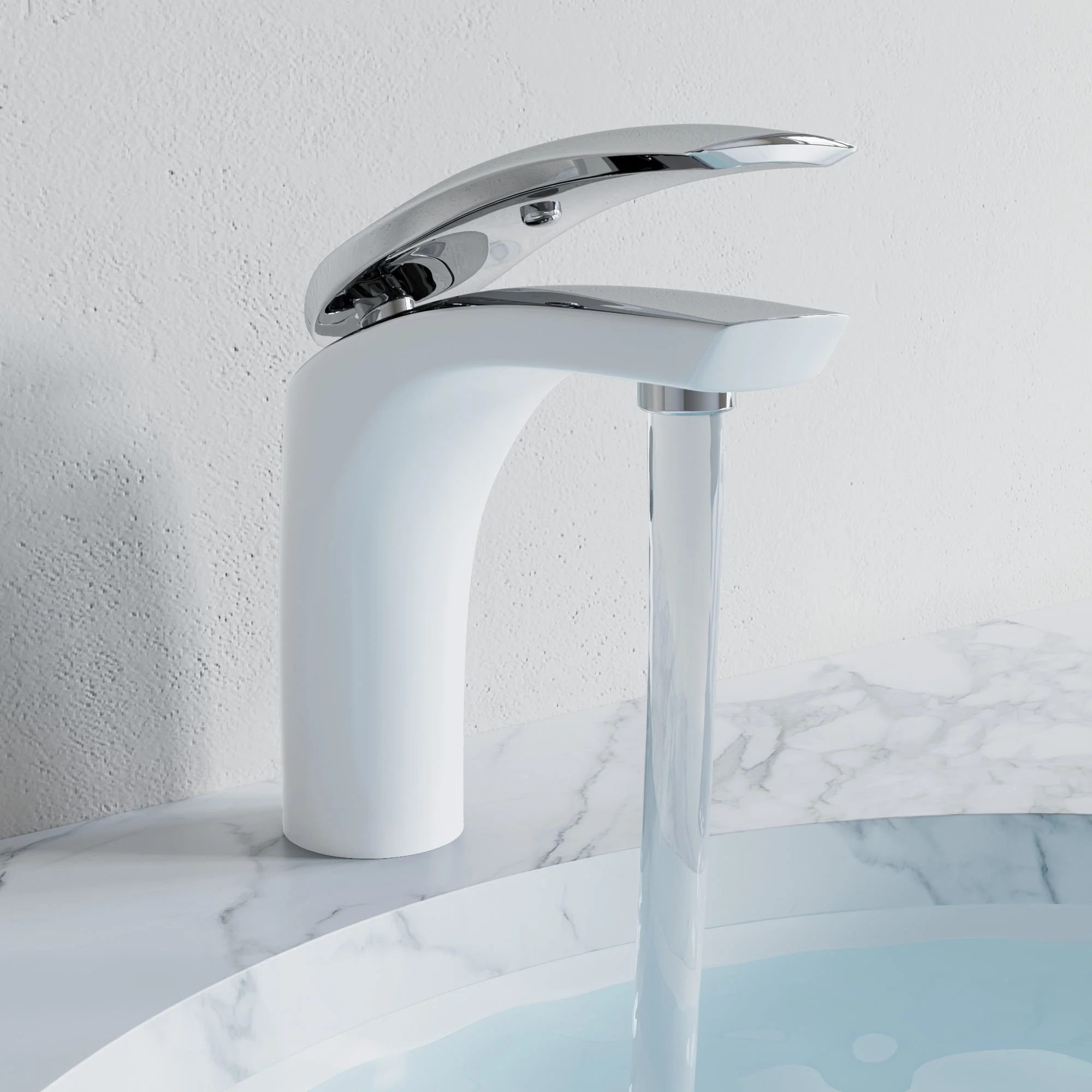 Single top handle bathroom faucet with oval base. Lead-free waterway, low-arc spout and made with premium components. Available in Chrome, Chrome with Black, and Chrome with White. Easy single hole installation with any undermount sink