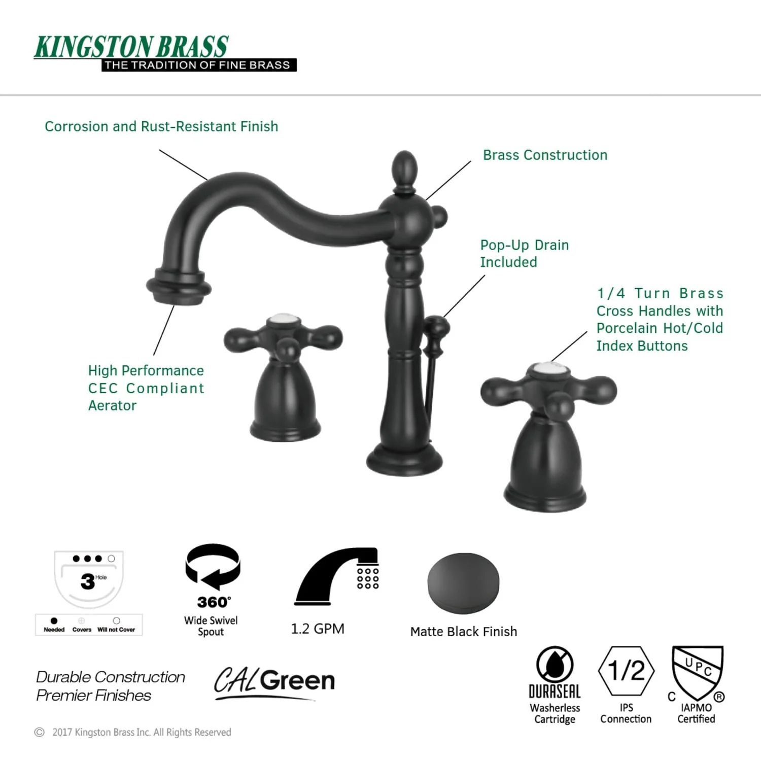 - 1.2 GPM/4.5 LPM spout flow rate at 60 PSI