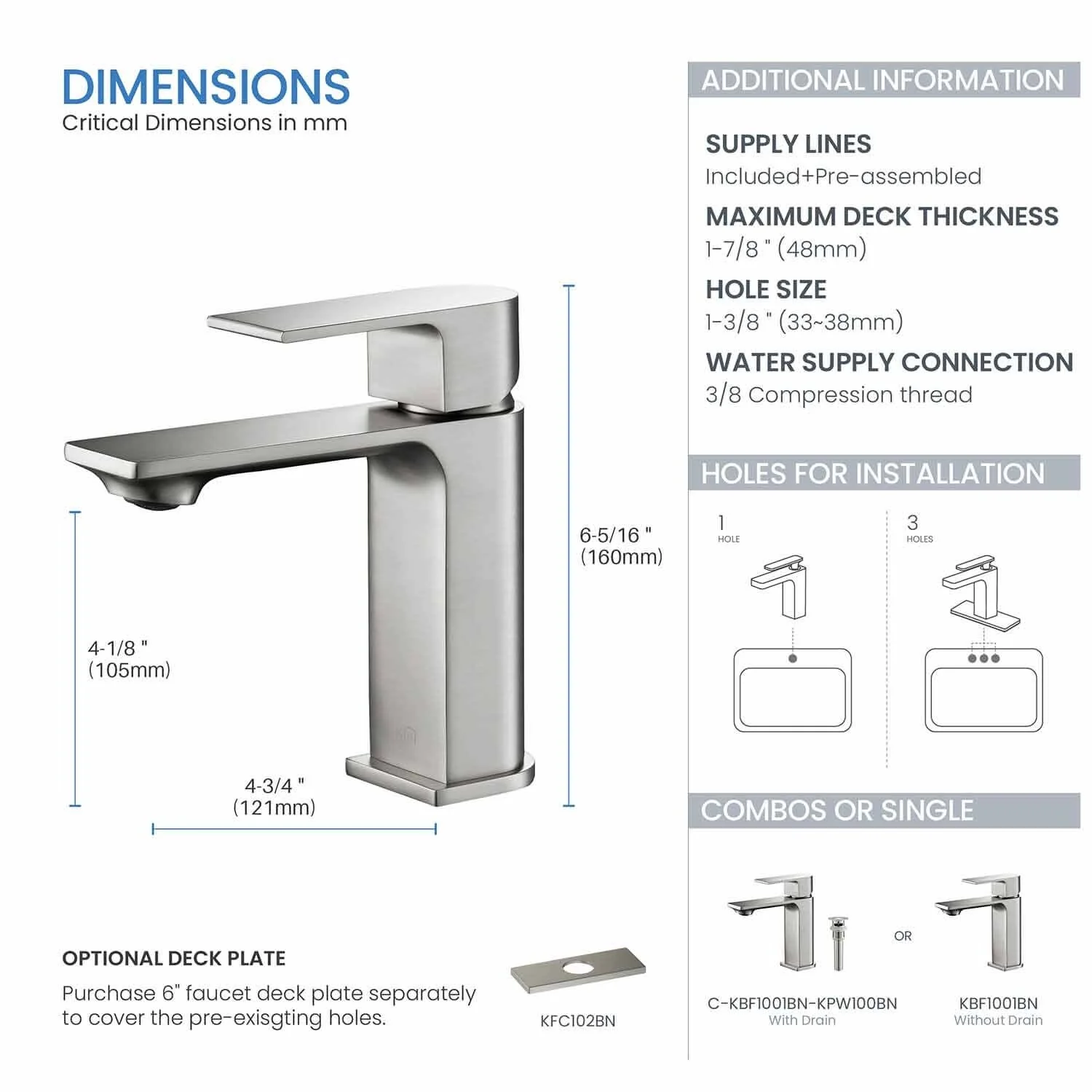 Upgrade your bathroom sink with this fashion-forward vanity faucet from Kibi USA. Made of solid brass, this single-handle faucet is available in a variety of finish colors to best coordinate with your decor. The faucet includes a 24-inch water hose for easy installation and a limited lifetime warranty for your peace of mind.