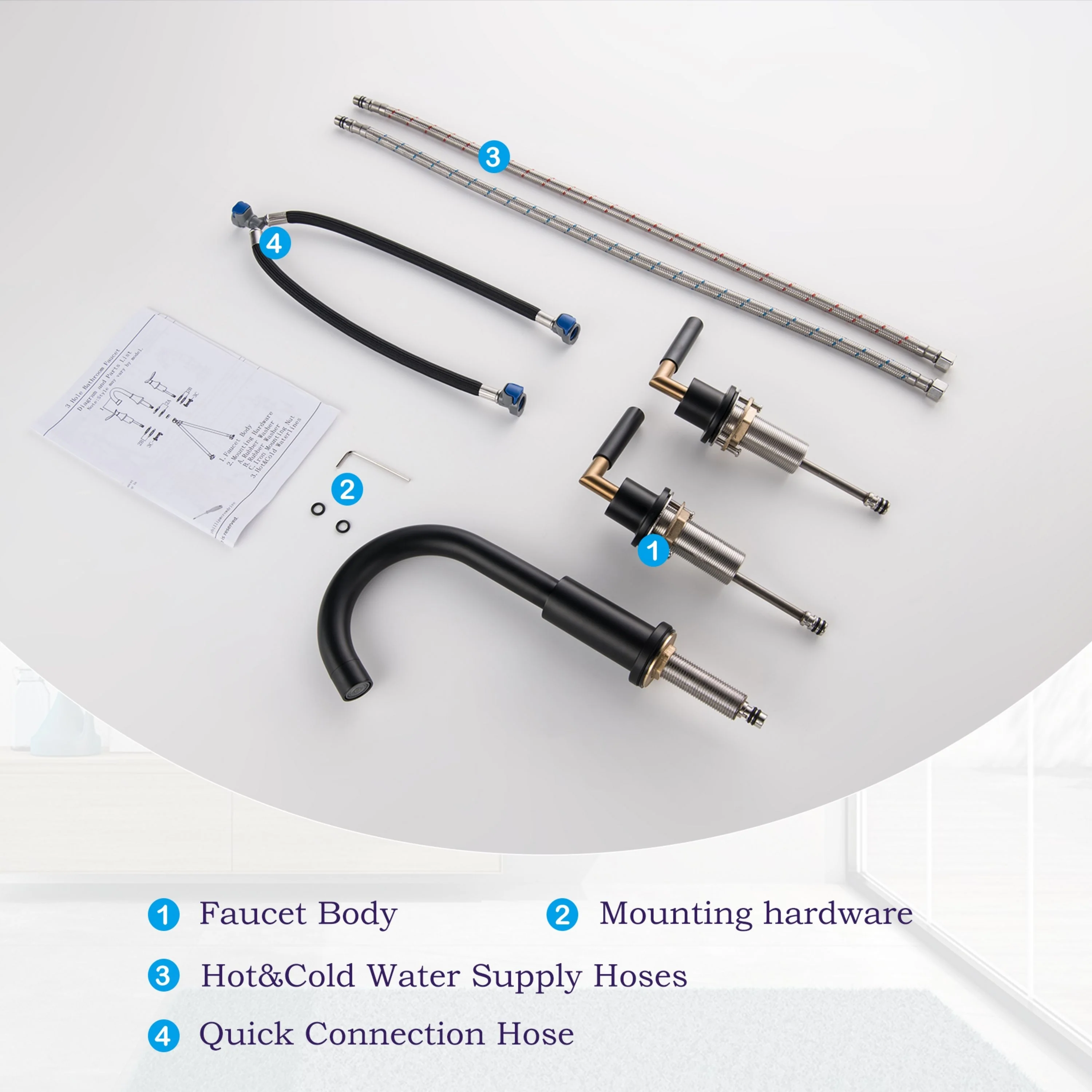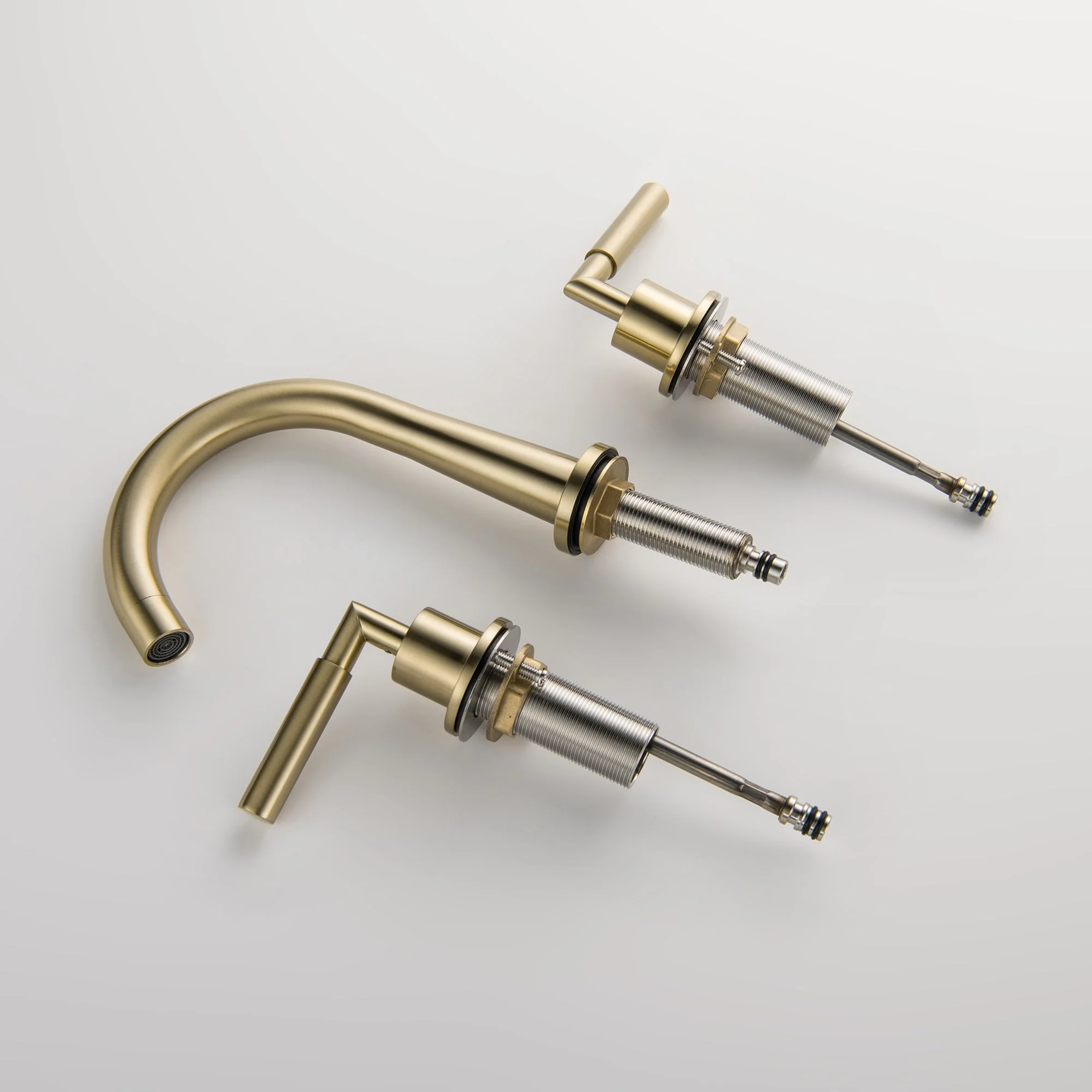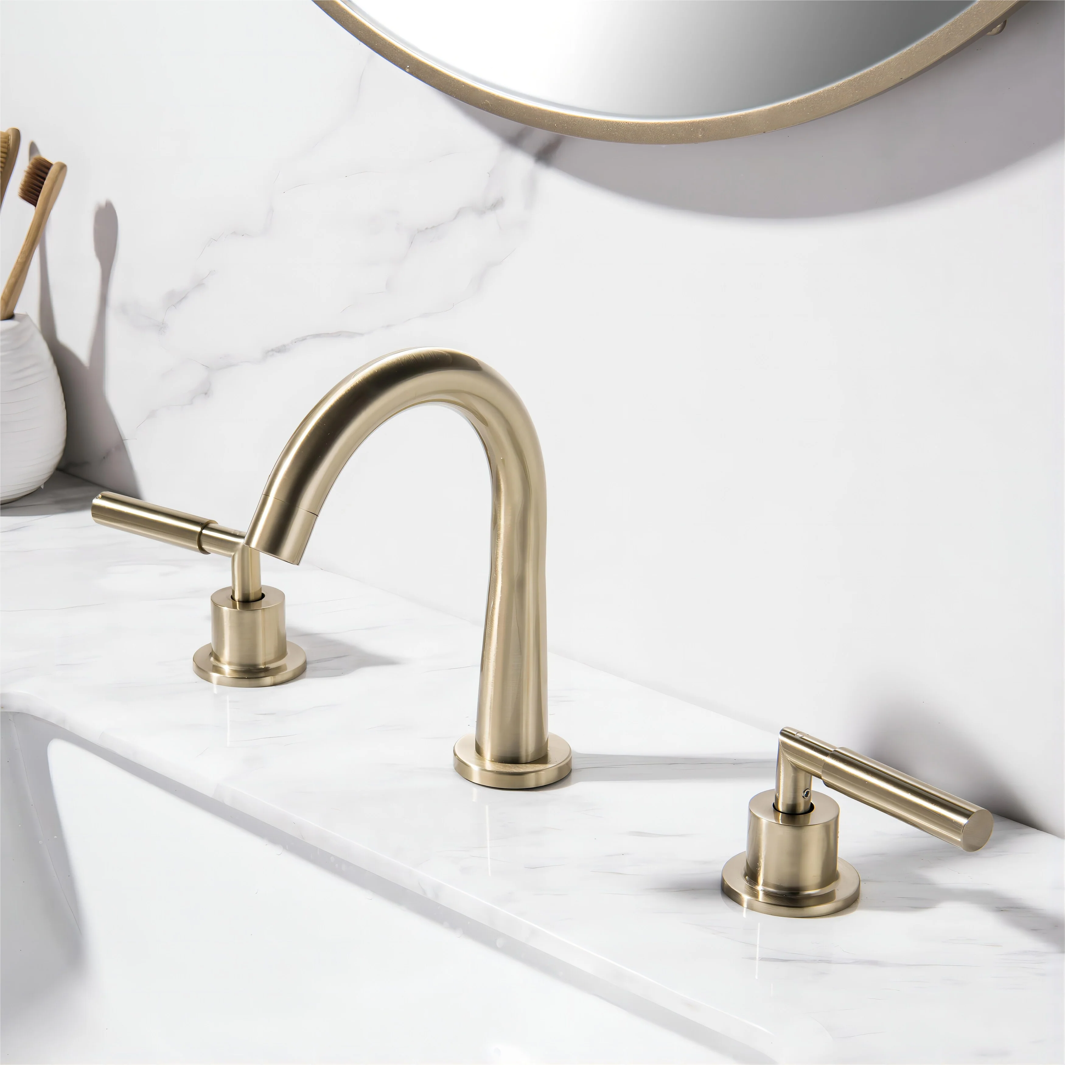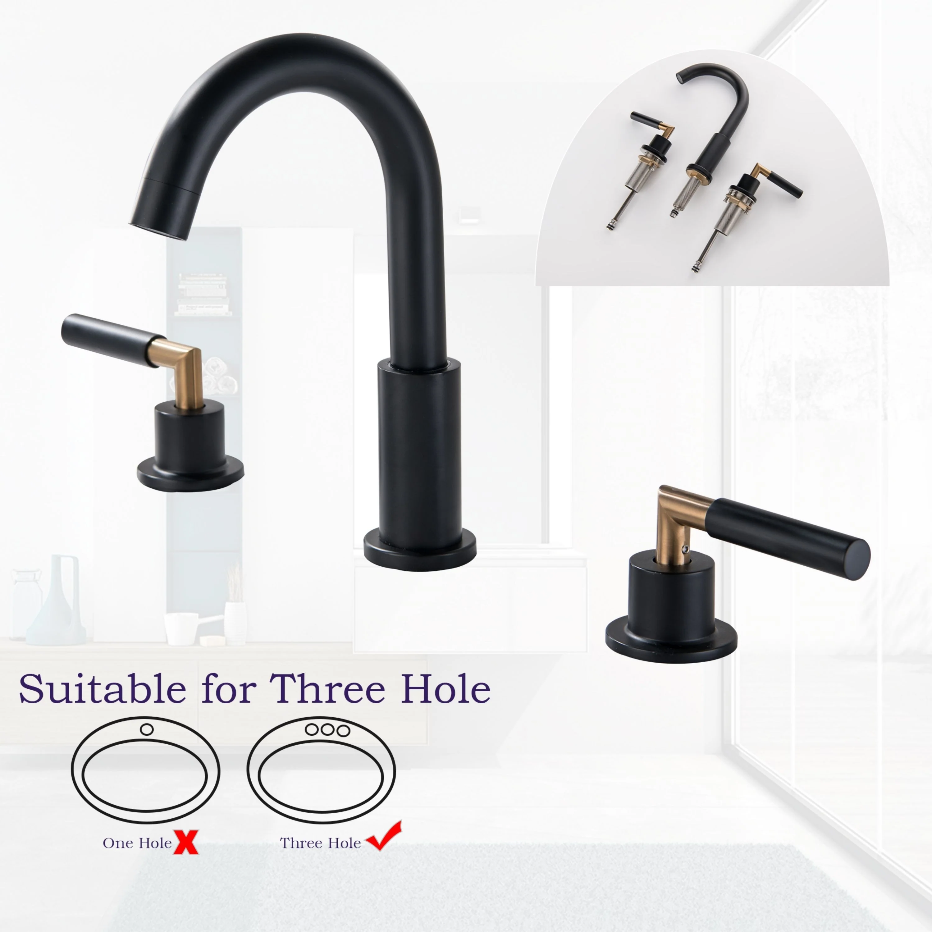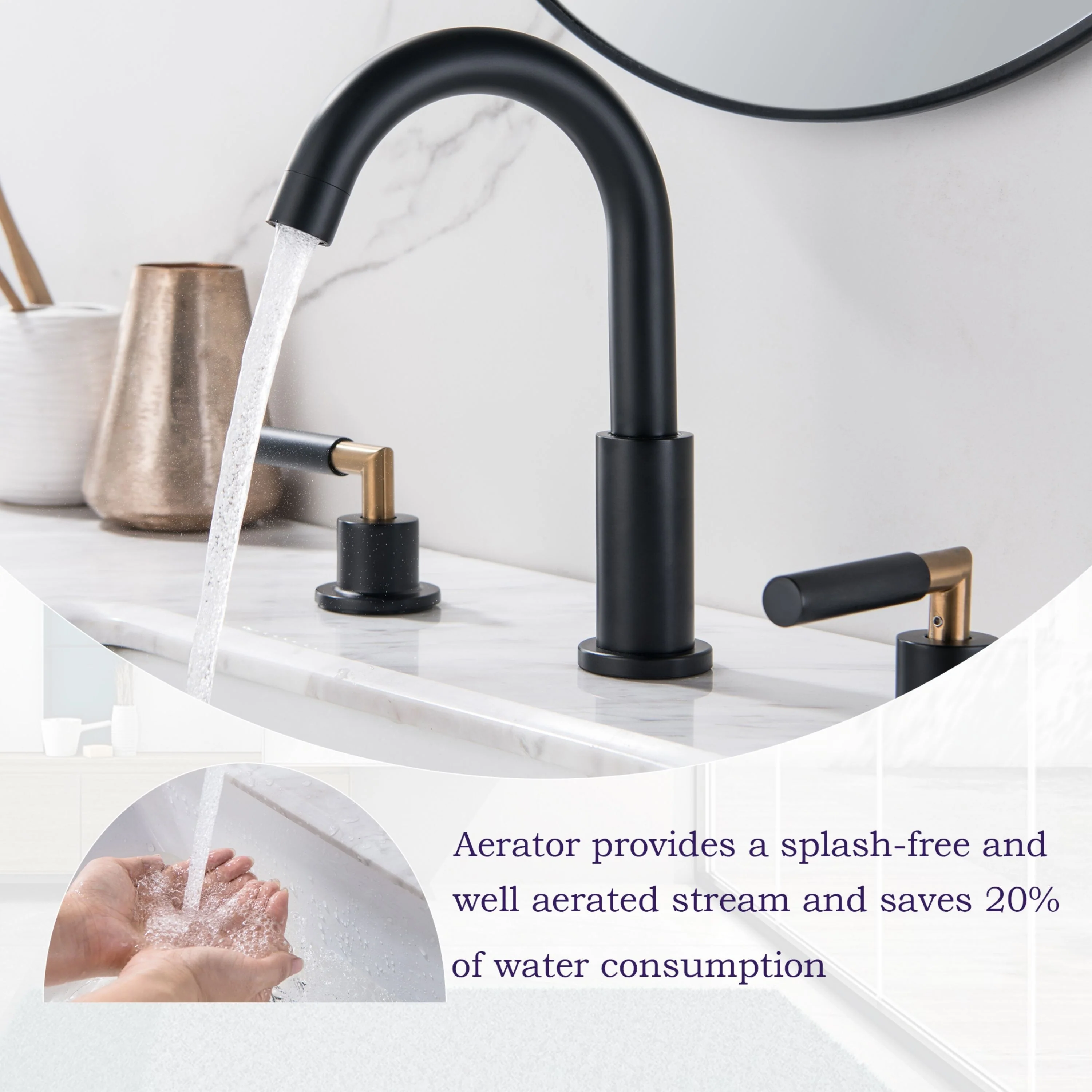 Elevate your bathroom's style and functionality with our Luxury 2 Long Handles Bathroom Sink Faucet Widespread, now offered in luxurious Gold and trendy Matte Black. Its modern design is a perfect fit for any bathroom decor, adding a touch of elegance. The high-quality finish not only catches the eye but also keeps fingerprints and water spots at bay, simplifying your cleaning routine. Made from durable brass, it guarantees long-lasting durability and reliability. The leak-free ceramic disk valves ensure smooth water flow control, and with easy installation, you can enjoy its excellent performance for years. Upgrade your bathroom with this remarkable faucet today.�