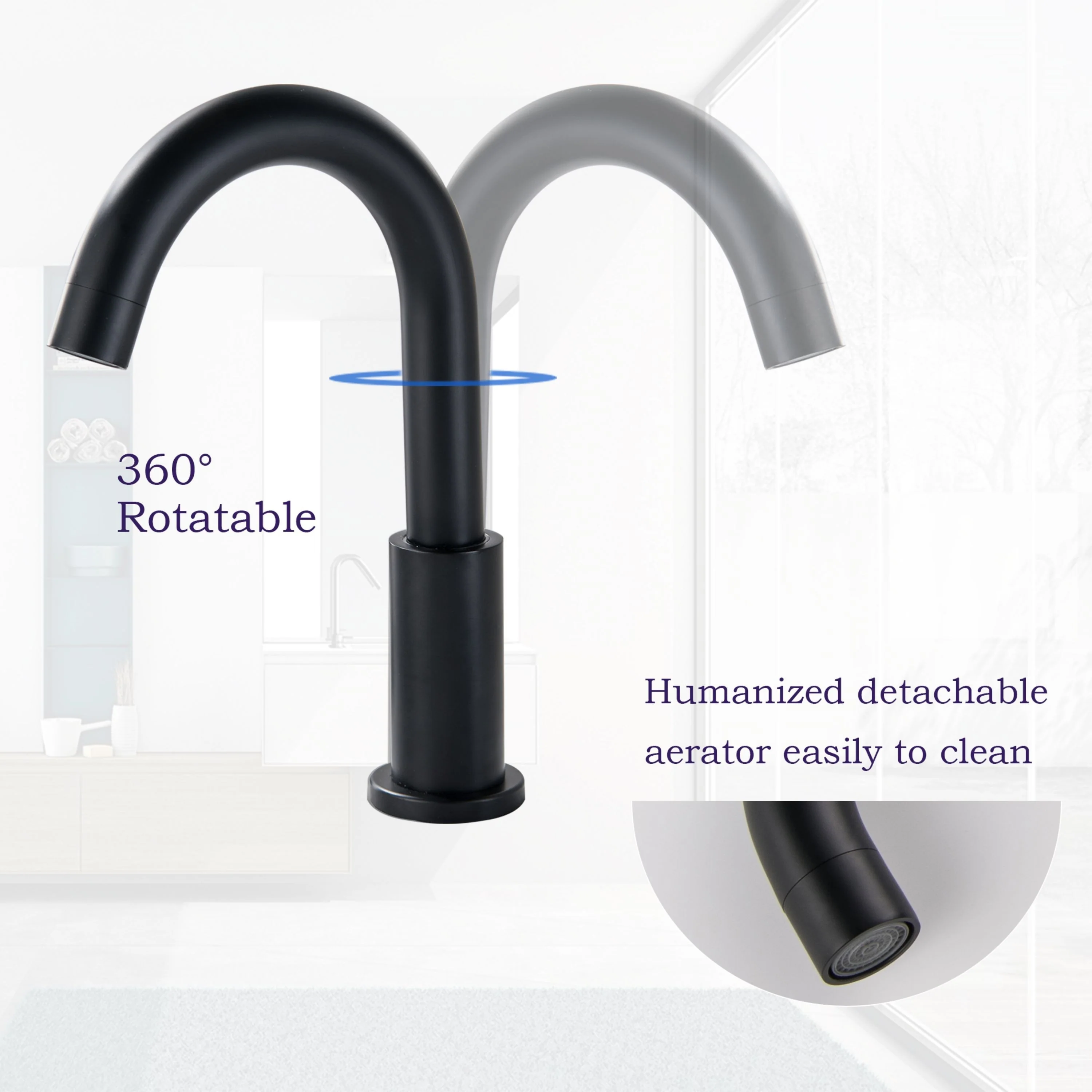 Enjoy complete flexibility with a 360-degree swiveling spout, providing a wide range of motion for your convenience.