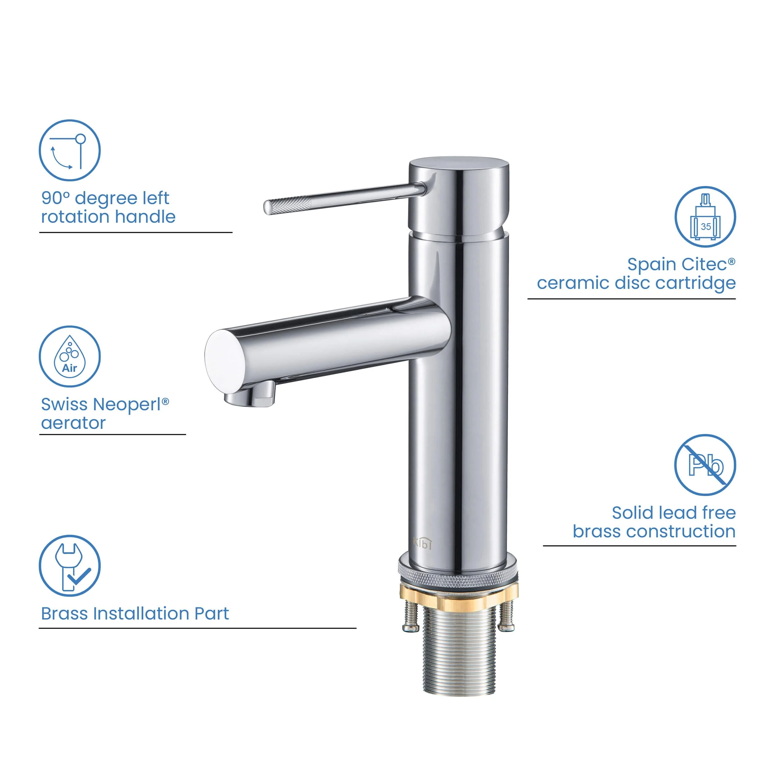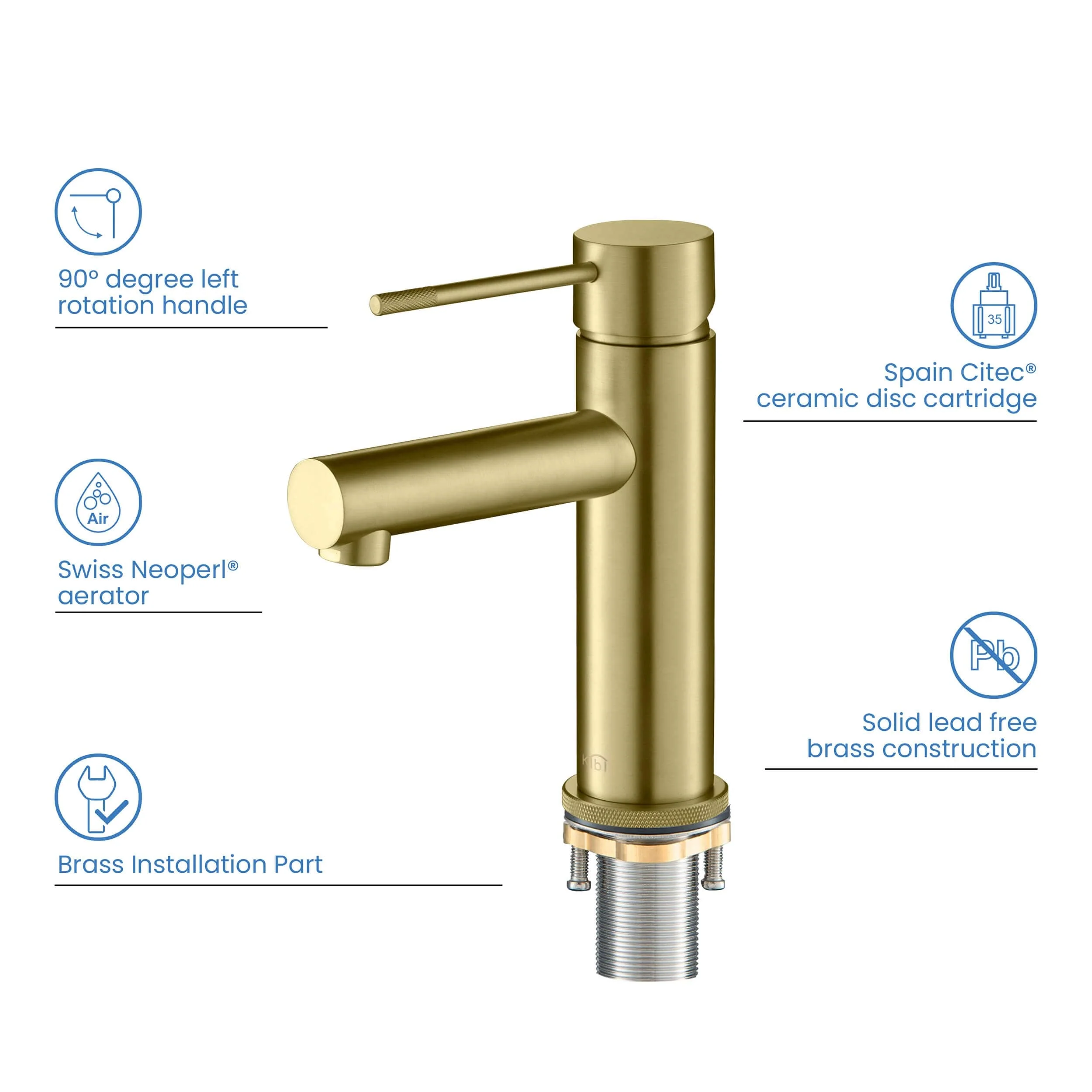 Update your bathroom with this luxury bathroom faucet. The single handle faucet features a pre-assembled waterline, a high-arc spout, and a Swiss aerator for perfect water flow. Choose from six versatile finishes to complement your contemporary decor.