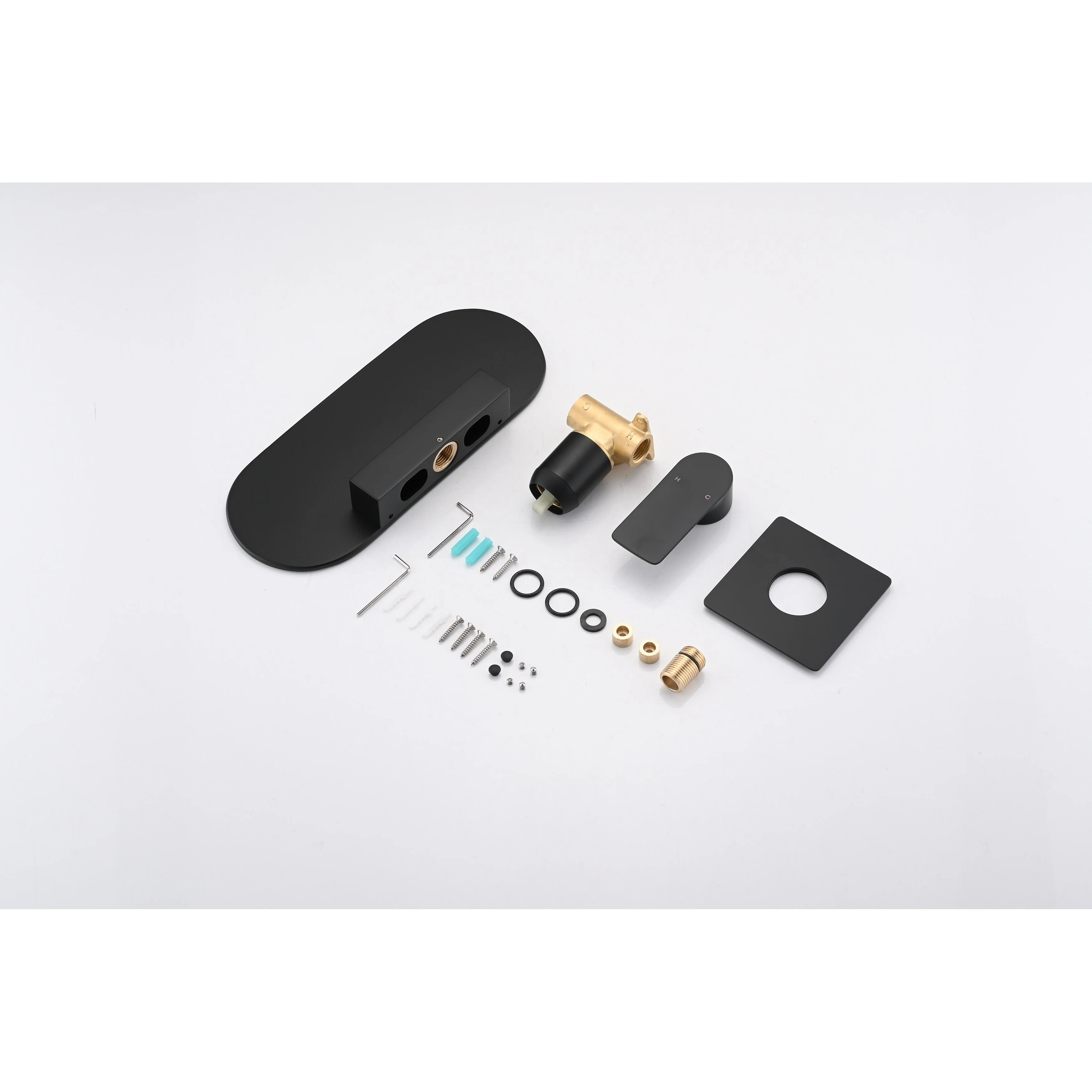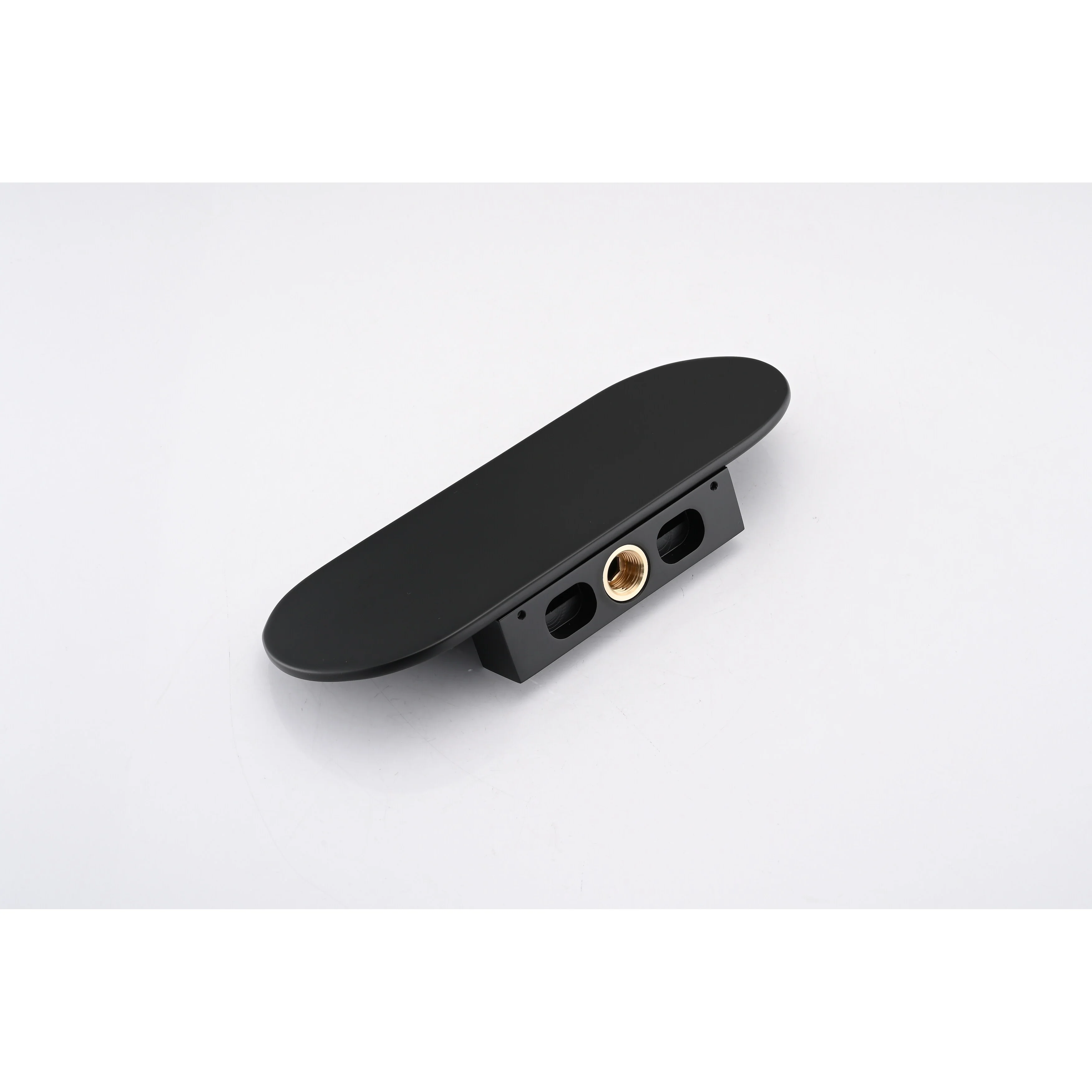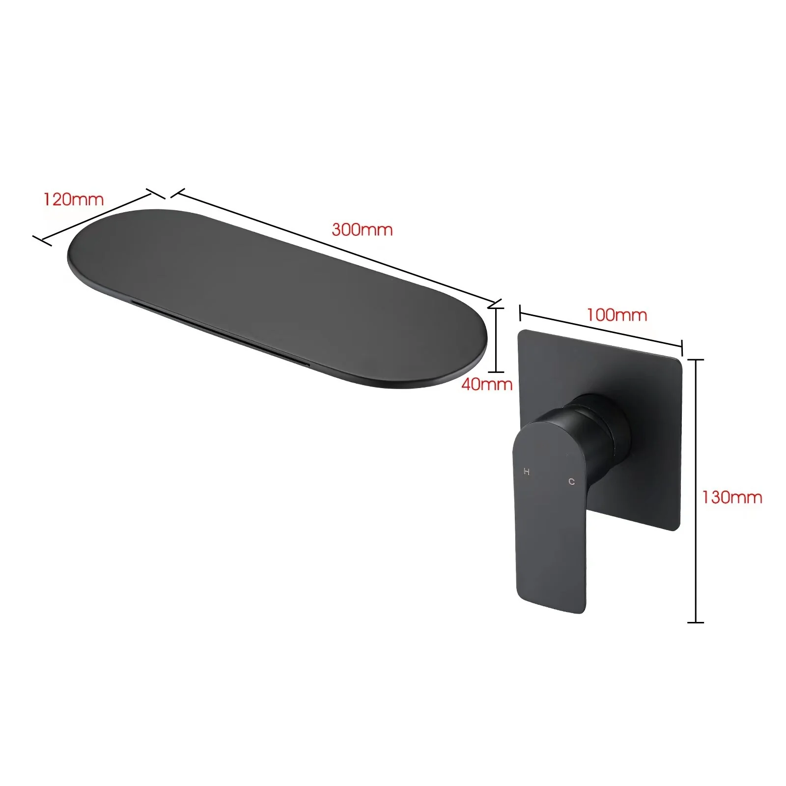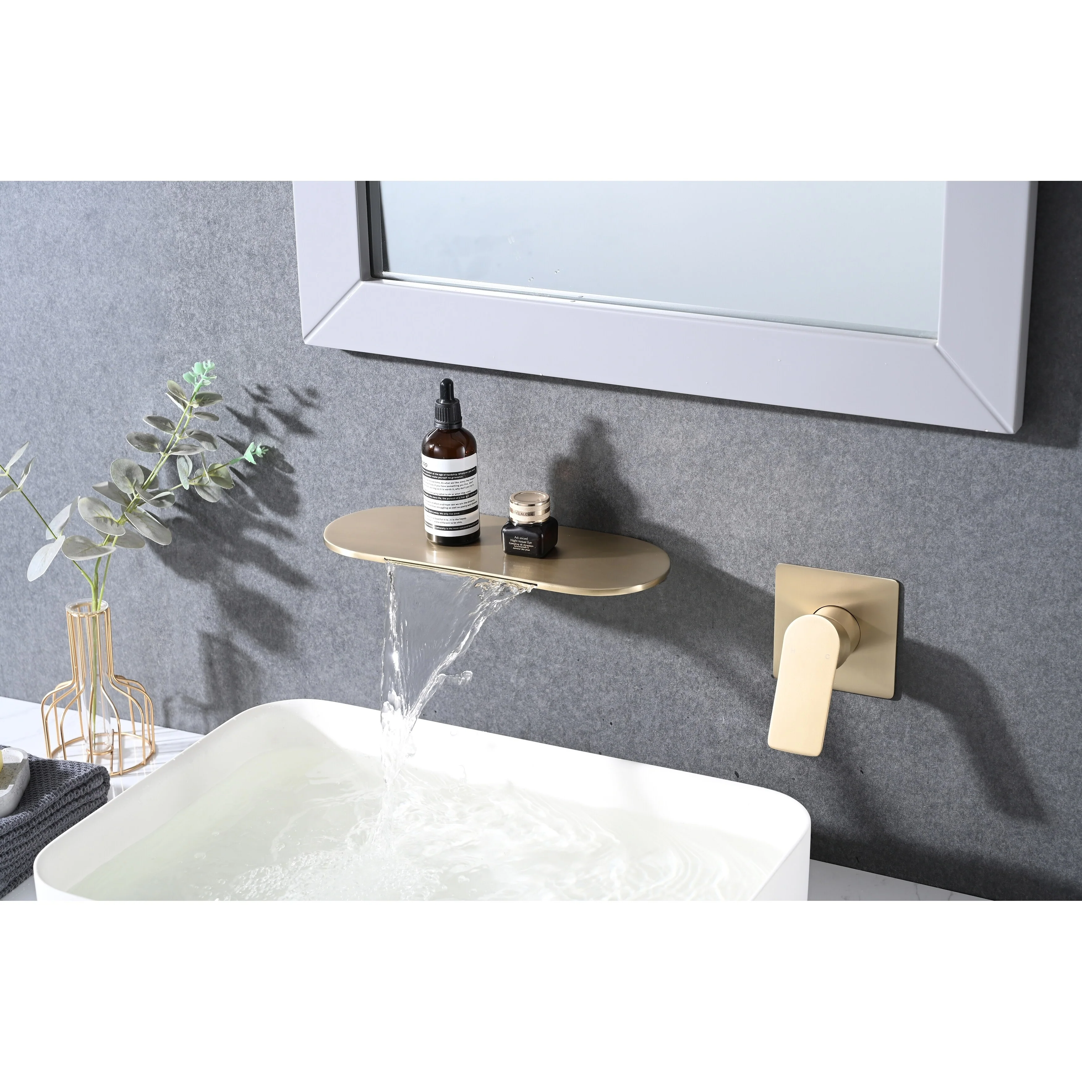 - This wall-mounted waterfall faucet combines a modern design with practical functionality. It features a smooth single-handle operation, independent switch design for flexible placement, and a wide spout that delivers a soft, splash-free stream. The included rough-in valve makes installation more convenient.