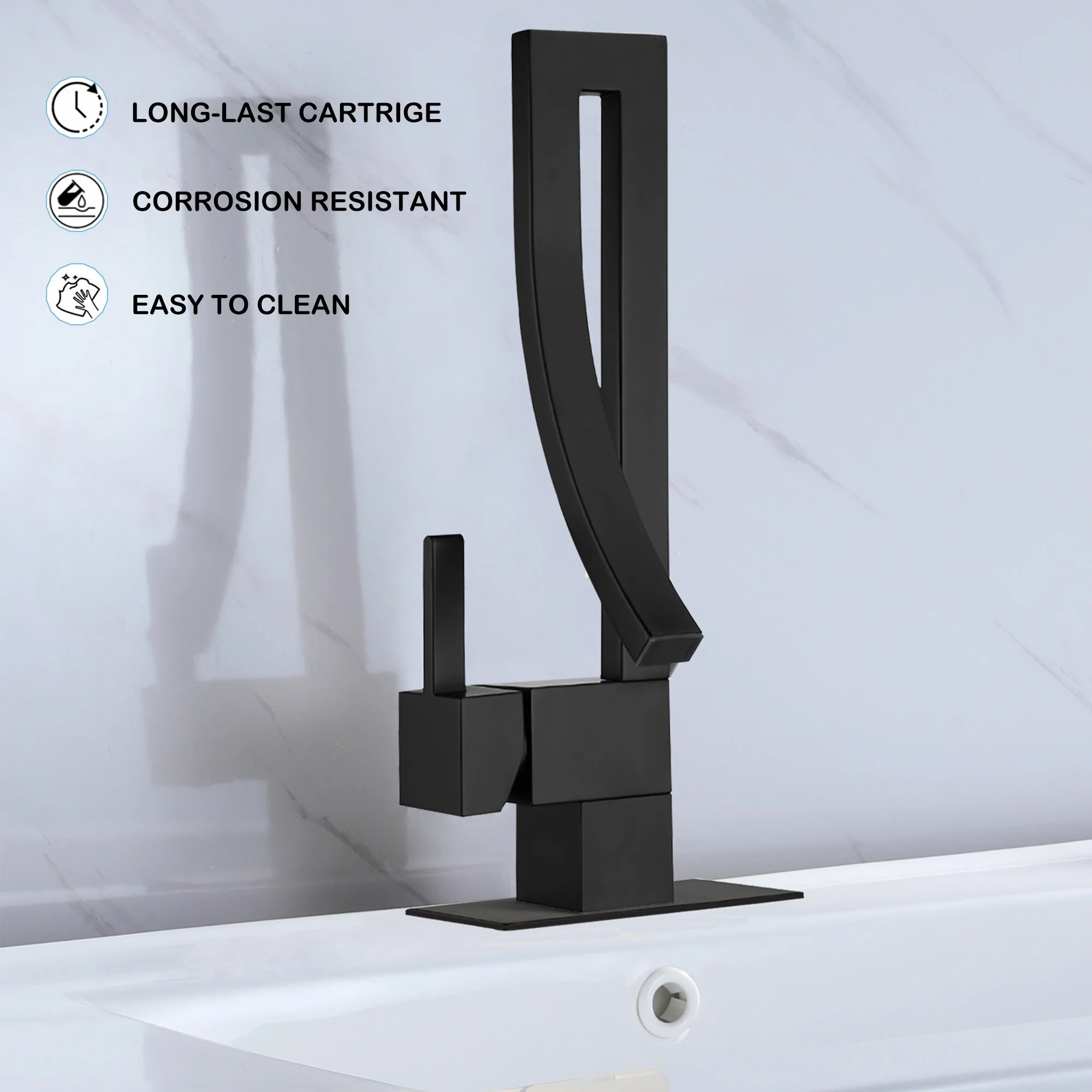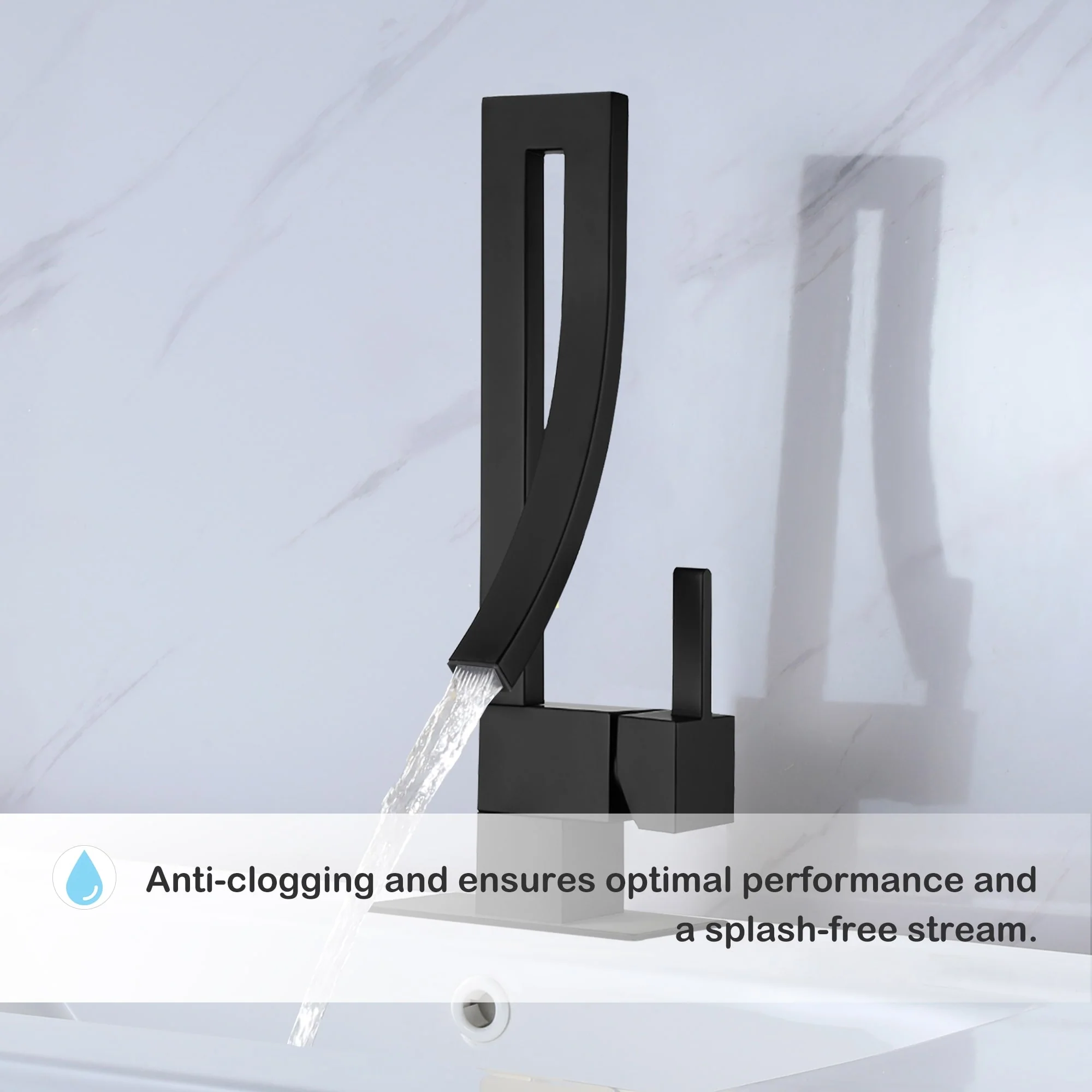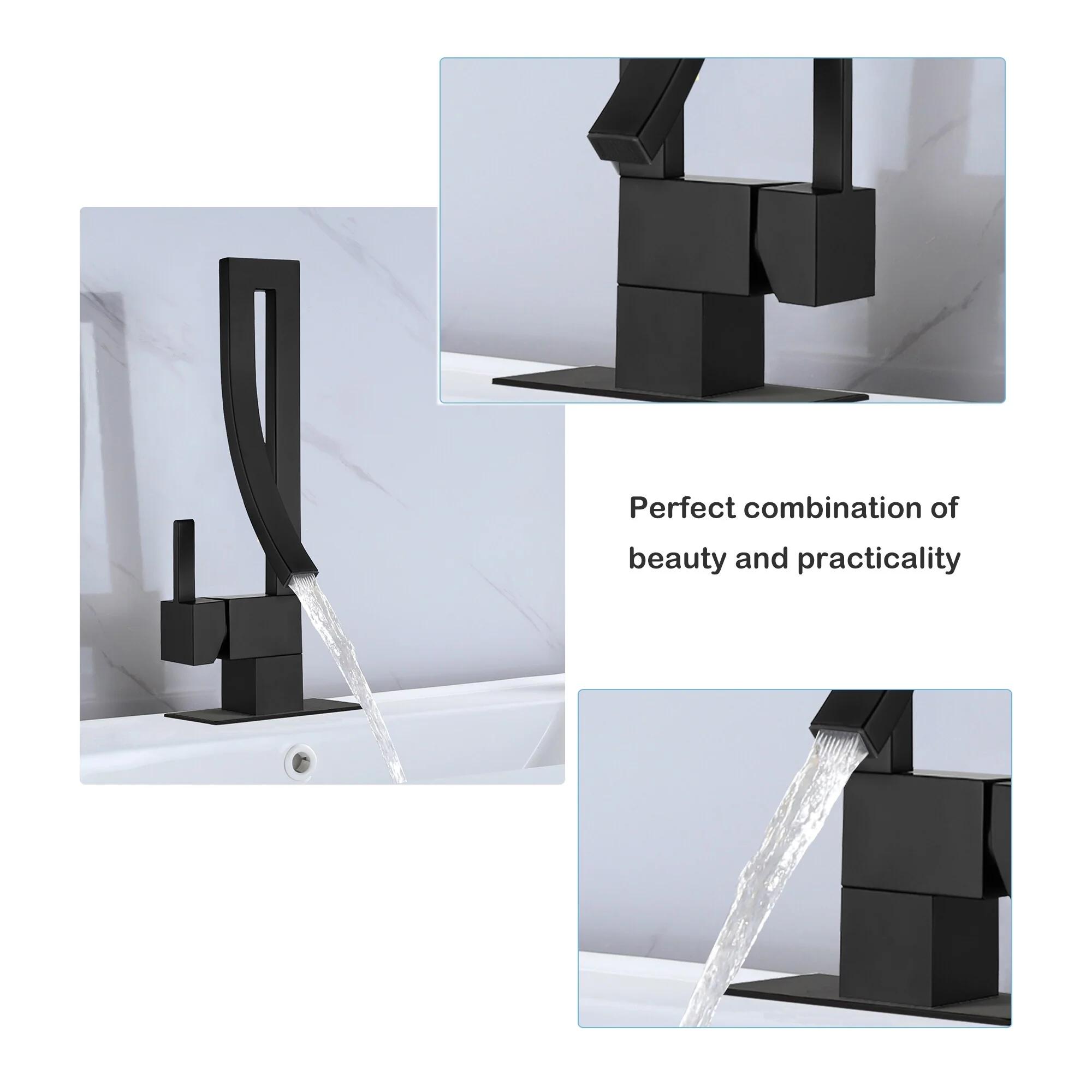 - Long-Lasting Durability: The waterfall-style bathroom faucet combines aesthetics with practicality. The CUPC-certified ceramic valve guarantees long-term durability and reliable performance, making it a fixture you can count on.