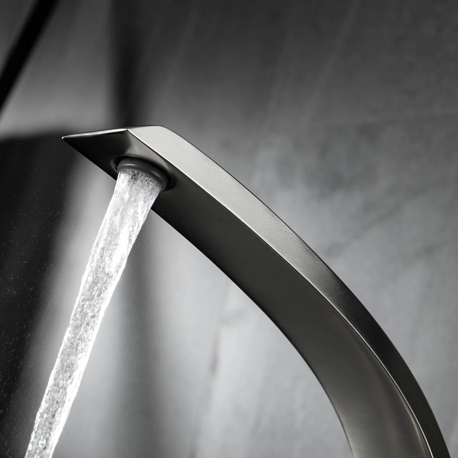 Elevate the charm of your modern home by opting for our stylish stainless steel one-handle bathroom faucet. Its trendy and minimalist design meshes perfectly with contemporary aesthetics, adding a touch of elegance to your bathroom. The finish of the faucet has a delicate and appealing undertone that blends in smoothly with a wide range of settings. What's more, it comes with cUPC certification, which serves as a solid assurance of its safety as well as its ability to deliver long-term, reliable performance. Thanks to its versatility, it can effortlessly enhance different styles of bathrooms, whether they are traditional, transitional, or modern. Make your space stand out with this multi-faceted and refined bathroom faucet.�