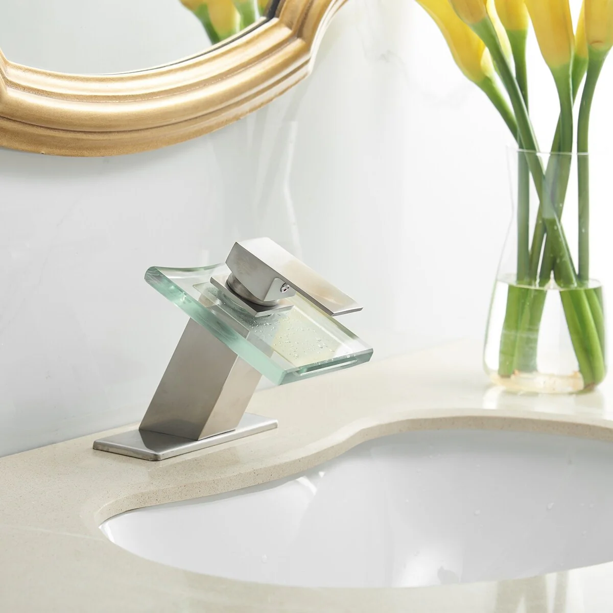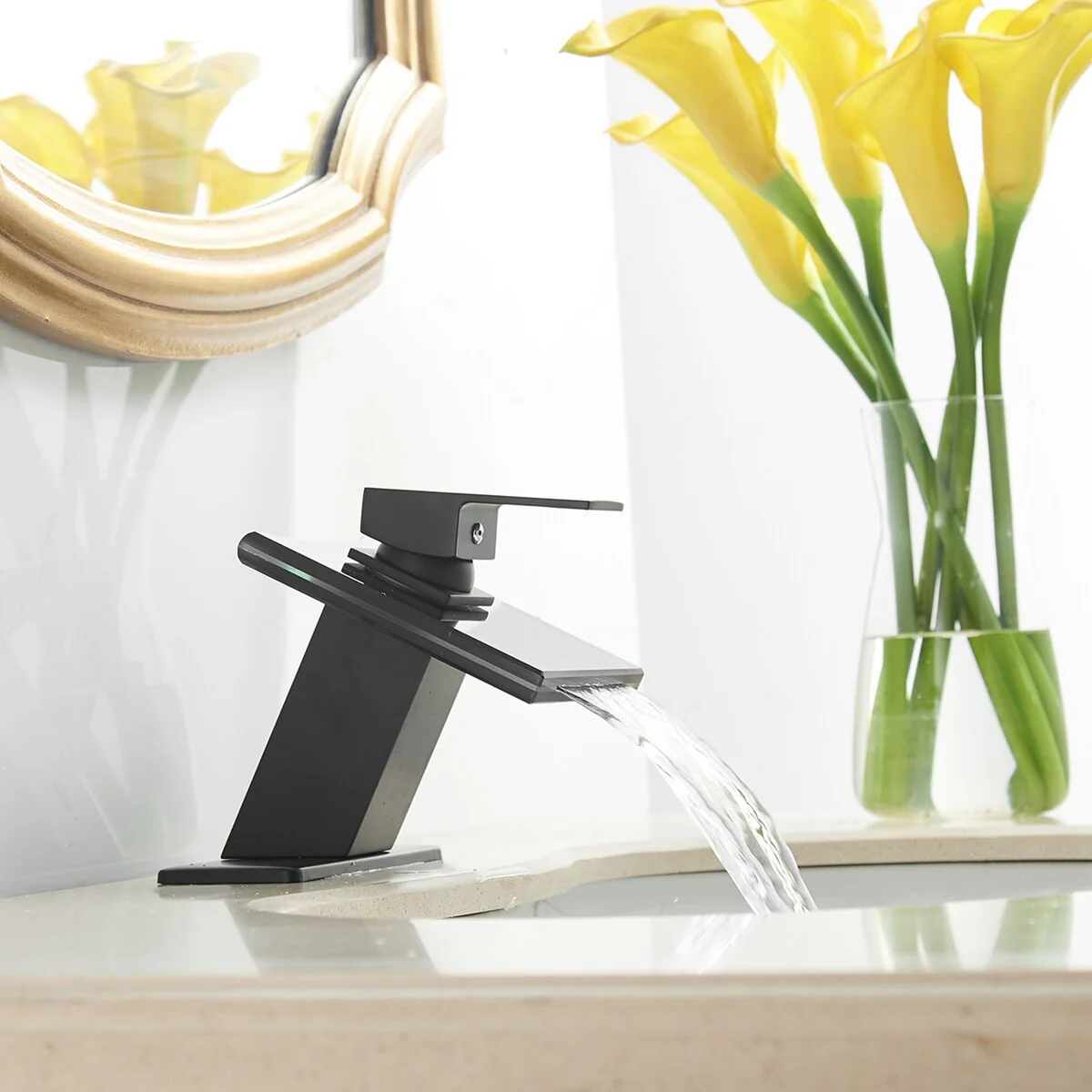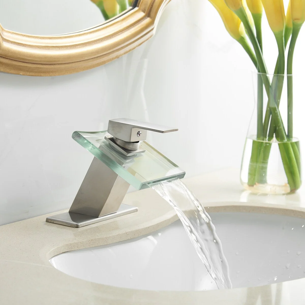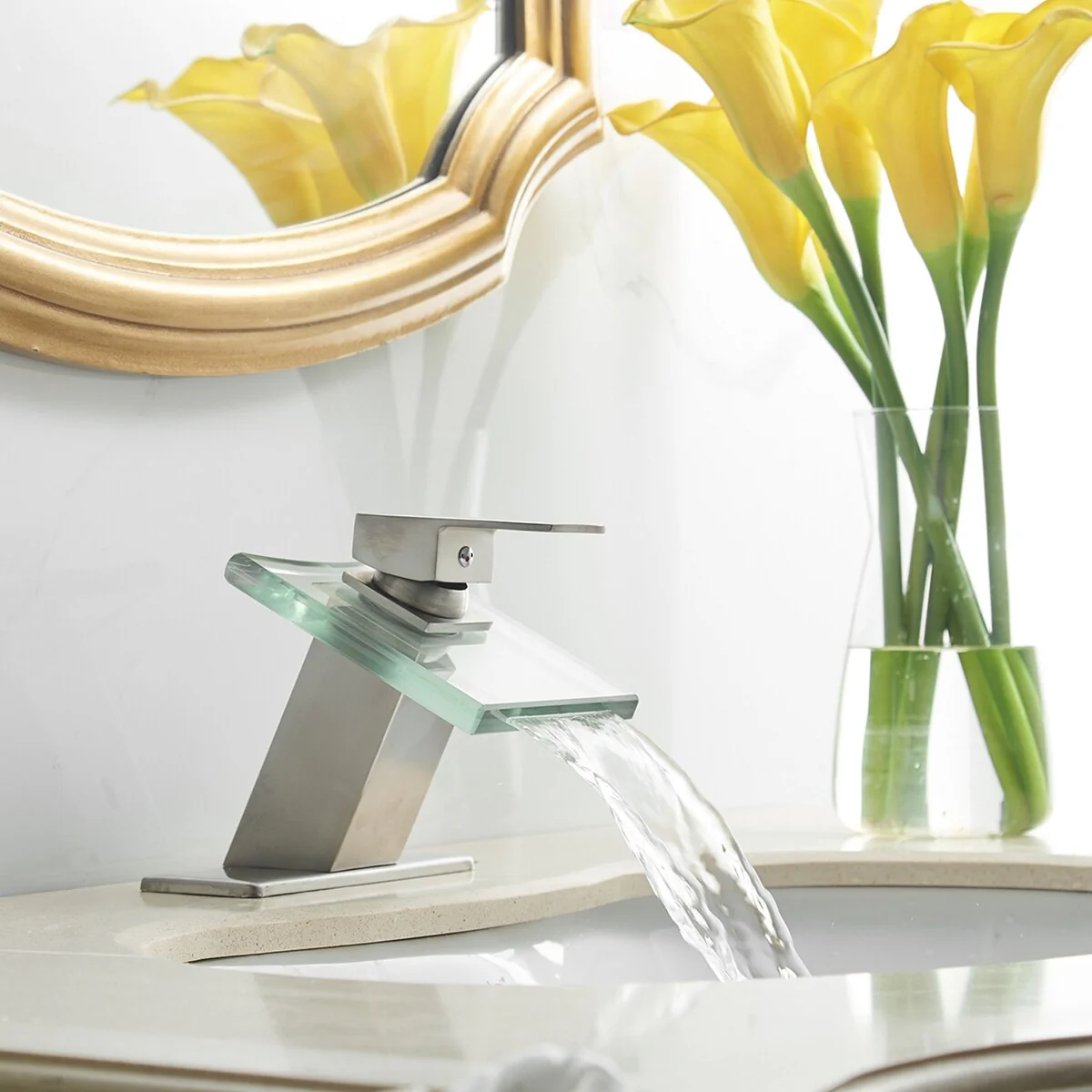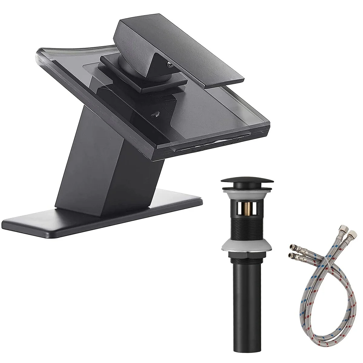 - Complete your bathroom sink installation with this waterfall faucet and pop-up drain kit. This faucet makes a sophisticated addition to your waterfull basin, and the single-lever control offers easy one-handed operation.�