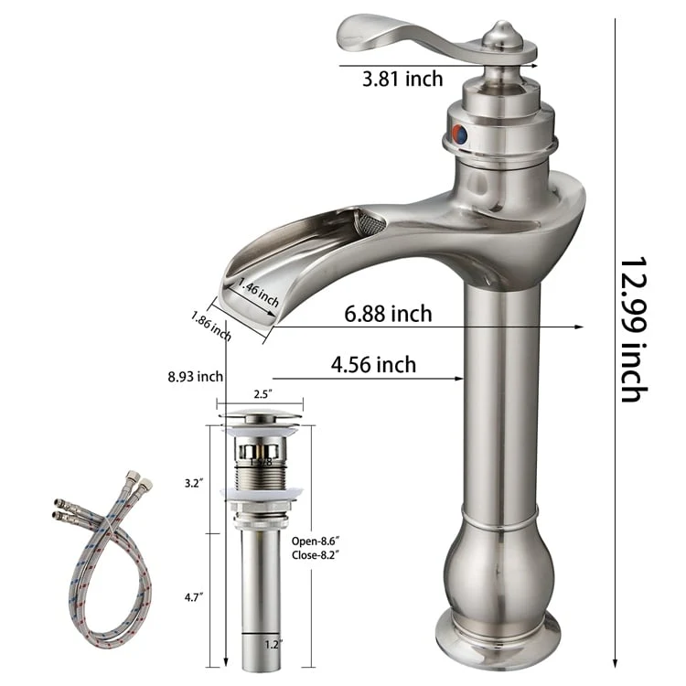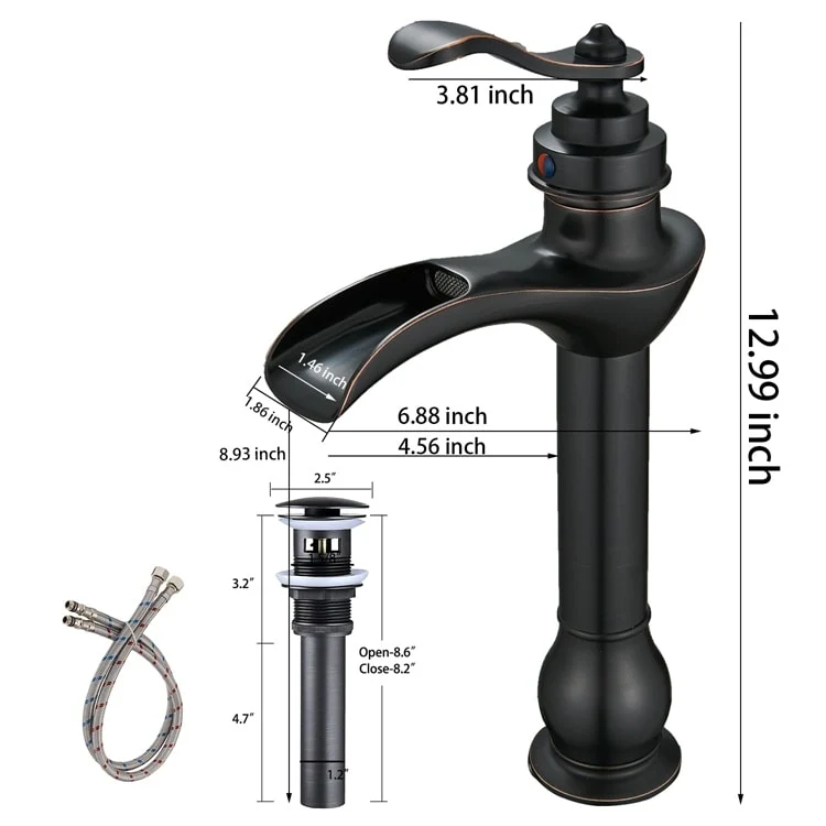 This Single Handle One-Hole Waterfall Bathroom Faucet is a brilliant accessory for your bathroom. This faucet has a retro-inspired design, but it's almost perfect for bathroom decor. The low lead solid brass fabrication body of the faucet ensures longevity to provide customers with the faucet and the best water experience. The bathroom faucet provides a clear and steady laminar flow that presents a beautiful flow of water.