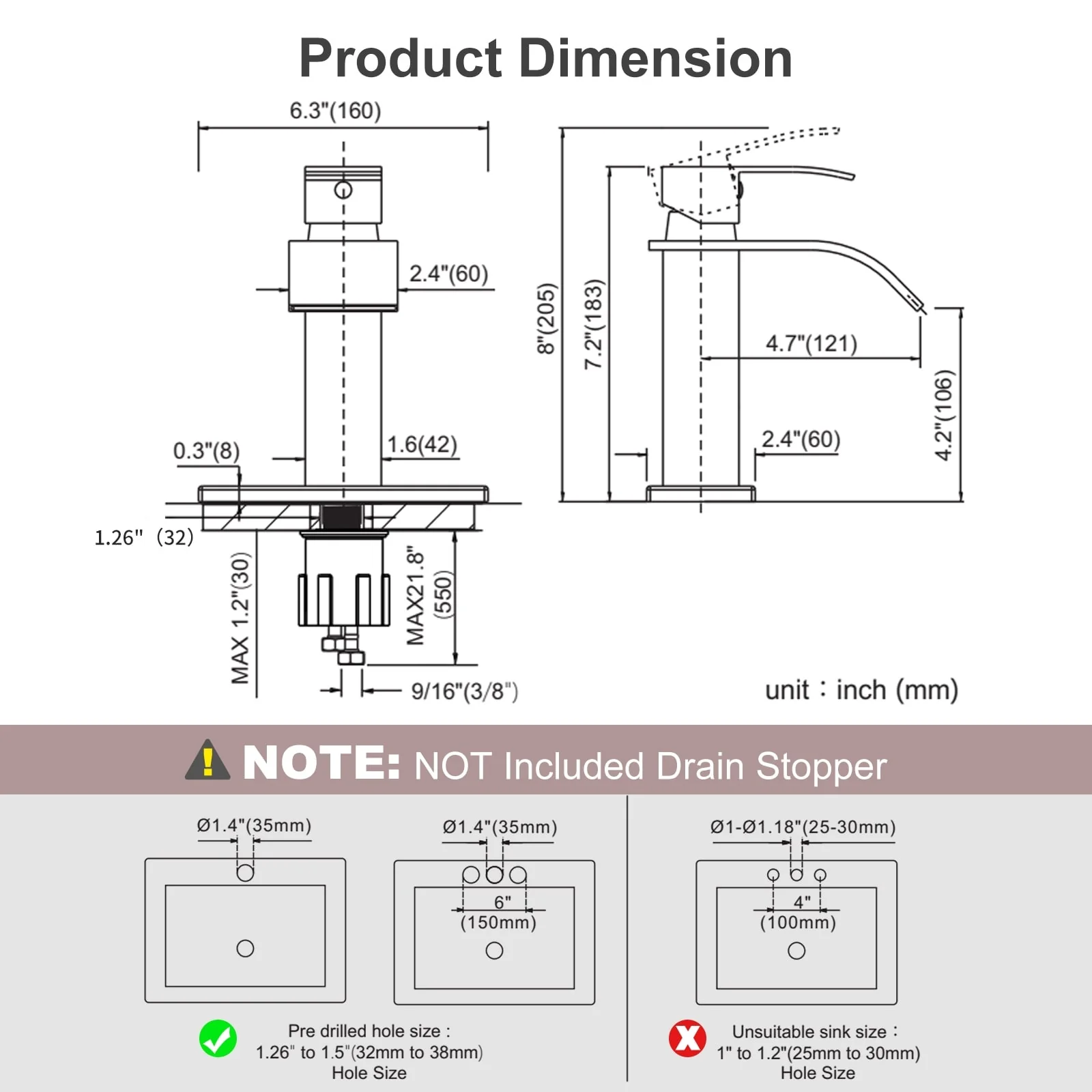 - Single-hole or three-hole installation, comes with a base plate and installation manual, can be installed in 20 minutes
