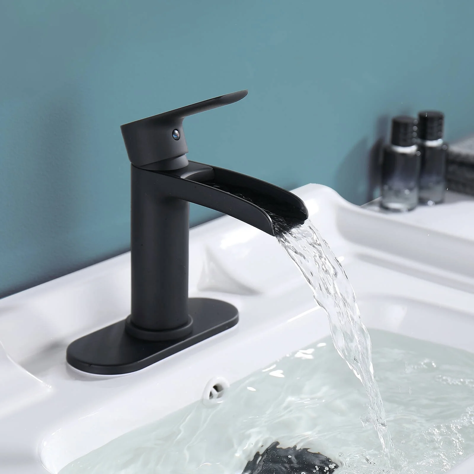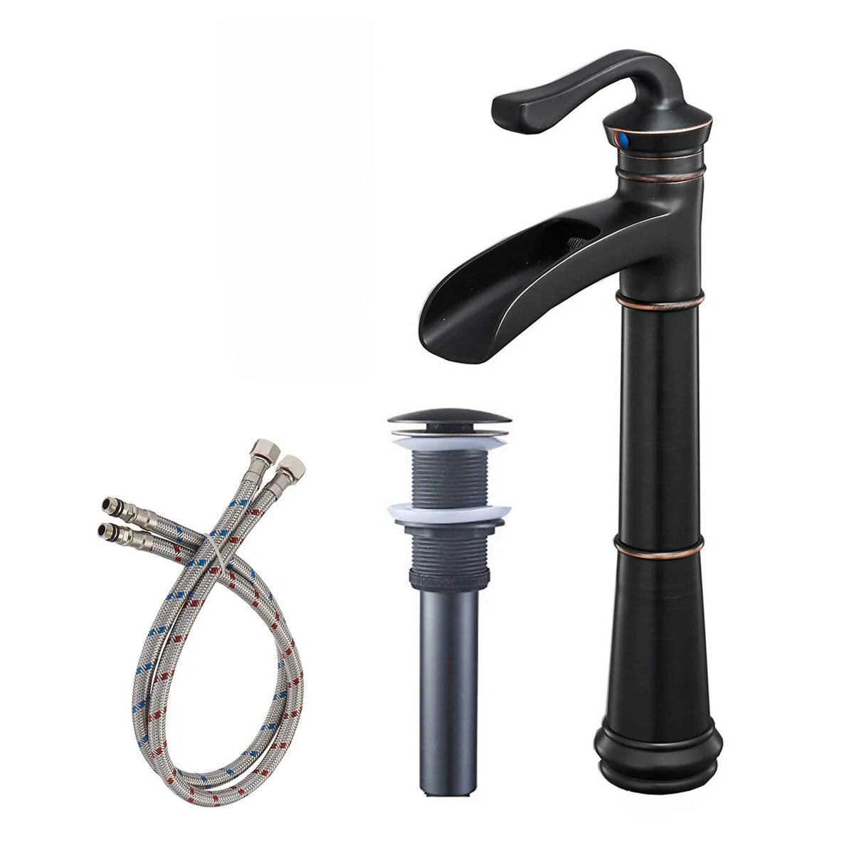 WOWOW Single Handle Waterfall Bathroom Faucet with Pop-Up Drain