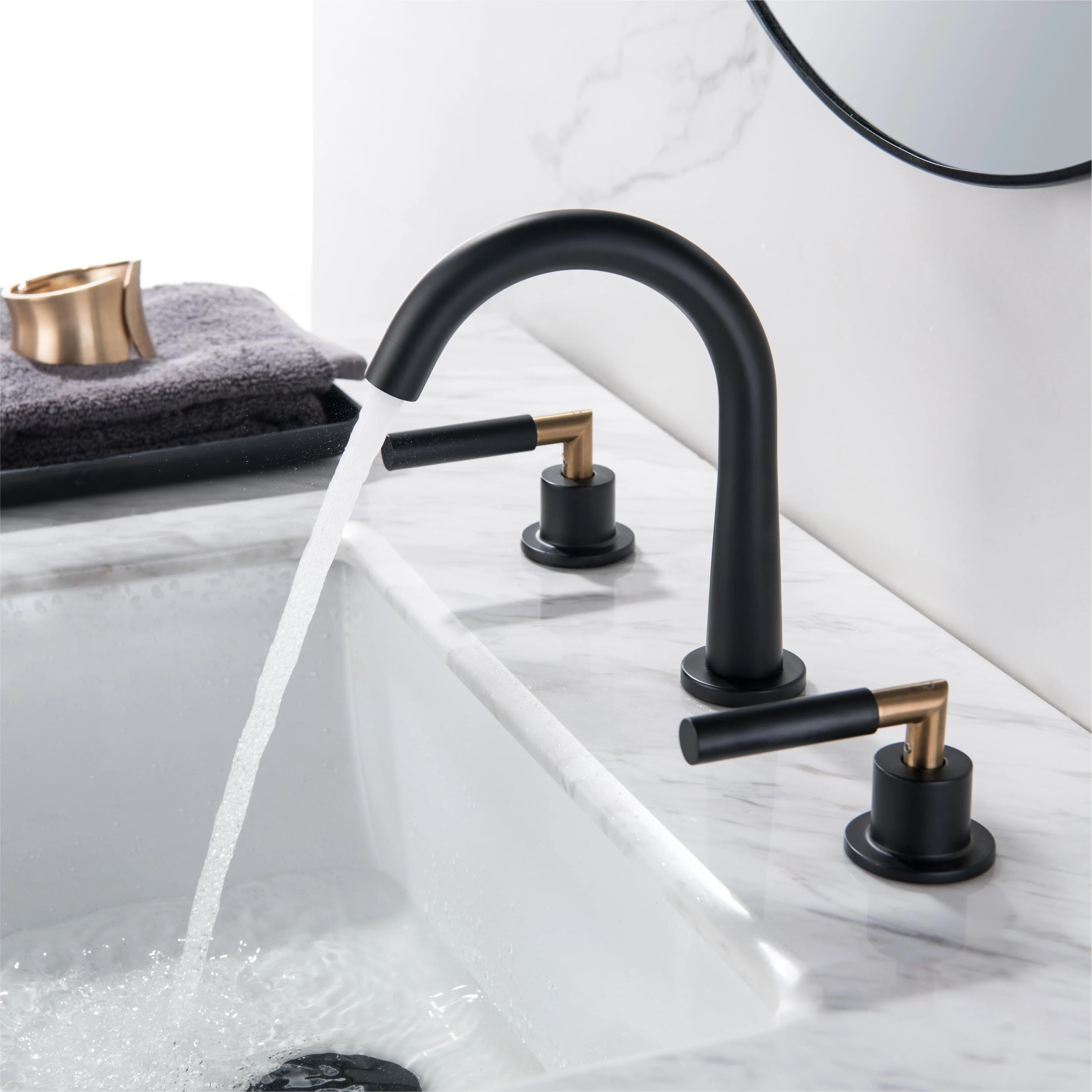 DORNBERG Modern Round�Handles Widespread Bathroom Faucet
