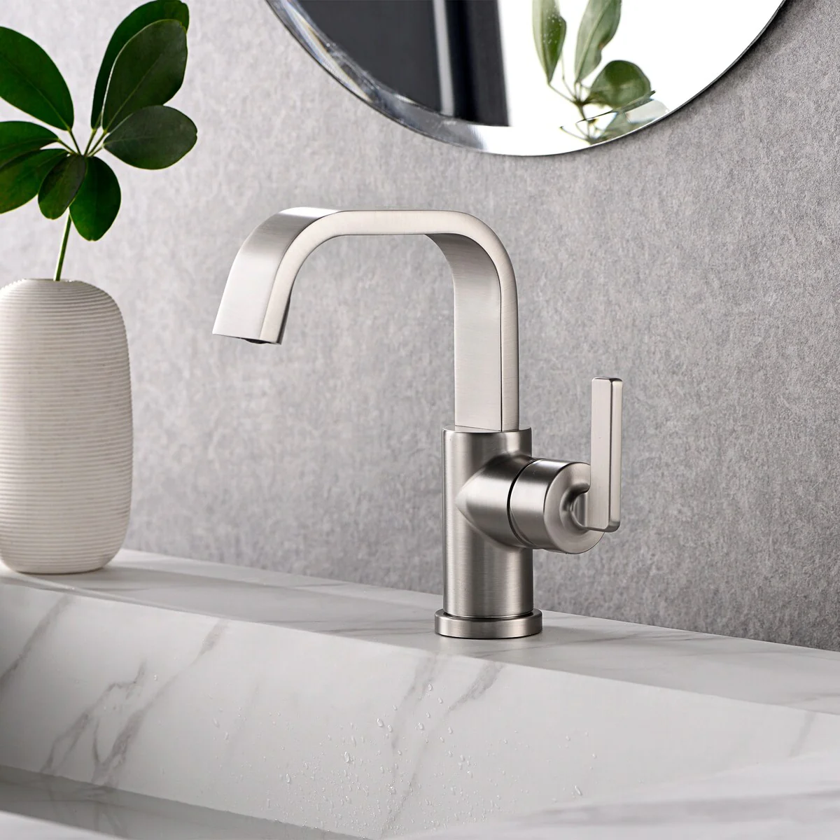 Luxier BSH11-S Single Handle Single Hole Bathroom Faucet with Drain