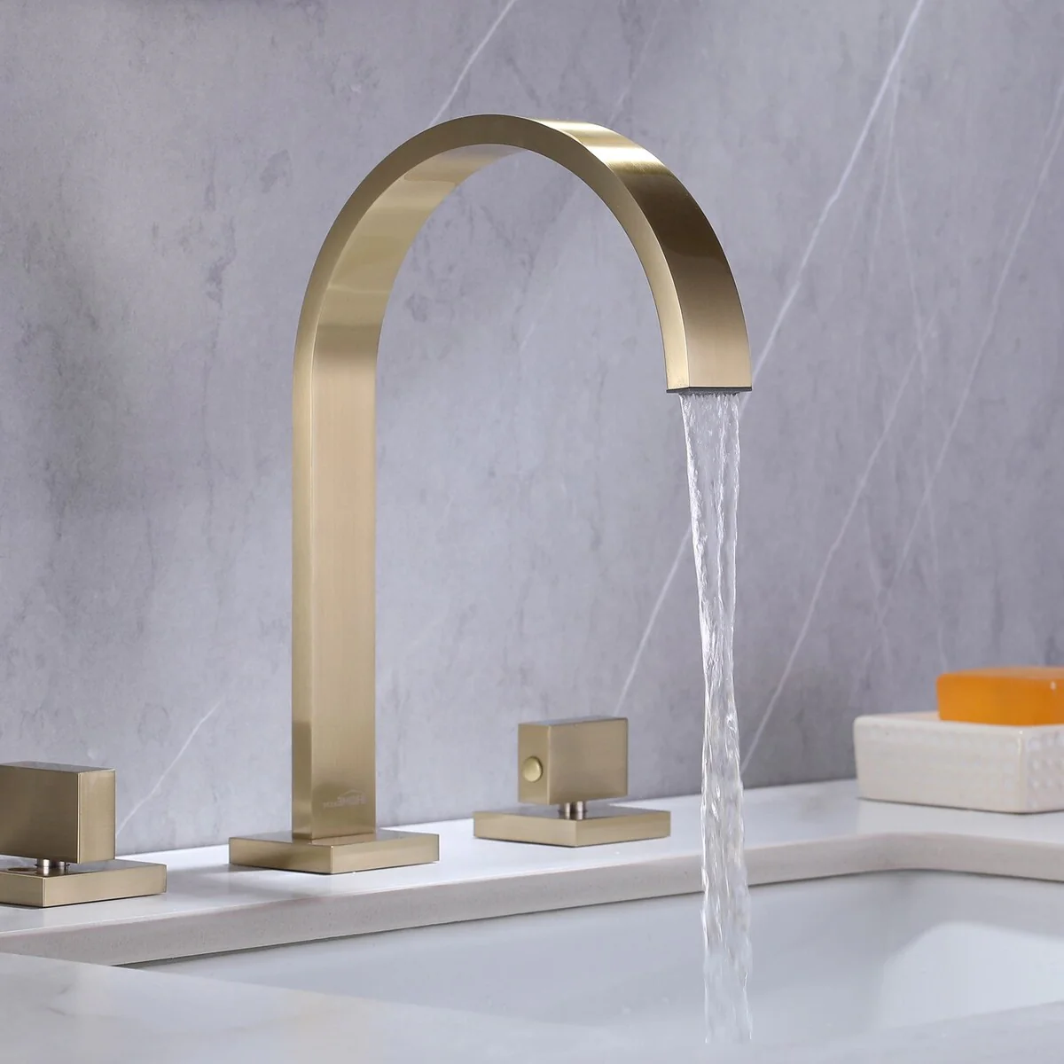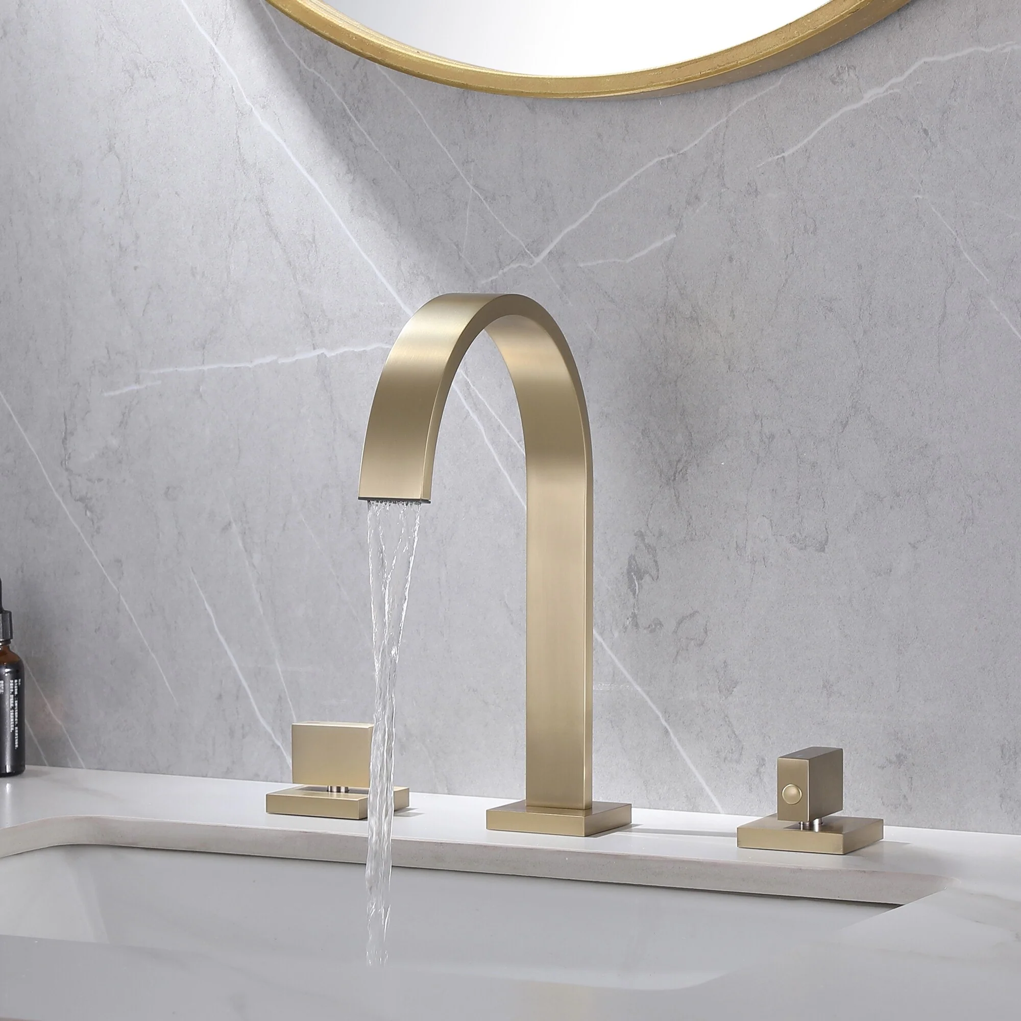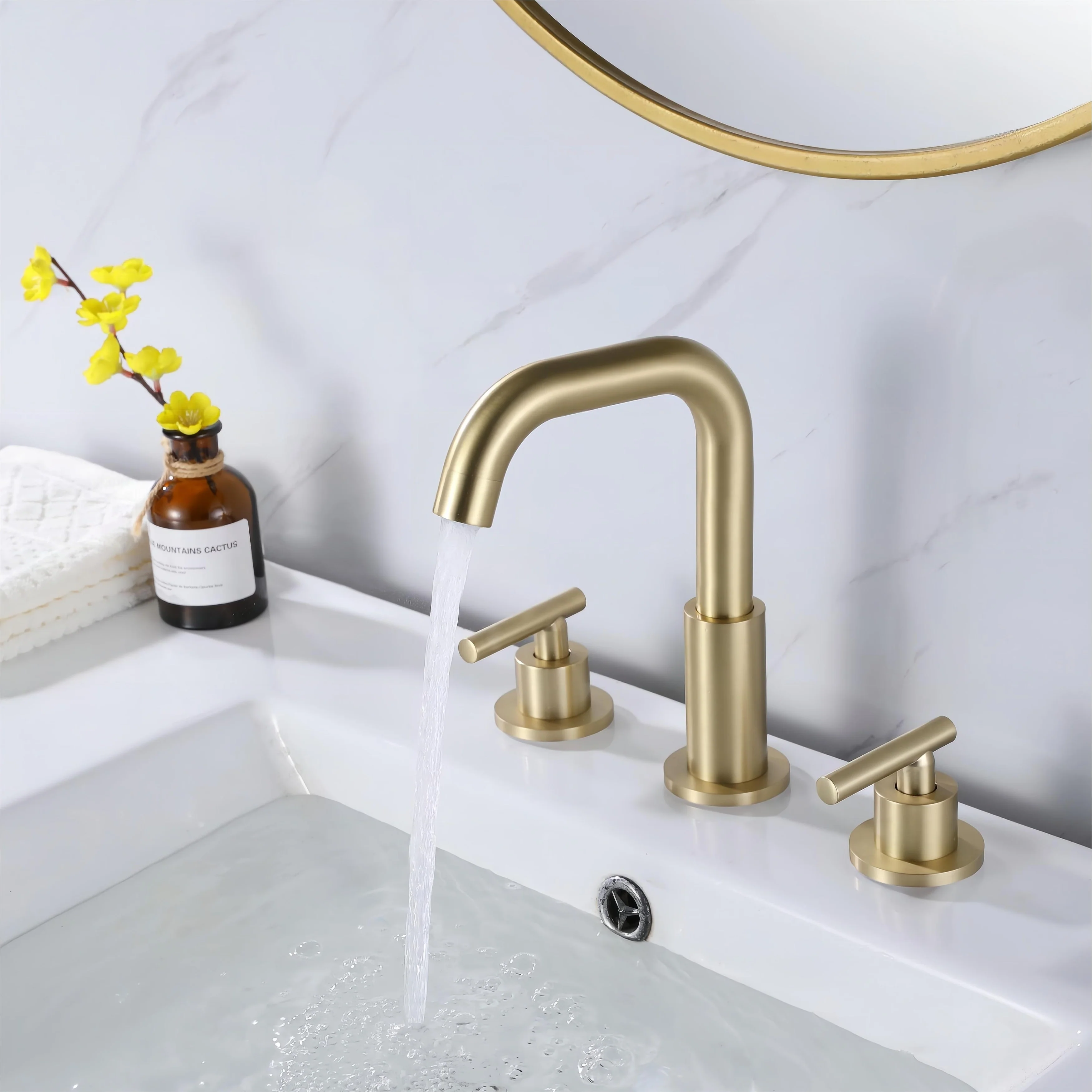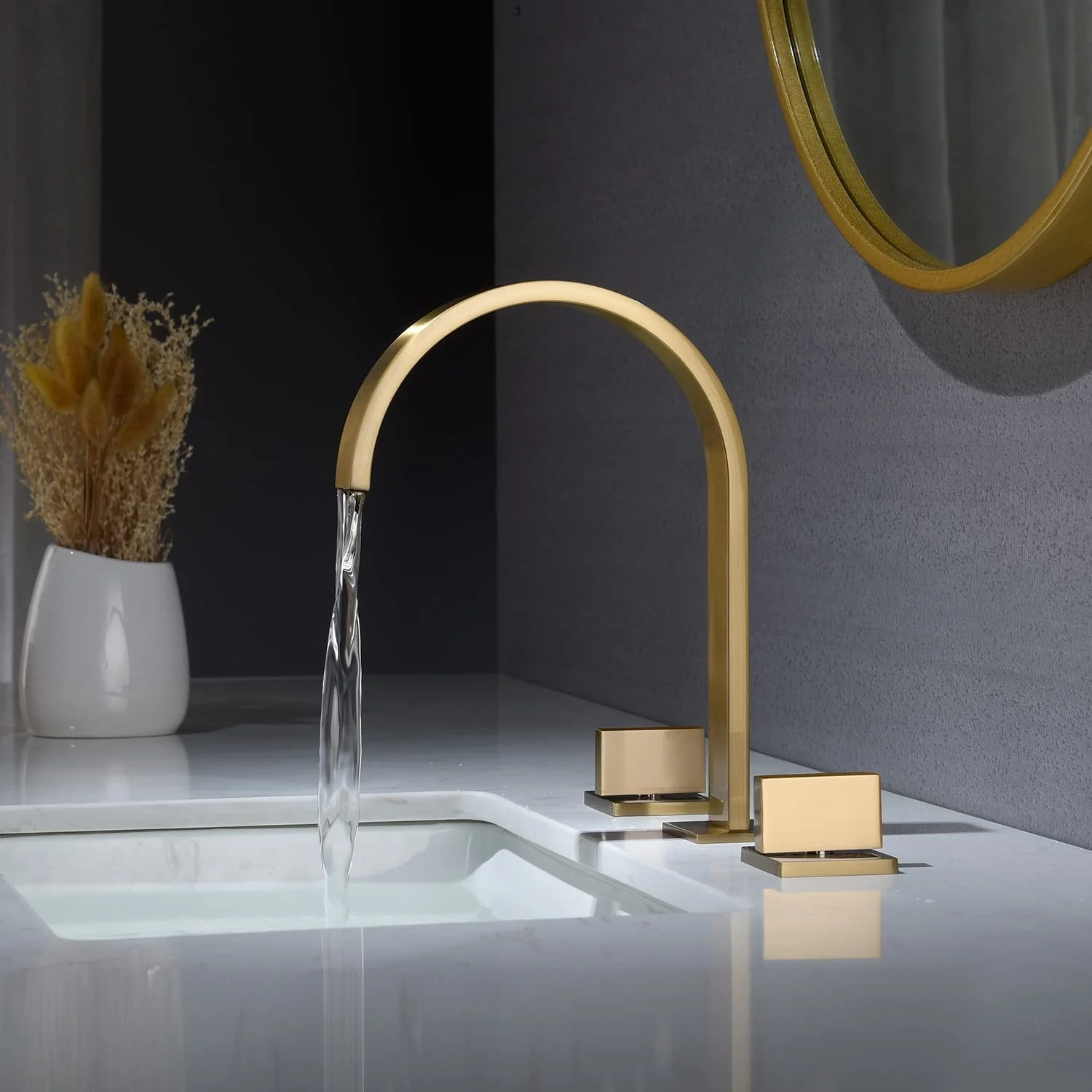 Brushed Gold 8-inch Widespread Double Handles Bathroom Sink Faucet