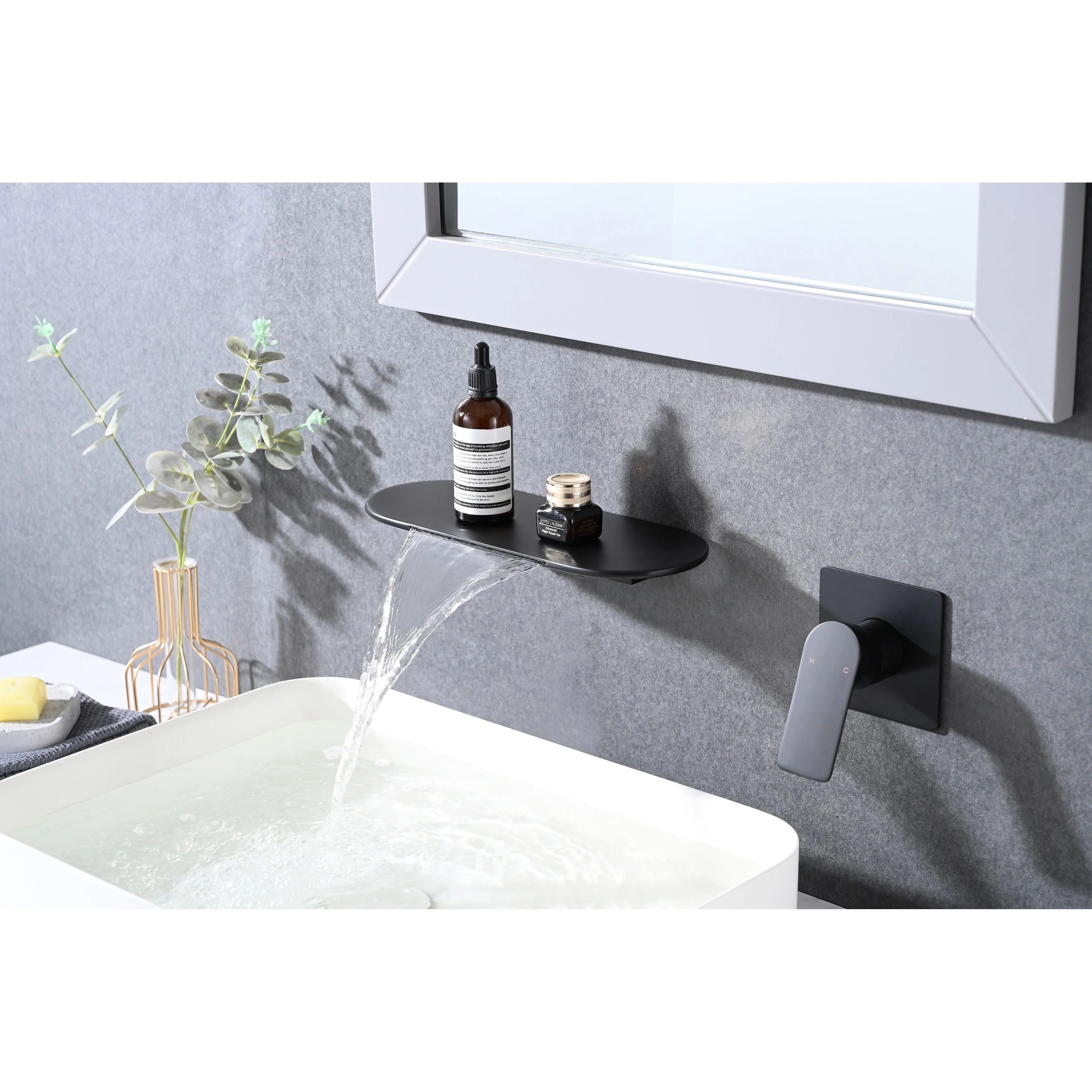 Modern Single Handle Wall Mounted Waterfall Bathroom Sink Faucet with Rough Valve and High Flow Filler, Splash Proof
