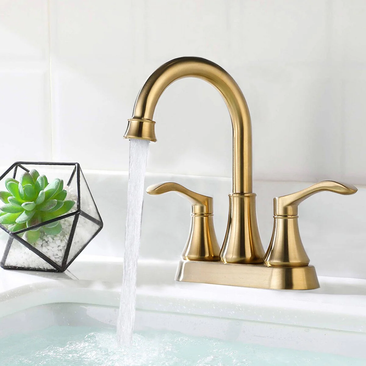 Brushed Gold 3-Hole Double Handle Bathroom Sink Faucet