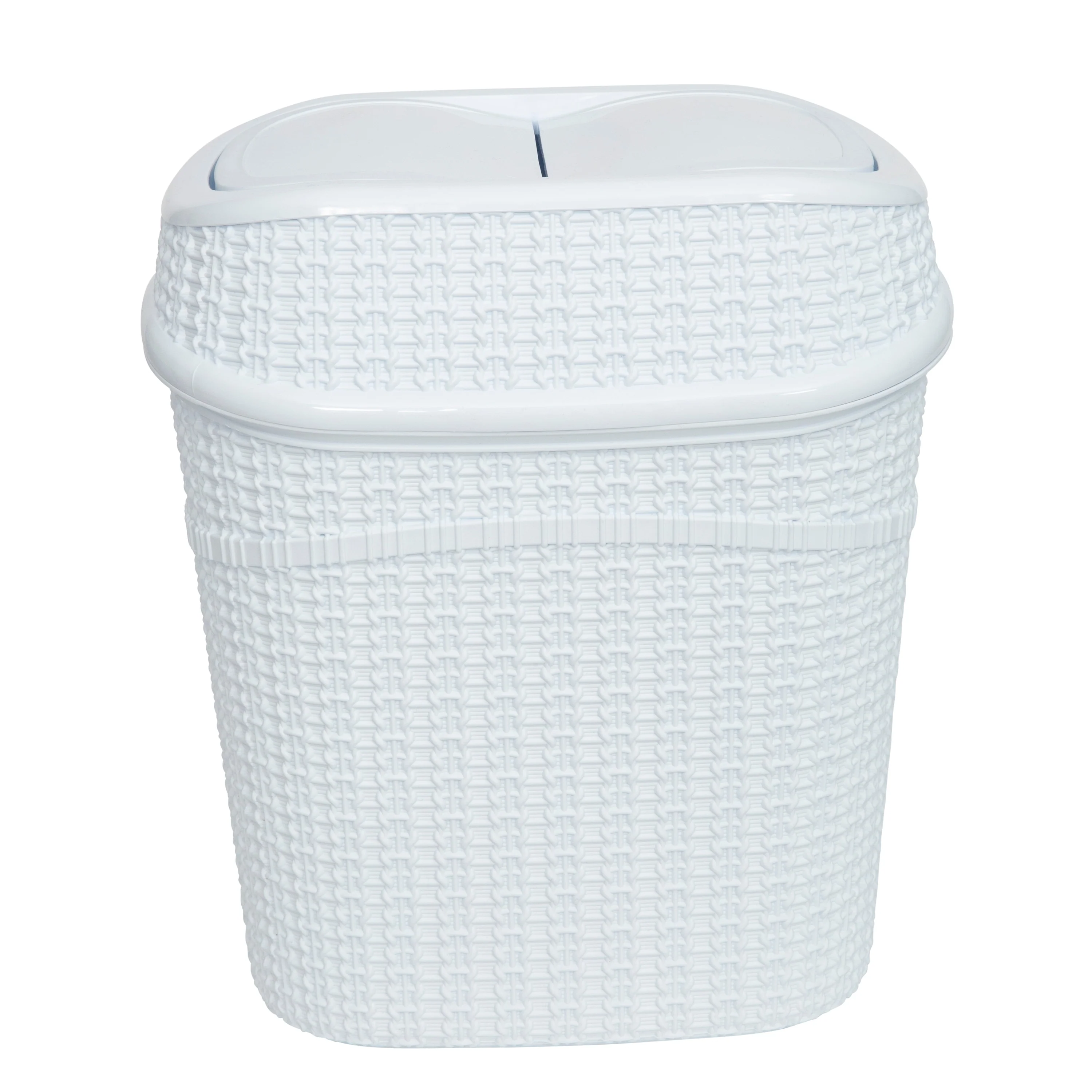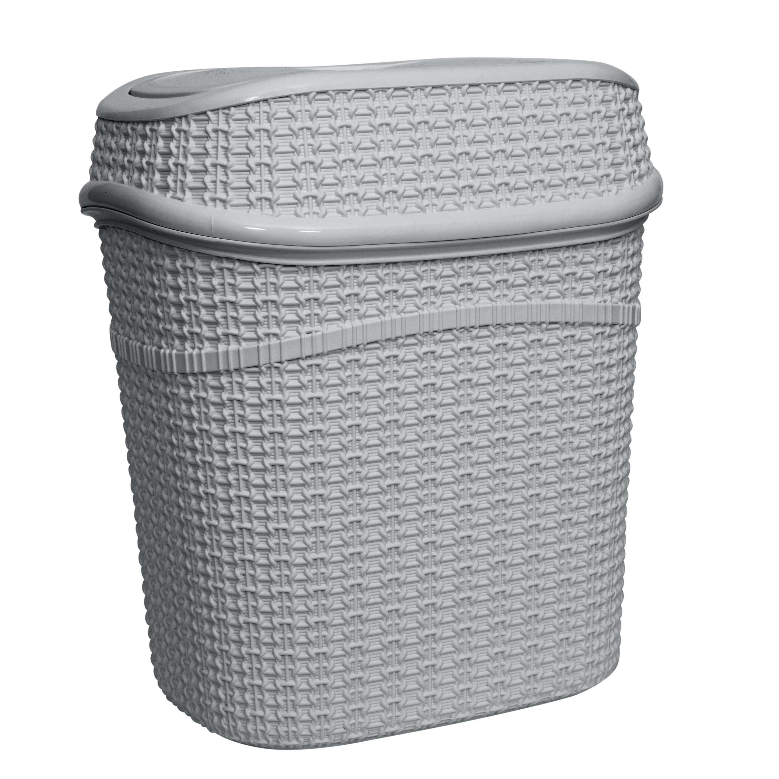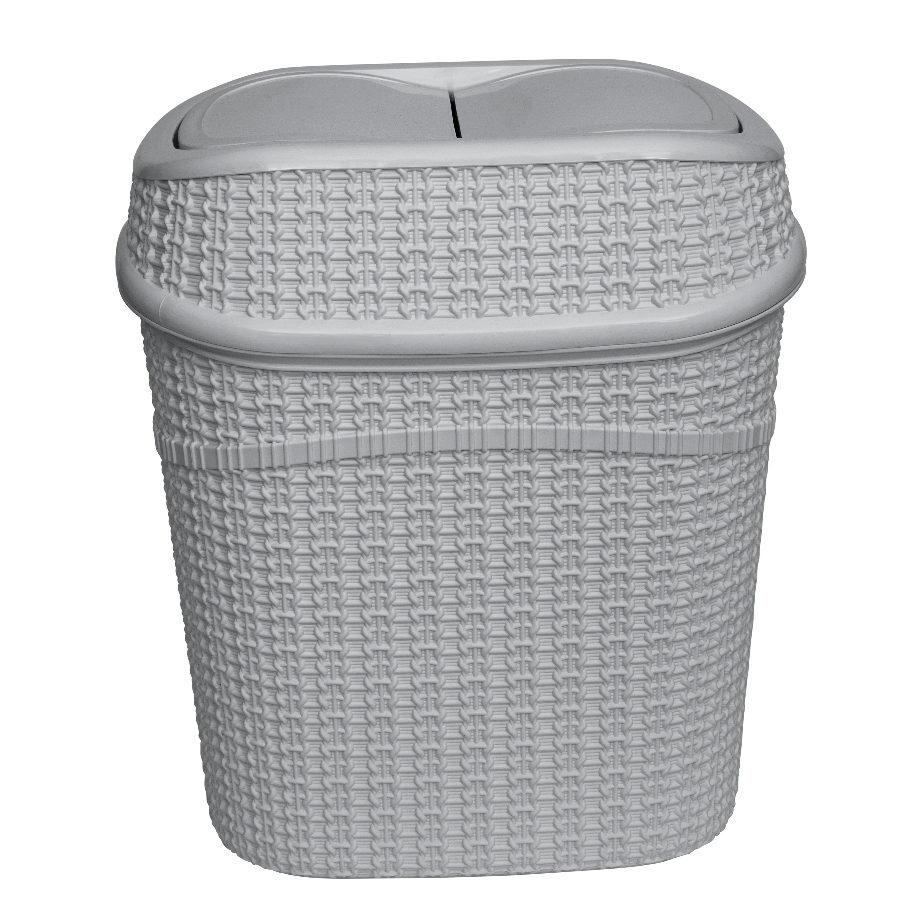 Add a contemporary look to your home with the Bath Bliss 9.5 Liter Sailor Knot Swing Top Waste Bin. The Sailor Knot design makes for a functional and decorative piece for your bathroom, office, or dorm. Designed with a 9.5-liter capacity and a convenient swing top lid. The lid trop odors and prevents messes and overflow. When the waste bin is full the whole top comes off to easily empty the bin. It is a great addition to any small space. Never worry about the look of trash again with this Bath Bliss waste bin to hide the mess. A must have for every room to keep your home clean!
