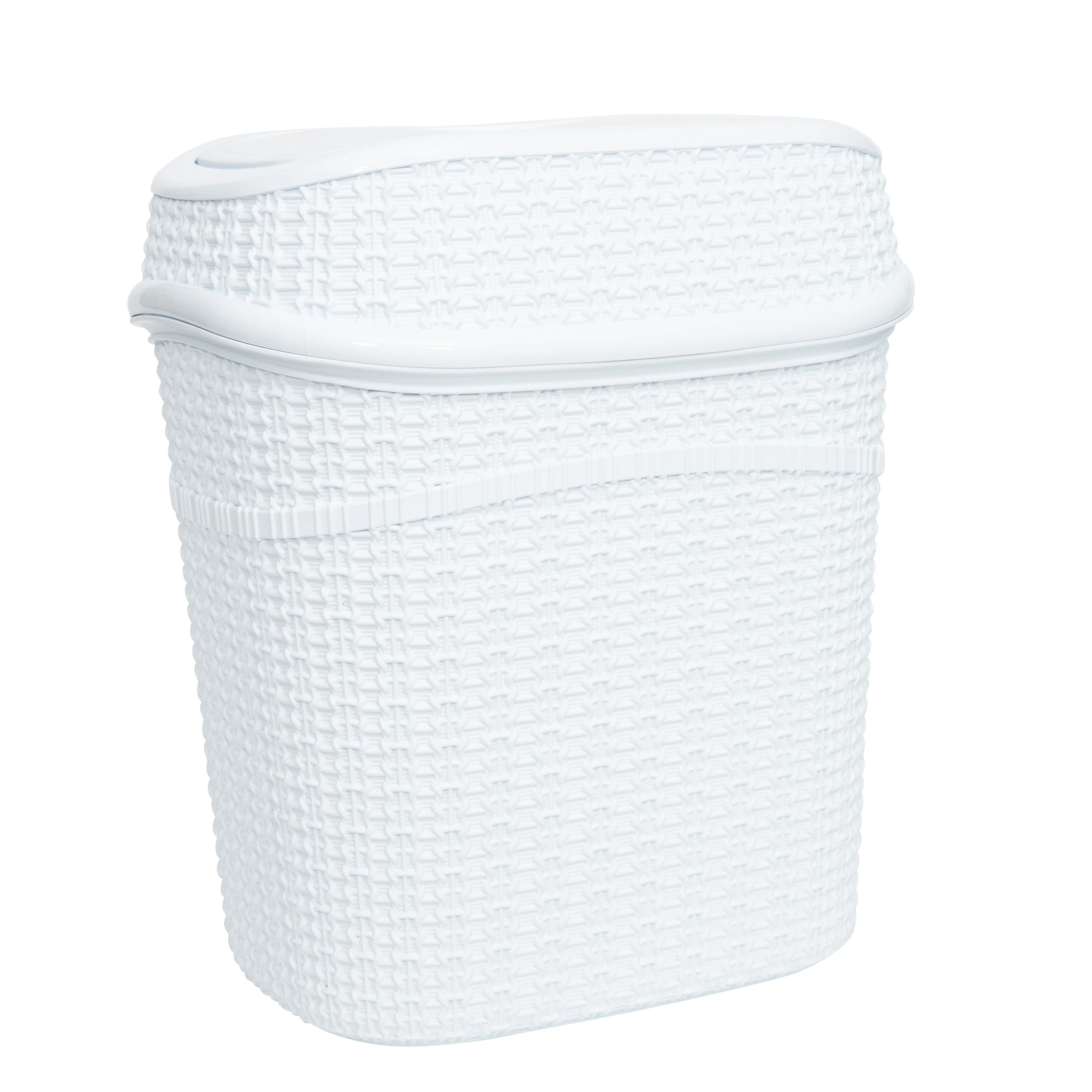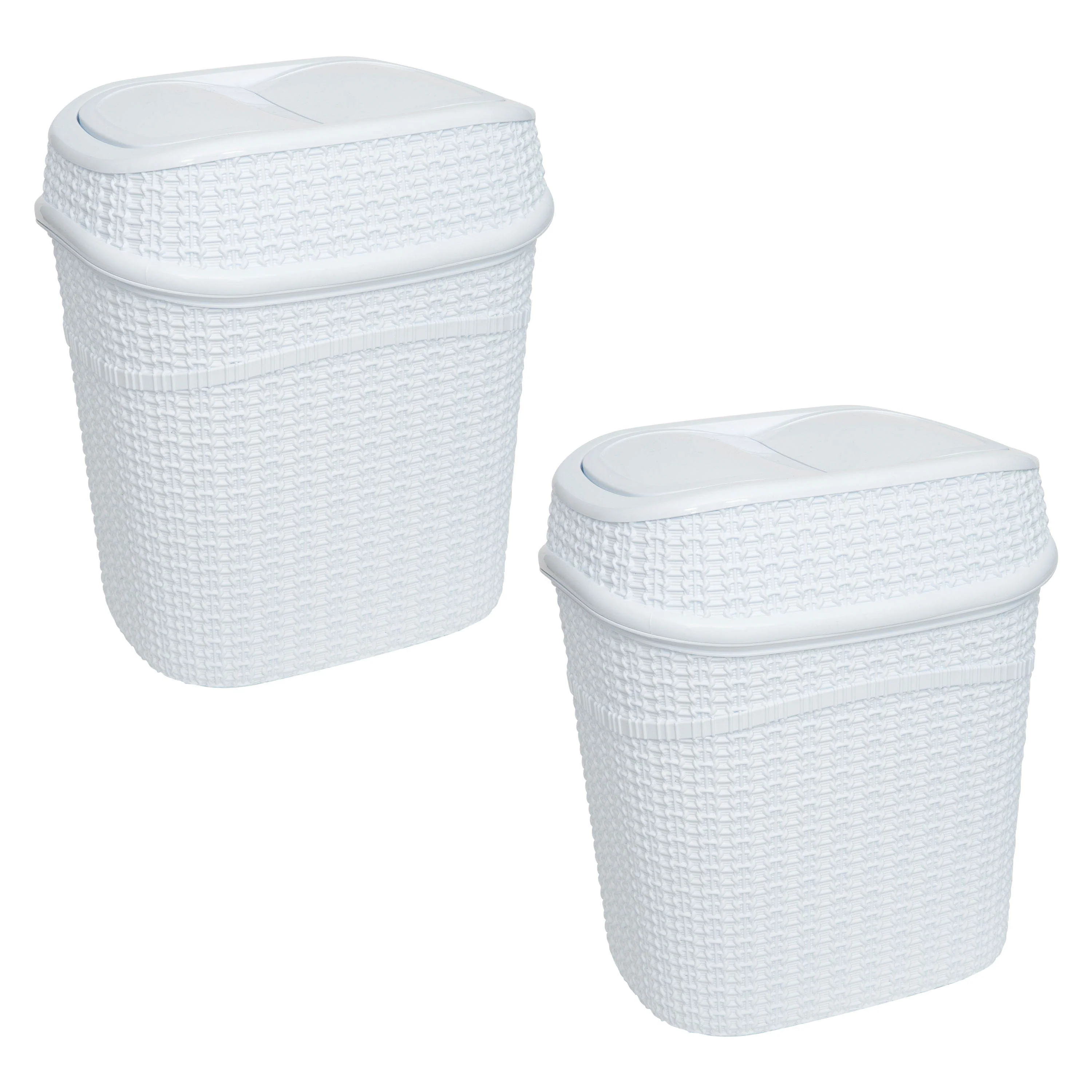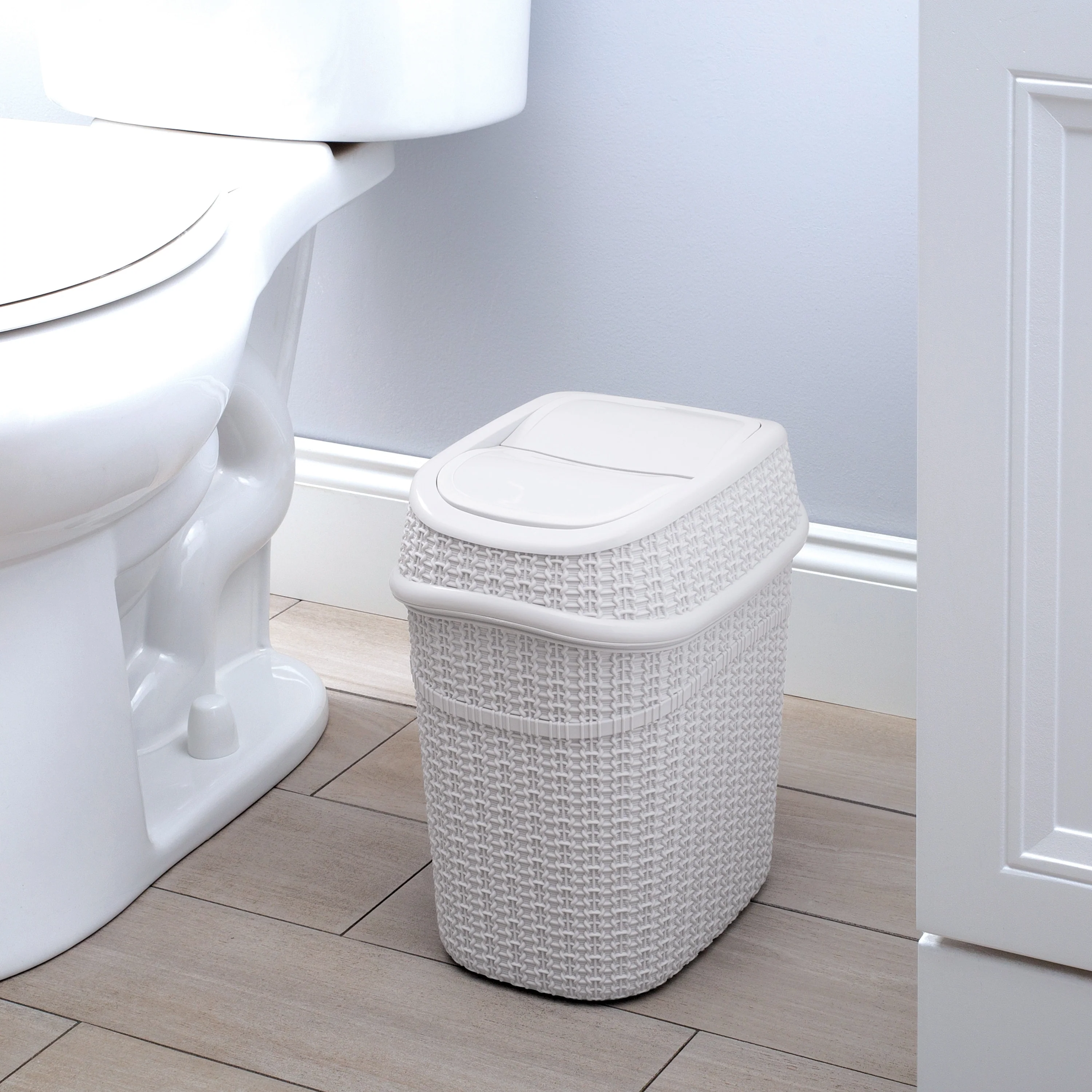 Add a contemporary look to your home with the Bath Bliss 9.5 Liter Sailor Knot Swing Top Waste Bin. The Sailor Knot design makes for a functional and decorative piece for your bathroom, office, or dorm. Designed with a 9.5-liter capacity and a convenient swing top lid. The lid trop odors and prevents messes and overflow. When the waste bin is full the whole top comes off to easily empty the bin. It is a great addition to any small space. Never worry about the look of trash again with this Bath Bliss waste bin to hide the mess. A must have for every room to keep your home clean!