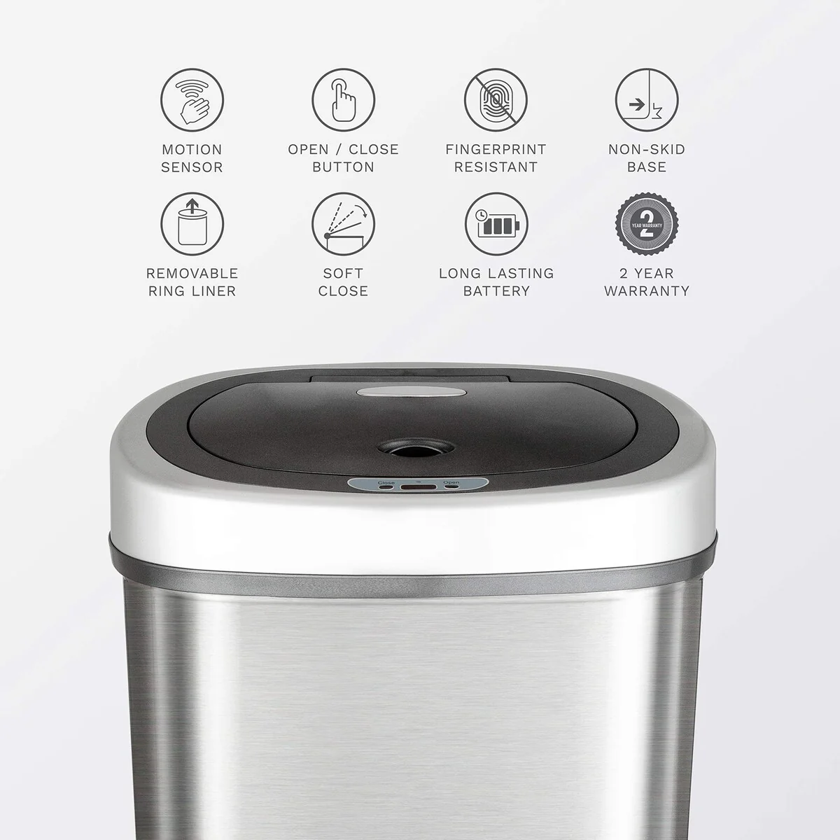 ��Touch-free Motion Sensor Lid Clouser��Seal odor in and eliminate cross-contamination of germs. Requires 3 C batteries (not included), Alkaline battery highly recommended for best performance.