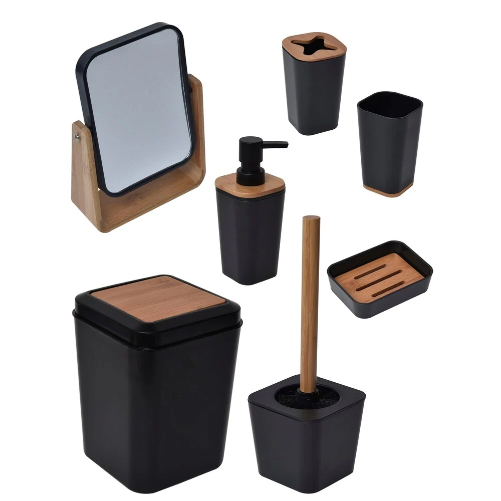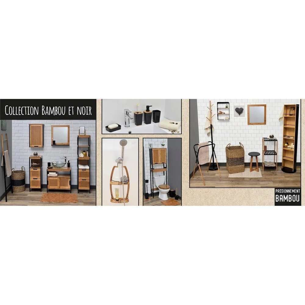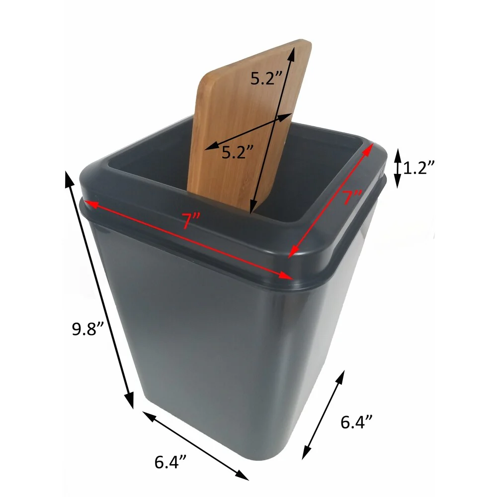 This square Toilet Trash Can Phuket with a bamboo top swing lid is made of durable black plastic (polypropylene), which is resistant to rust and corrosion through everyday use. The large opening of the lid ease to put trash in it and the bamboo material adds a natural touch to your home. This square shaped waste bin features a nice storage capacity with its 5 liters or 1.3-Gal and brings a playful and colonial touch to your bathroom. It offers a removable swing lid to conceal your trash and to ease the bag change. Dimensions of 7 Inch length by 7 Inch width and height of 9.8-Inch. Wipe clean. Imported from France, made in PRC. Color black and bamboo. This waste basket adds a natural accent to any bathroom, kitchen or under a desk. This Round Toilet Trash Can Phuket coordinates well with other products in the same collection, including tumbler, soap dispenser or toilet bowl brush to name a few.