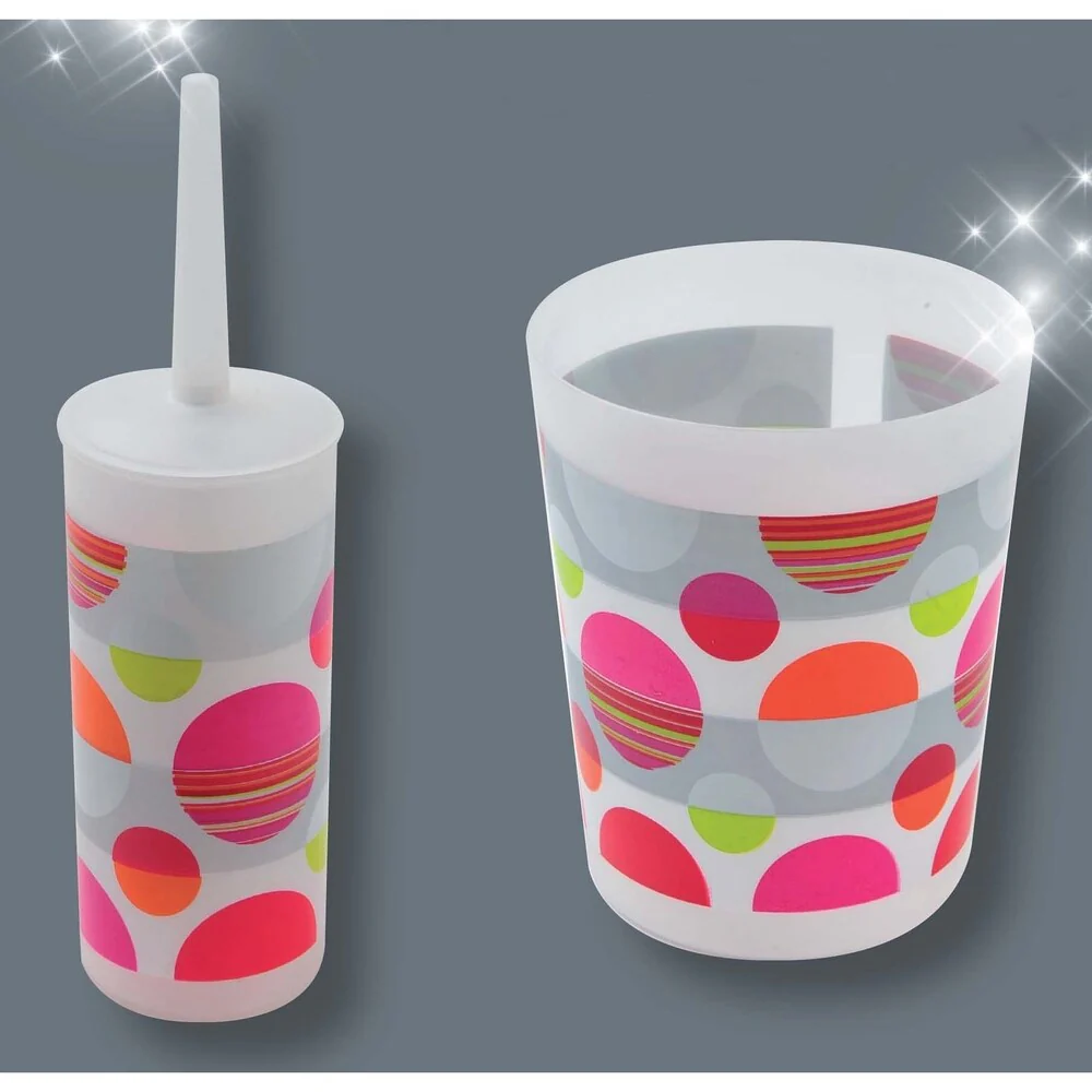 This printed trash can ECLATS for bathrooms is in polypropylene. It is opaque with colored round patterns. This trash can is a lovely accent for any bathroom with an open top, its capacity is 4.5-Liter/1.2-Gals. Diameter of 7.68-Inch and height of 9.45-Inch. Wipe clean with a damp cloth. Color multicolor. Add a fun and modern style to your bathroom decor with this lovely trash can. It's almost too pretty to toss trash into! Complete your ECLATS decoration with other products of the same collection. Imported.