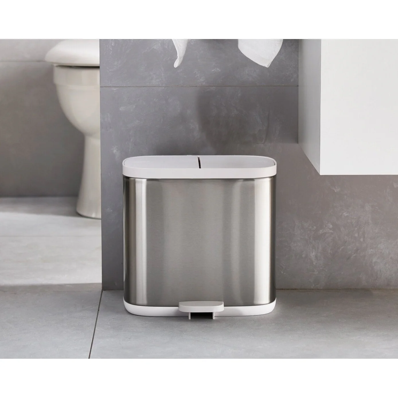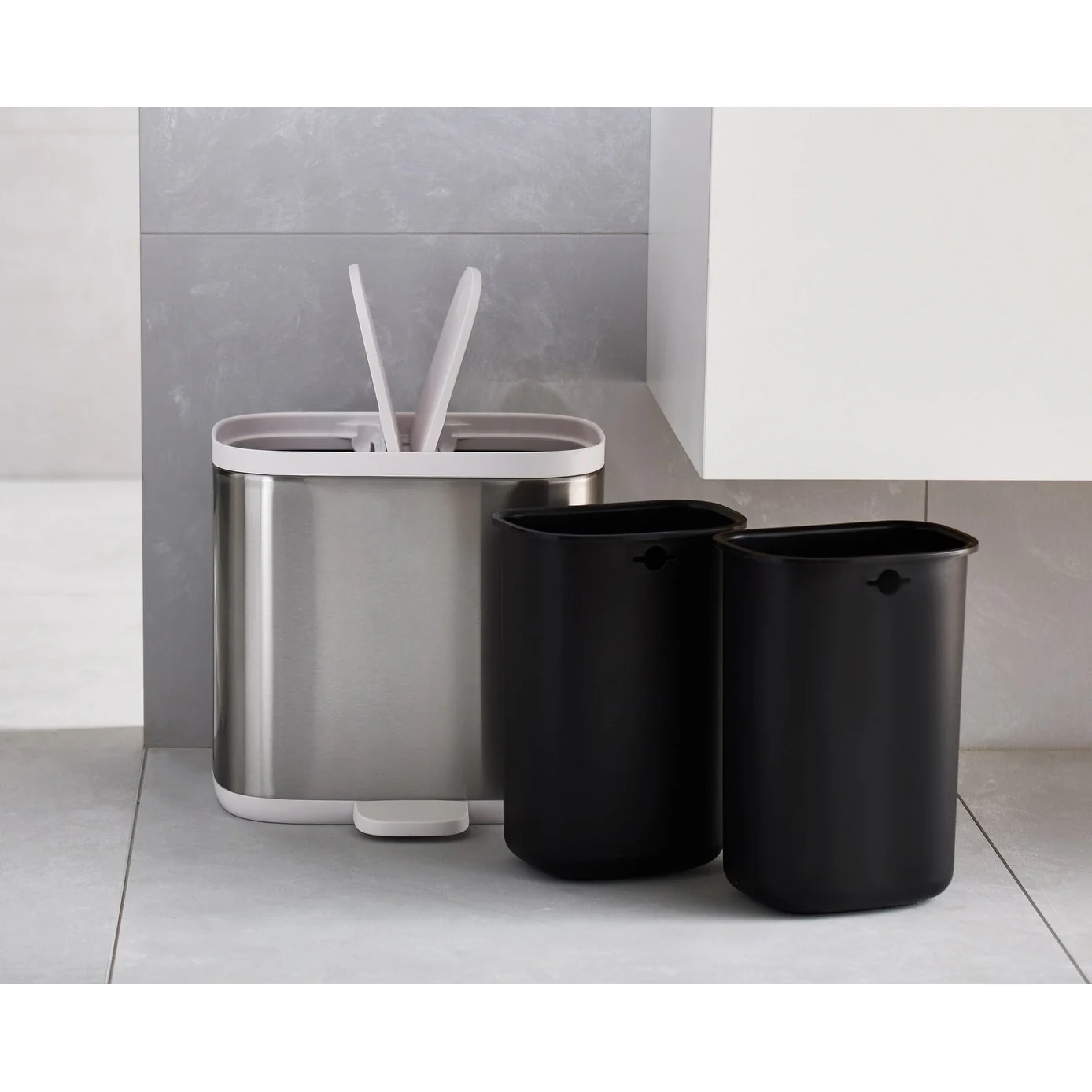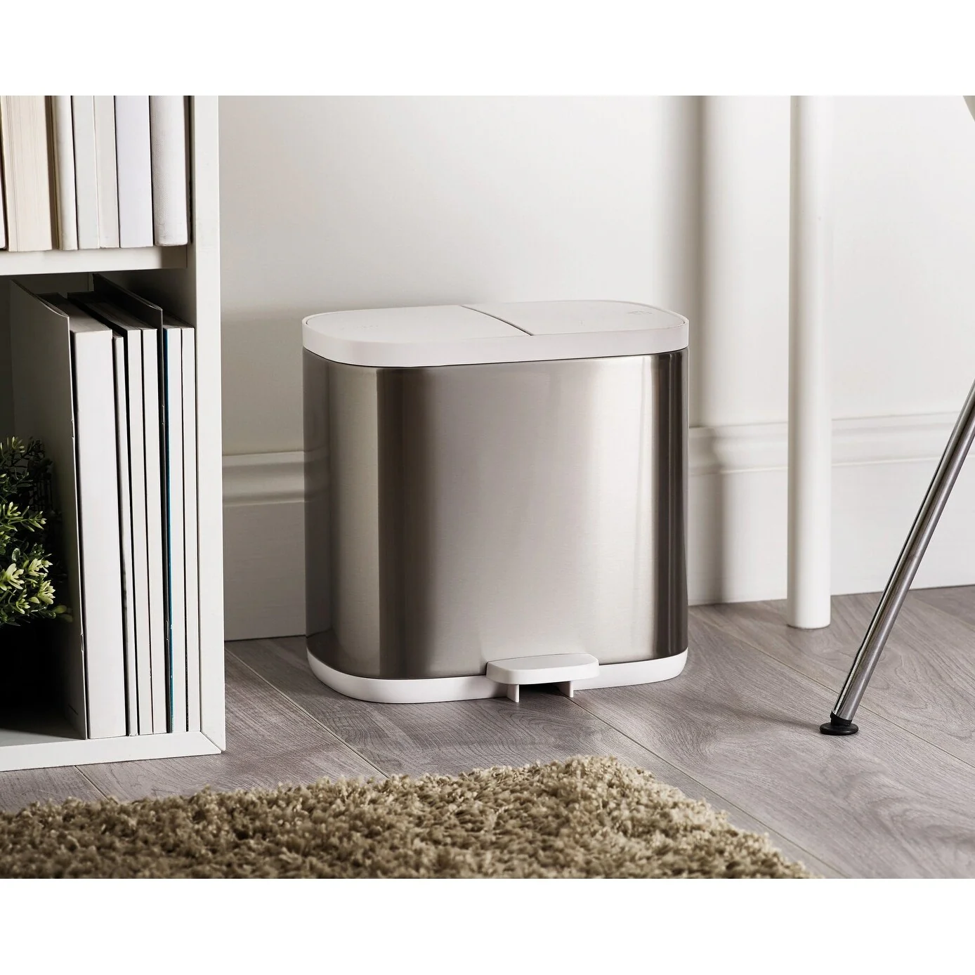 This stylish small space bin has two compartments so you can easily separate your general waste and recycling in more rooms of your house.