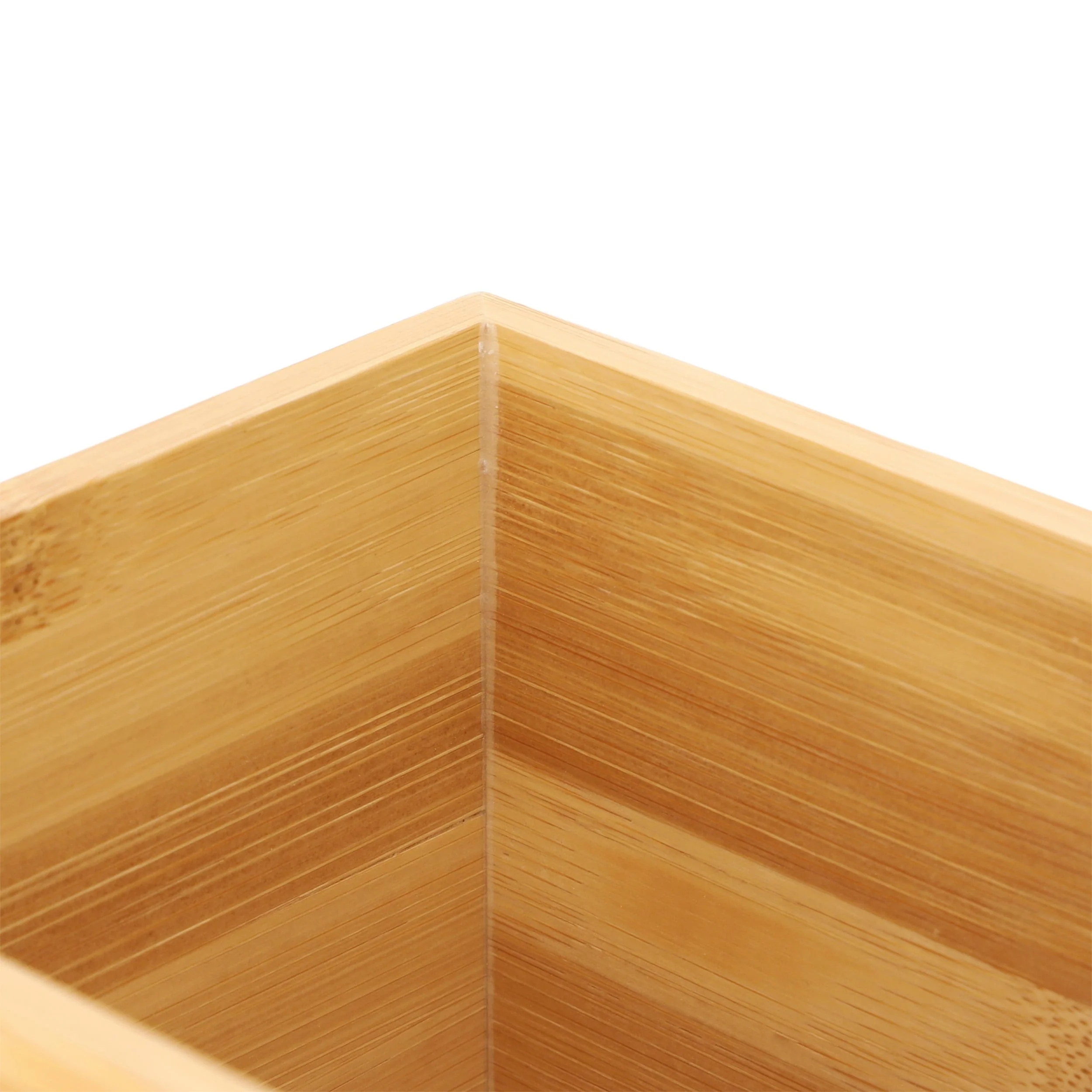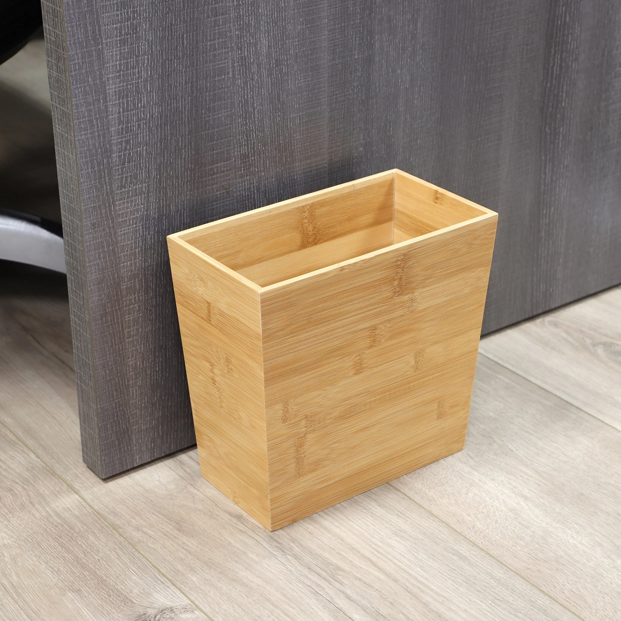 The MegaChef 10.5 x 5.75 Inch Rectangle Bamboo Waste Basket brings a sleek, eco-friendly touch to your home organization. Crafted from high-quality bamboo, this waste basket features a light, natural finish that adds warmth and elegance to any room. Its compact rectangular design makes it ideal for tight spaces, whether in the bathroom, office, or kitchen, while offering ample capacity for everyday waste. The sturdy bamboo construction ensures durability and longevity, making this waste basket not only functional but a lasting addition to your decor.With its minimalist aesthetic and versatile design, the MegaChef Bamboo Waste Basket complements a variety of interior styles, from modern to rustic. The natural grain of the bamboo creates a unique, textured surface that gives the basket a refined, organic look. It's easy to maintain-simply wipe clean with a damp cloth-and the lightweight design makes it easy to move around. Perfect for adding an eco-conscious touch to your home, the MegaChef Bamboo Waste Basket offers both style and practicality, helping you keep your spaces organized while keeping things beautifully natural. Item Dimensions: 10.50' x 5.75' x 10.00'Item Weight: 1.10lbs
