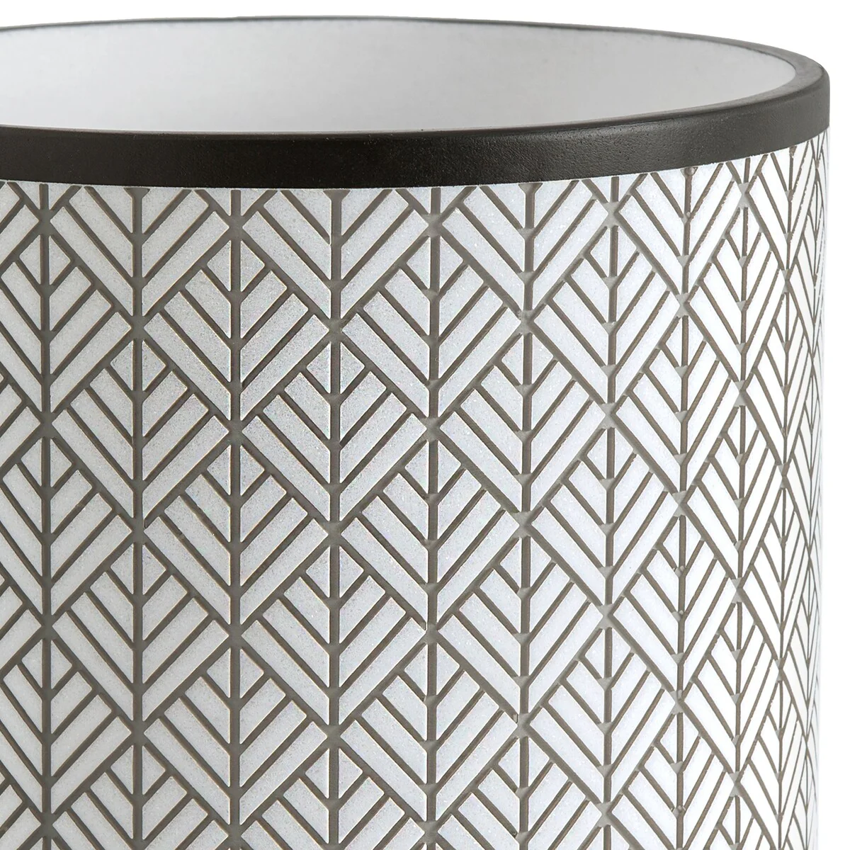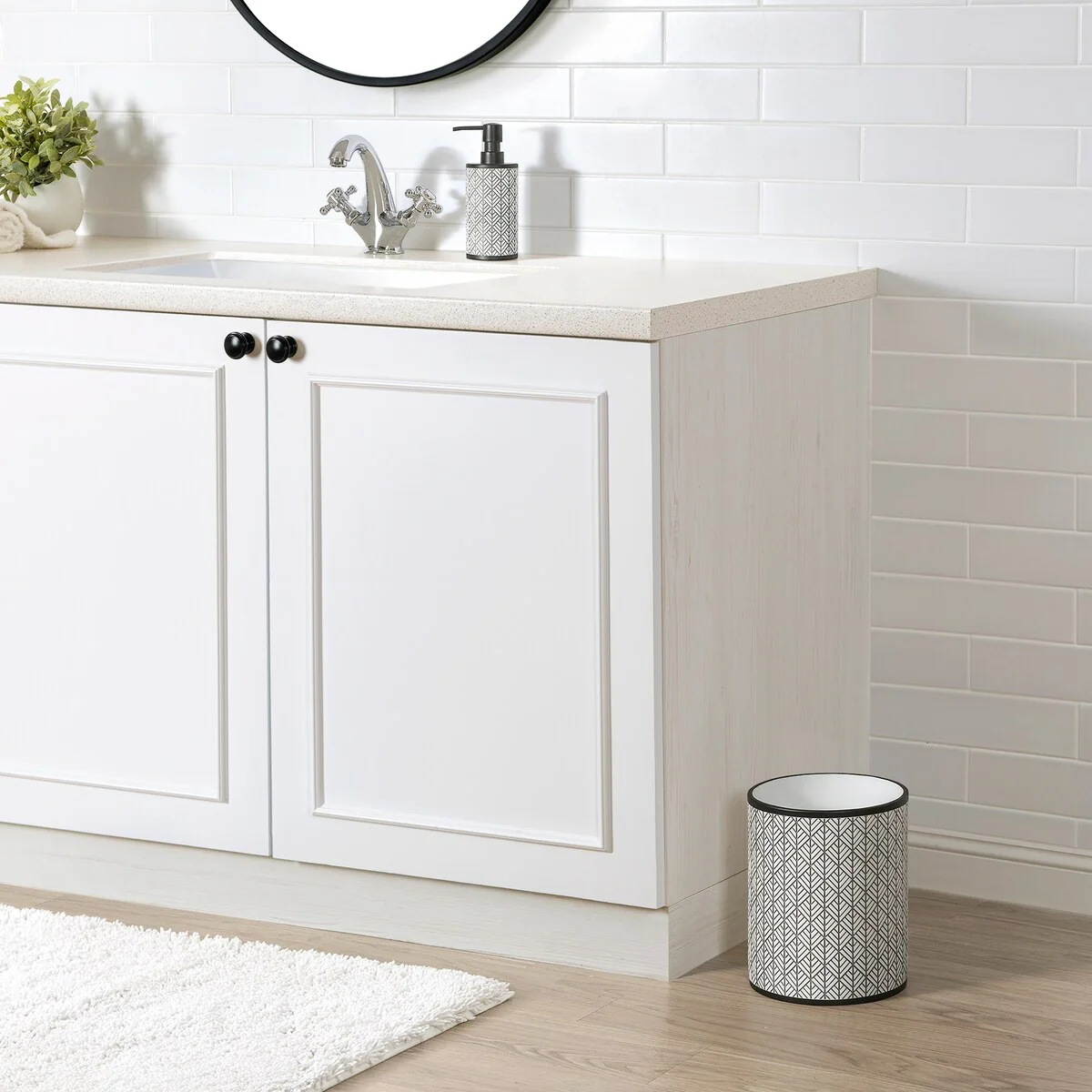 Give your bathroom a stylish update with the Shelby Wastebasket by Allure Home Creation. This cylindrical debossed can, crafted from resin in charcoal and white highlighted with black trim, features a sleek linear geometric pattern. Both decorative and functional, it will work well in your bathroom, bedroom or other rooms in your home and will easily fit in most spaces. This art deco inspired piece will dress your bathroom with sophisticated industrialized style. Use alone or coordinate with other matching pieces in the Shelby Bath Collection. Spot or Wipe Clean.