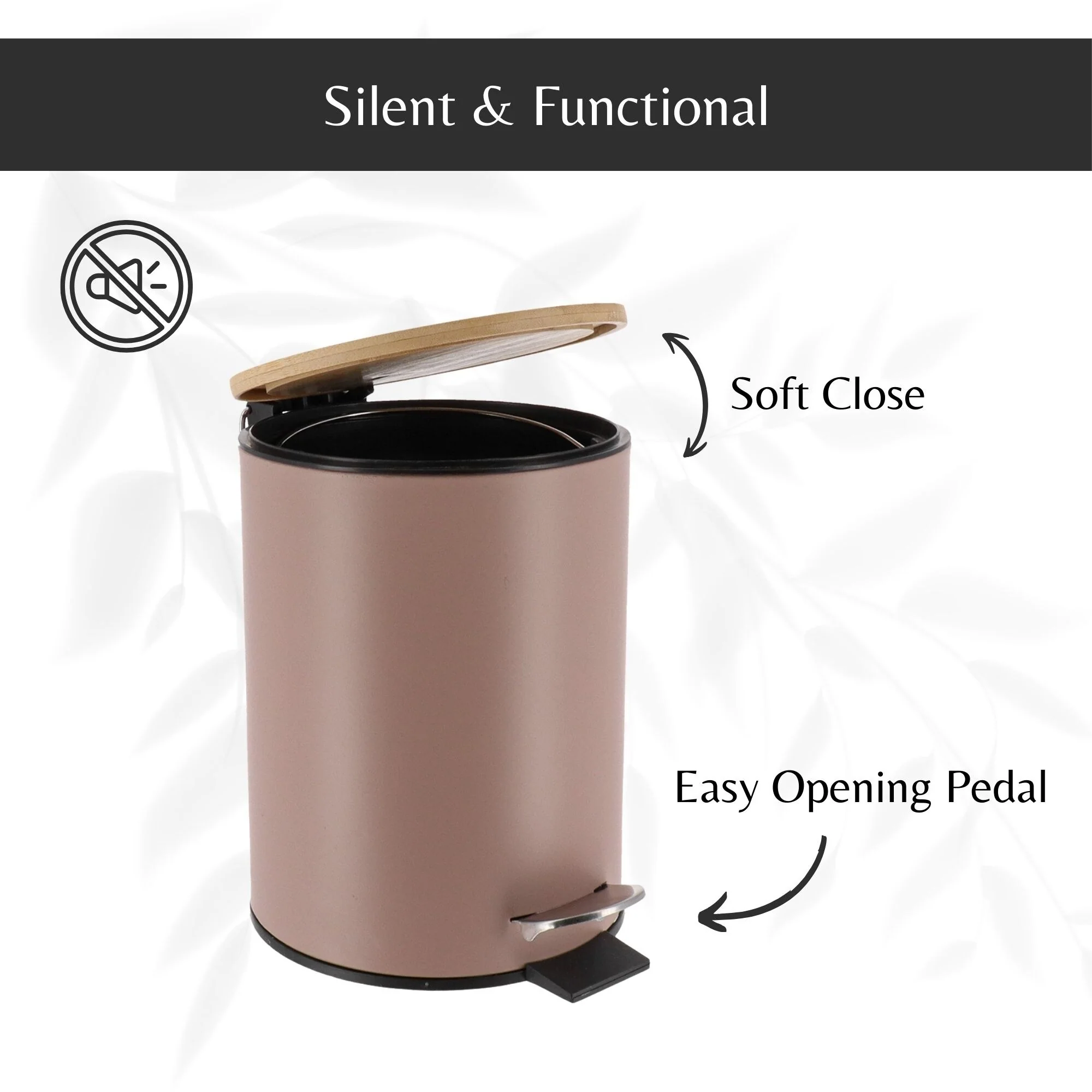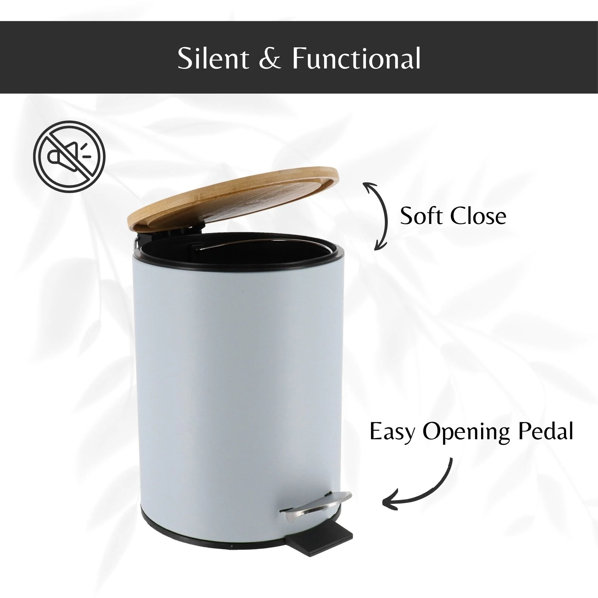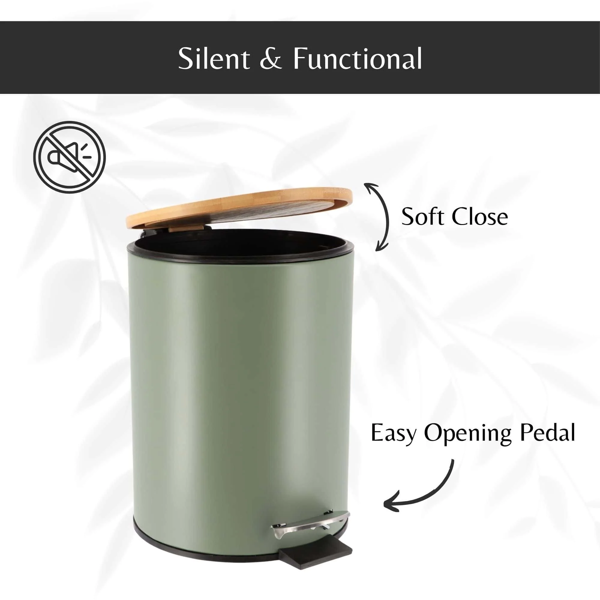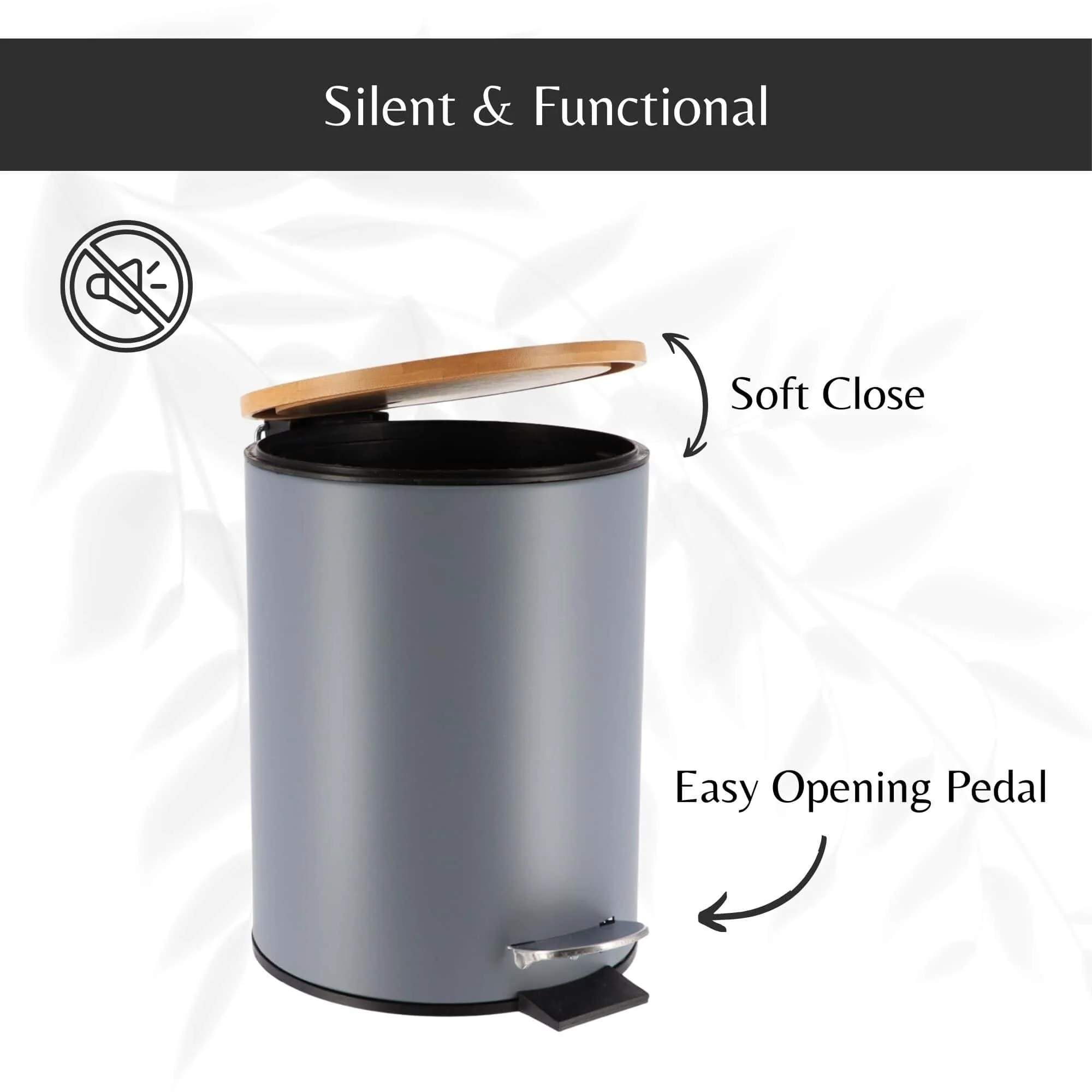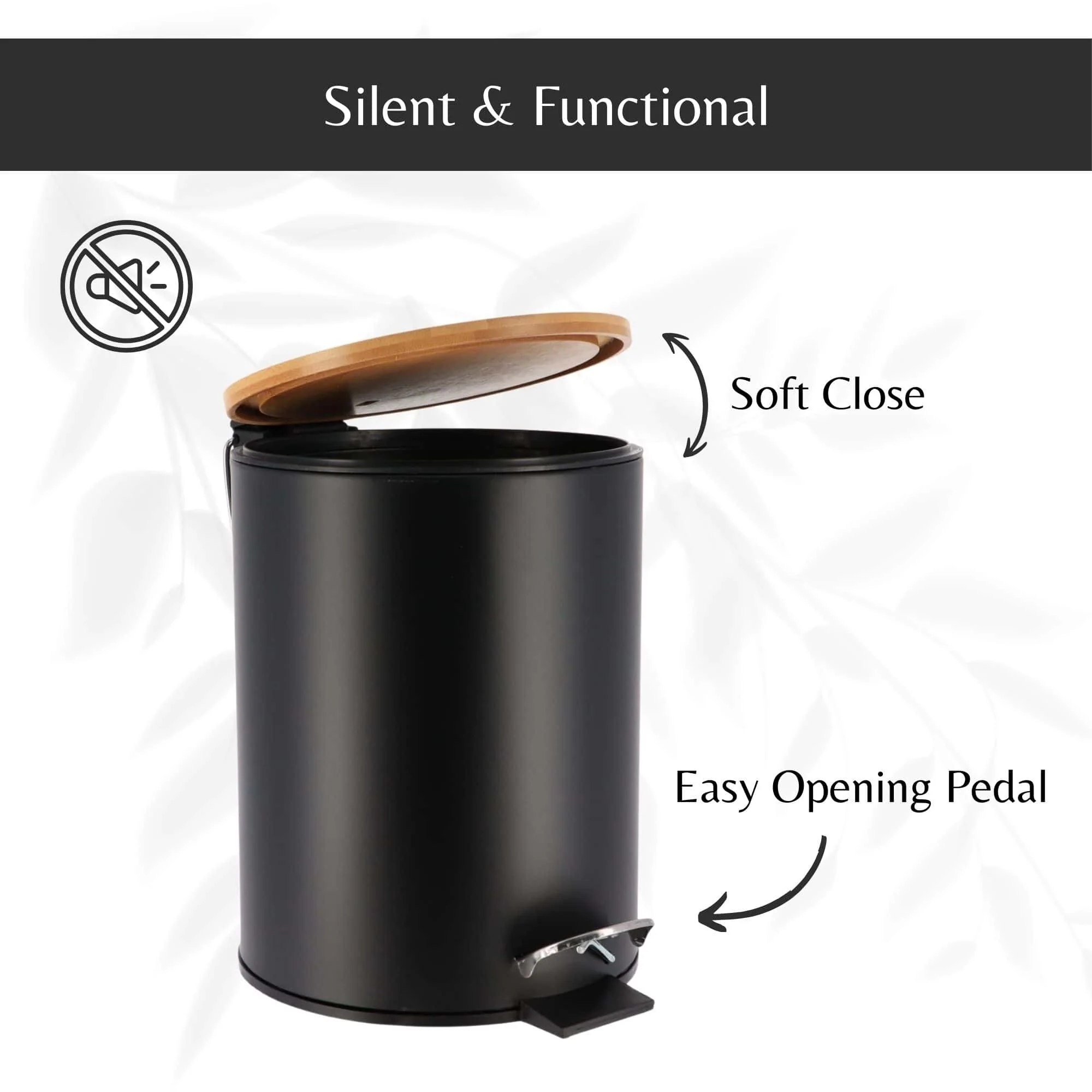 - SOFT-CLOSE LID: This bathroom trash can with lid features a soft-close design, reducing noise and enhancing convenience in any space