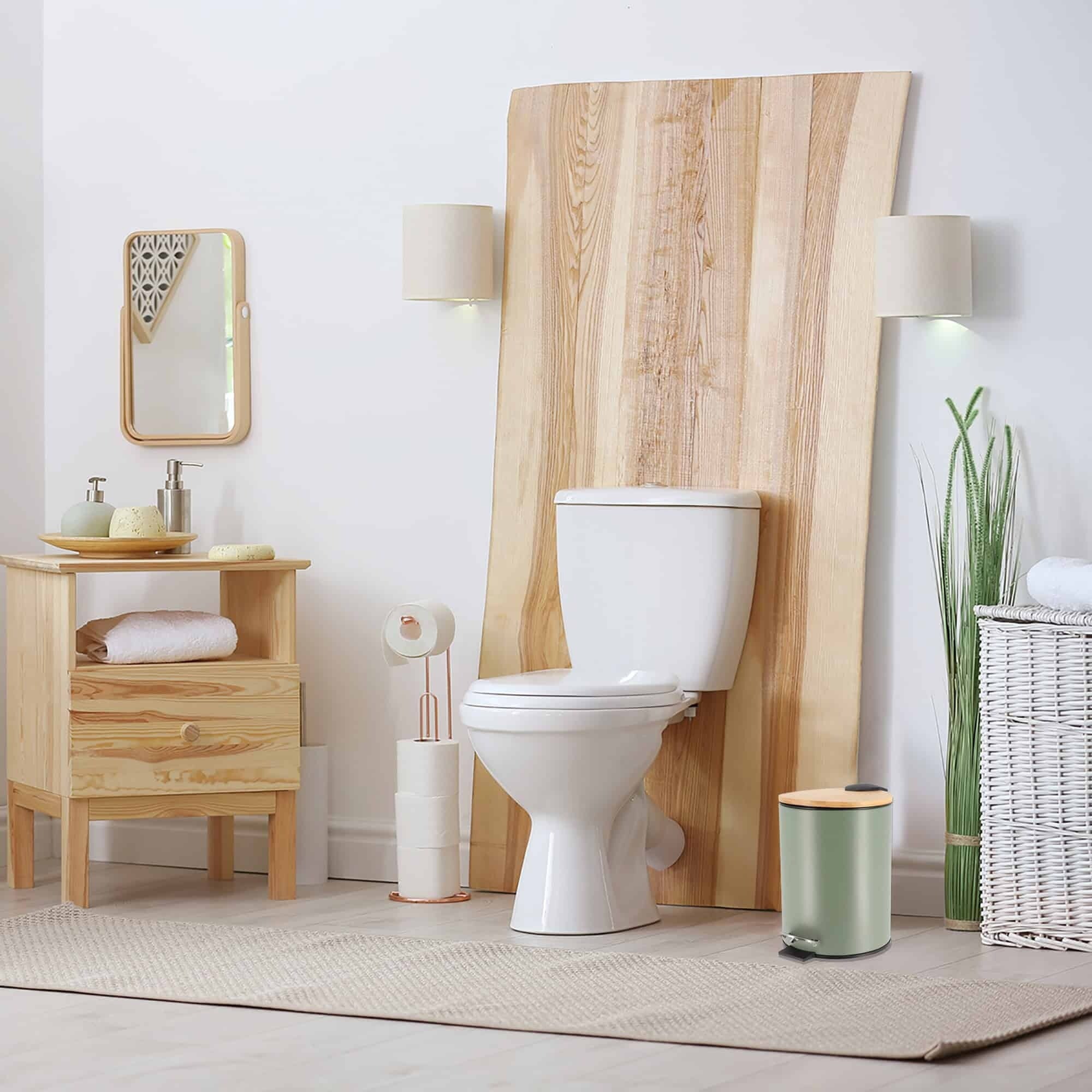Discover the perfect blend of style and functionality with our Versatile Garbage Can with Bamboo Lid. Designed for modern spaces, it features a compact 2.5 Liters (0.6-gallon) capacity, ideal for bathrooms, kitchens or offices. Additionally, its natural bamboo lid adds a contemporary touch that complements any d茅cor. Moreover, the soft-close lid of this small trash can for bathroom ensures quiet and smooth operation. It prevents noise disturbances in your home or workspace. With a durable pedal, this bathroom garbage can with a lid allows for hands-free operation, enhancing hygiene and convenience. Furthermore, the removable inner bucket makes cleaning and maintenance effortless. Simply lift it out to dispose of waste mess-free. Thanks to its compact size, this small trash can with lid for bathroom fits perfectly in tight spaces, such as under sinks or next to desks. Not only is it functional, but it��s also versatile. Use our small bathroom trash can with lid in bathrooms, bedrooms, kitchens or offices to meet your daily needs. The combination of its sleek finish and bamboo lid makes it a decorative and practical addition to any space. Finally, pair it with other items from the Willis Collection for a cohesive and stylish look in your bathroom or home. Experience the perfect solution for small waste disposal with a design that combines elegance and practicality.