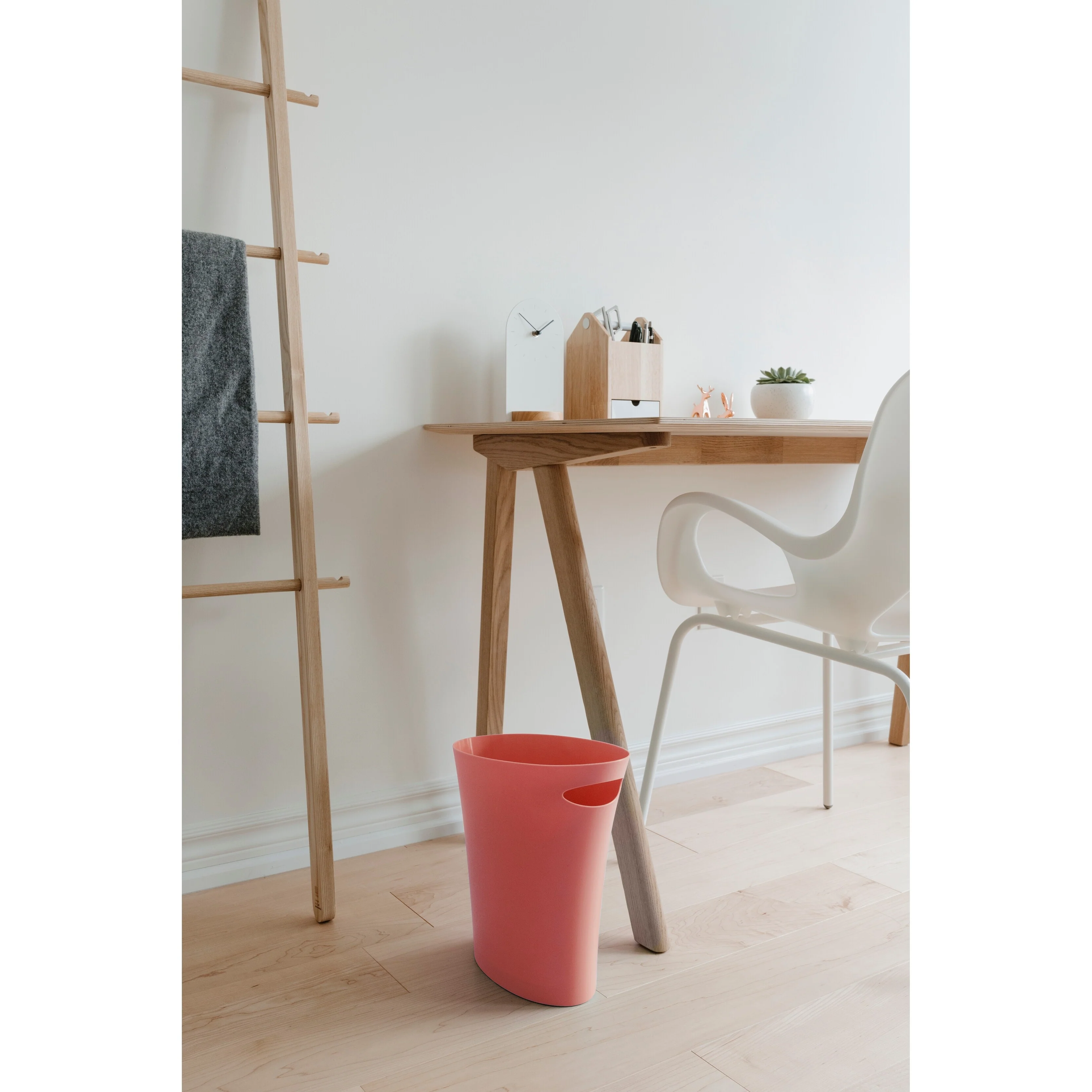 If you are searching for a small bathroom �garbage can, kitchen trash can, or office trach can, that is stylish and modern this may be the perfect solution for you. Introducing the Skinny Can from UmbraUmbra Skinny is a slim waste basket that makes a statement. A wildly popular follow up to the best-selling and award-winning Garbino trashcan, Skinny offers all the most loved features of Garbino, but with a narrow, streamlined footprint that makes it ideal for small spaces. Available in a wide array of stylish colors and unique finishes to match any d茅cor, Skinny features a modern profile that looks just as impressive in your bathroom or bedroom as it does by your desk at the office. Made from durable polypropylene, Skinny trash can is easy to wipe clean and designed to stand up to everyday use. The built-in handle makes it easy to pick up and empty, while the narrow footprint allows it to easily fit into tight spaces where an ordinary bathroom wastebasket could never go. Take an everyday essential from mundane to magnificent and order your Skinny Trash Can from Umbra today! About Umbra: A global product design company providing original, modern, casual, and functional design for the home.