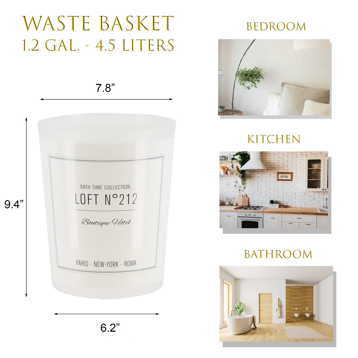 - STYLISH DESIGN: Chic black writing on white plastic trash can adds a touch of elegance to any room, perfect for both home and office settings