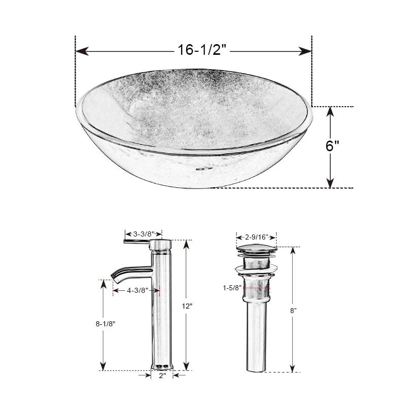 Glass boat sink: 21.3' W x 13.8' D x 6.3' H