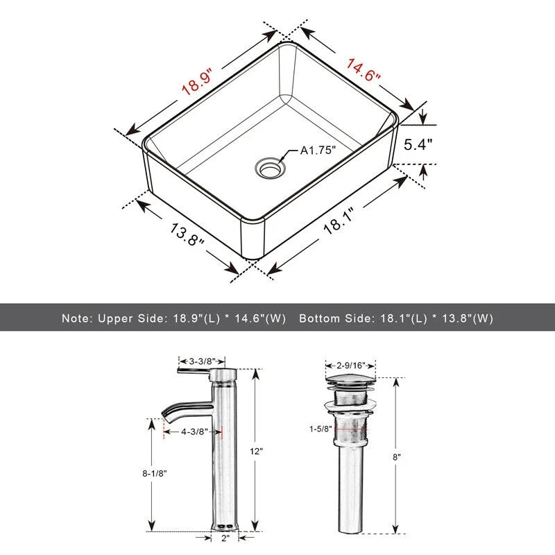 Ceramic rectangle Sink: 18.9' W x 14.6' D x 5.4' H
