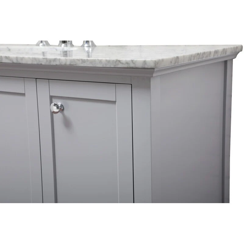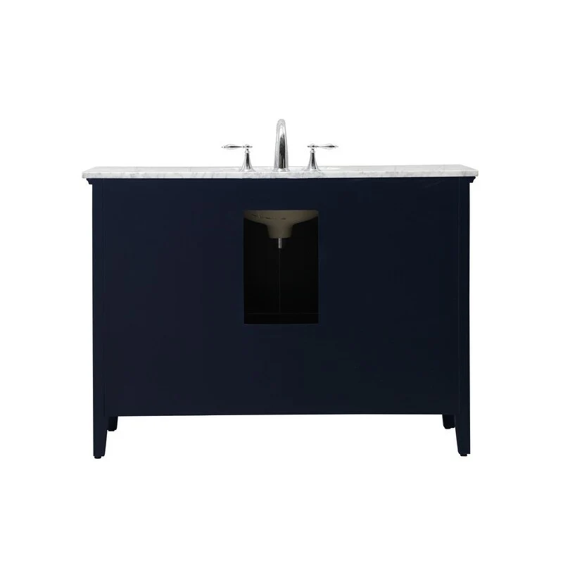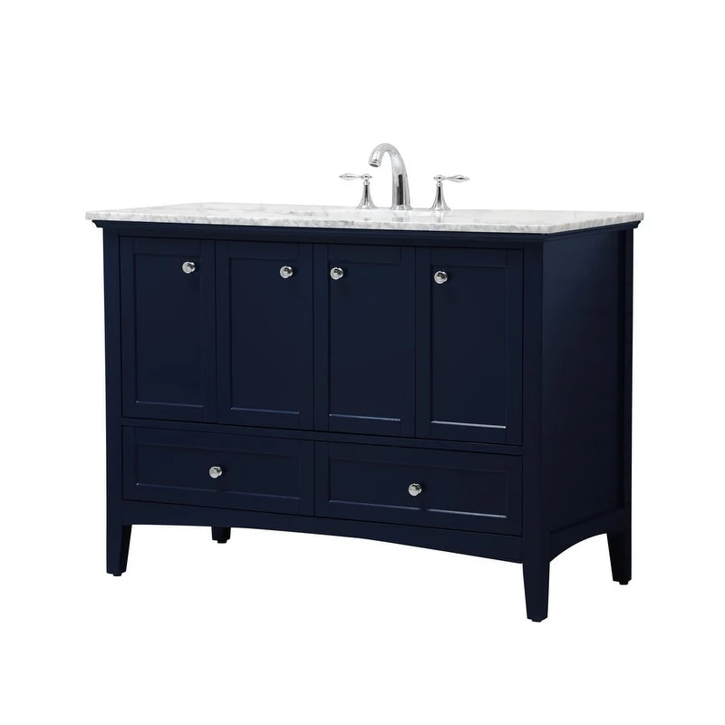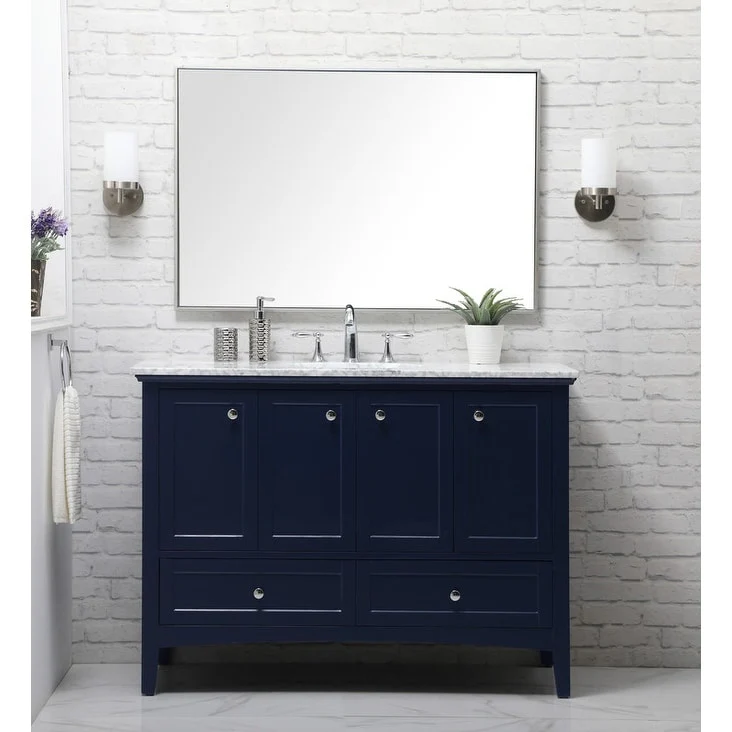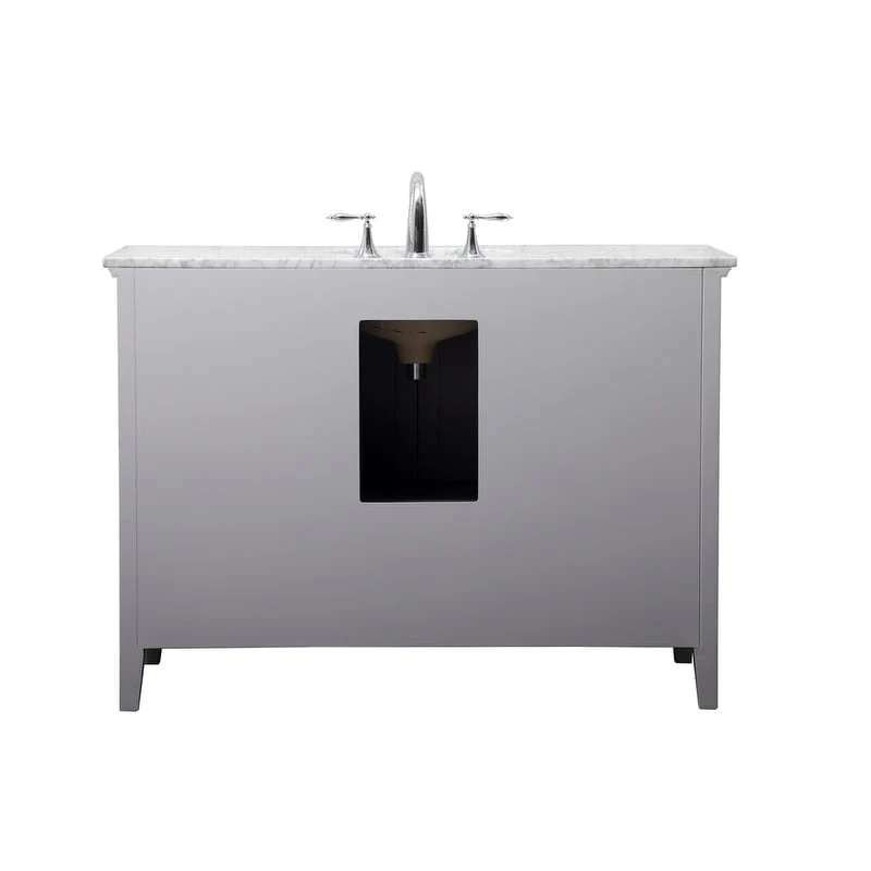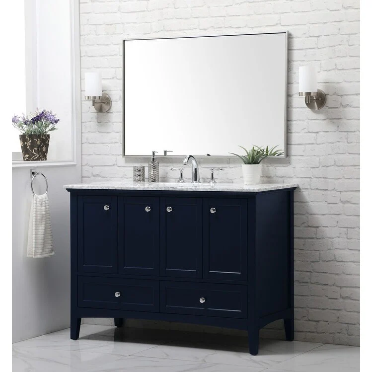 If you have space, why not indulge in this bathroom vanity set? The handy soft-close doors open to reveal one wide middle shelf, and two smaller side shelves. It provides more storage space for your belongings, ensuring that you'll have all your toiletries in one spot. It also means an abundance of counter space. It will make even your electric toothbrush holder look right at home on this vanity. A cute oval undermount sink completes the look and also allows for easy cleaning of the countertop.