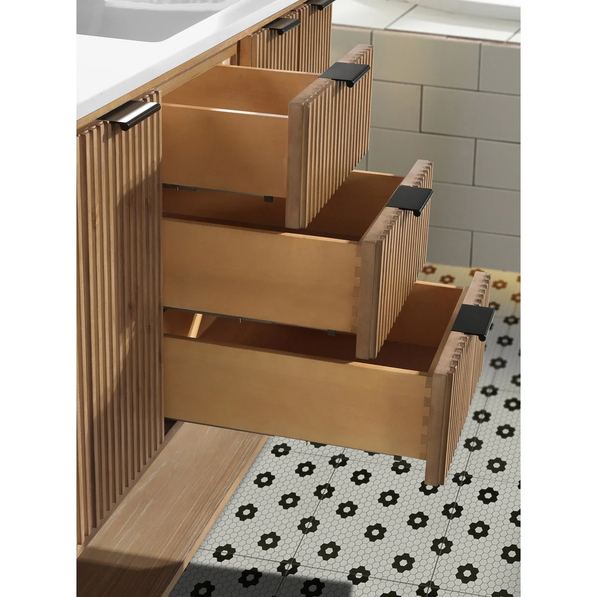 - The solid wood dovetail drawer boxes add to the durability and quality of the vanity.