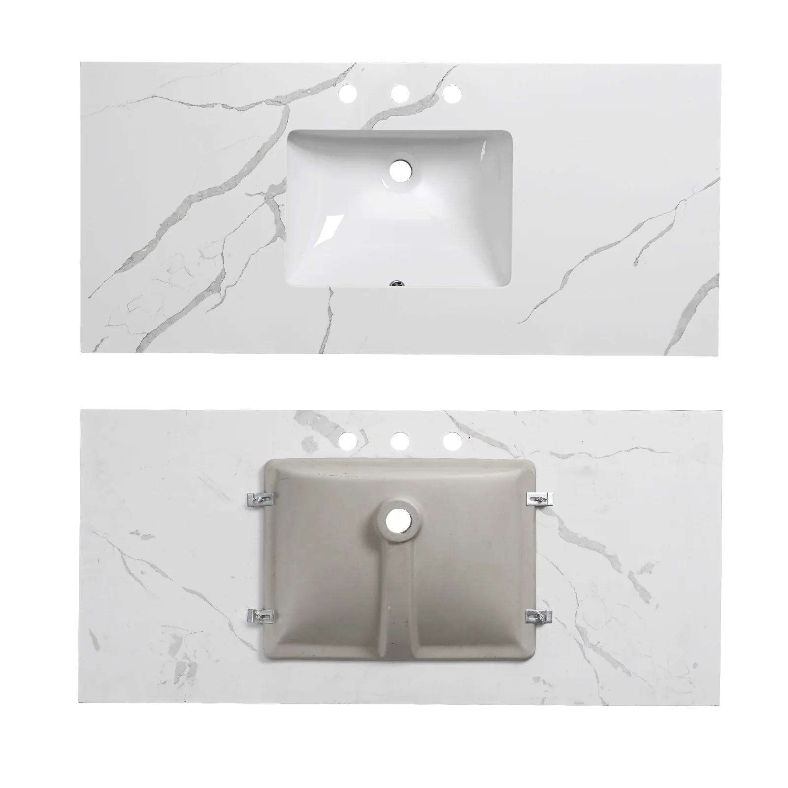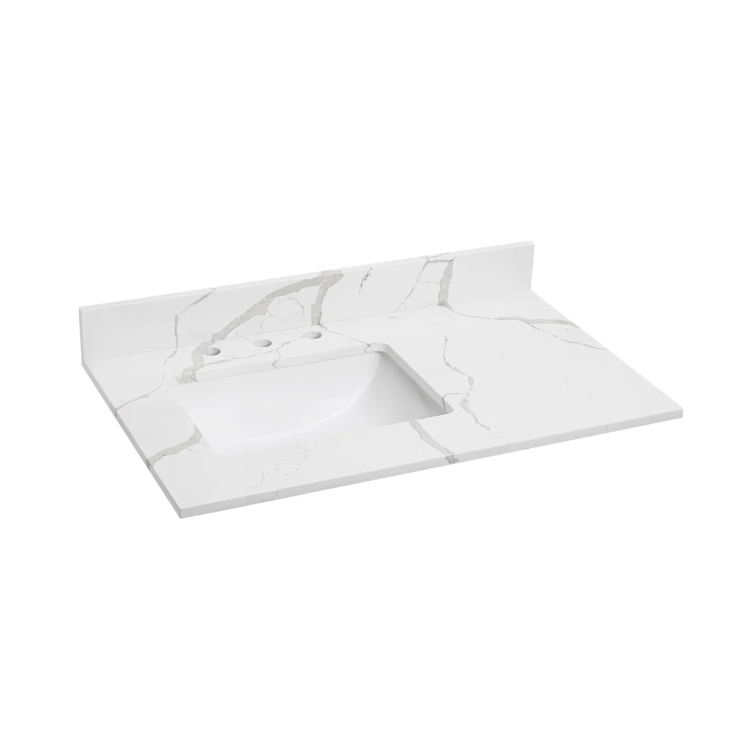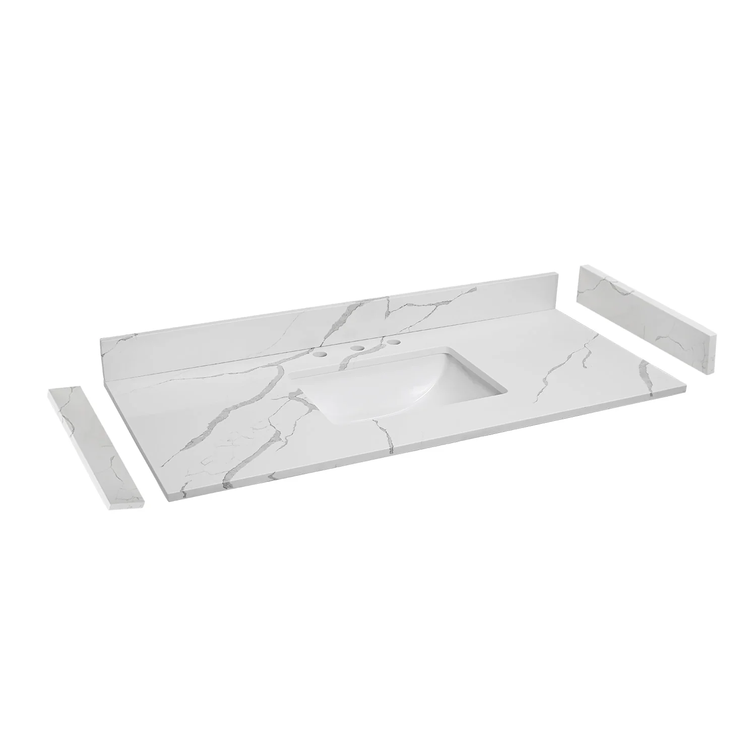 - Three pre-drilled holes make installing a 4' centerset faucet easy; Single mount with deck plate also works with this top.