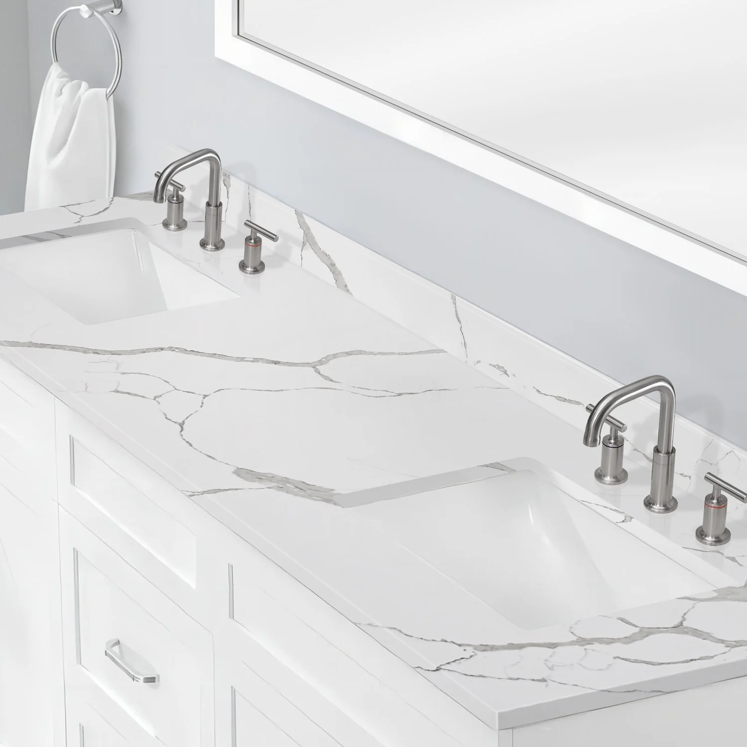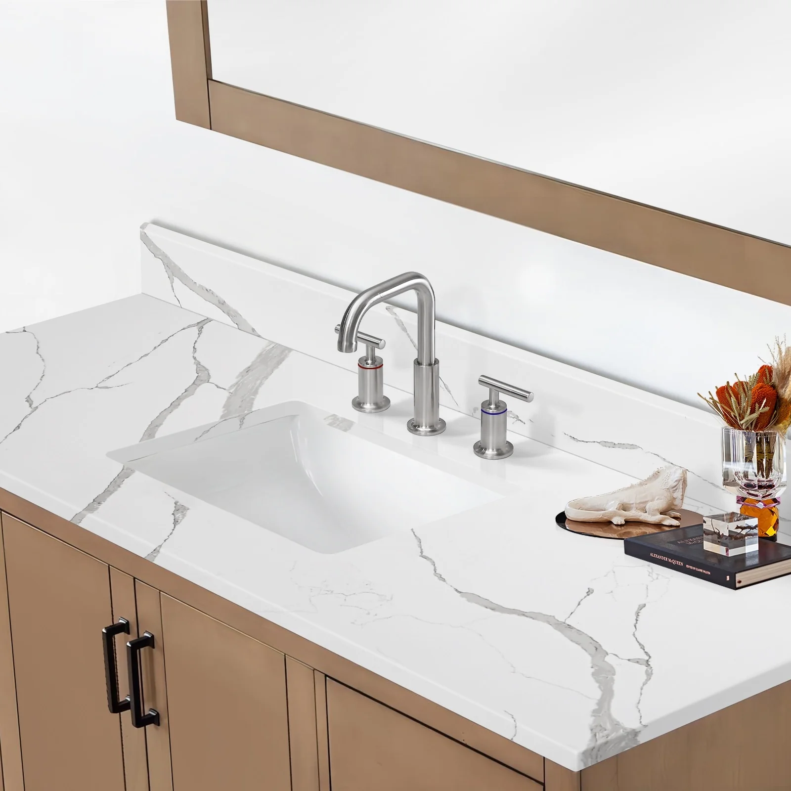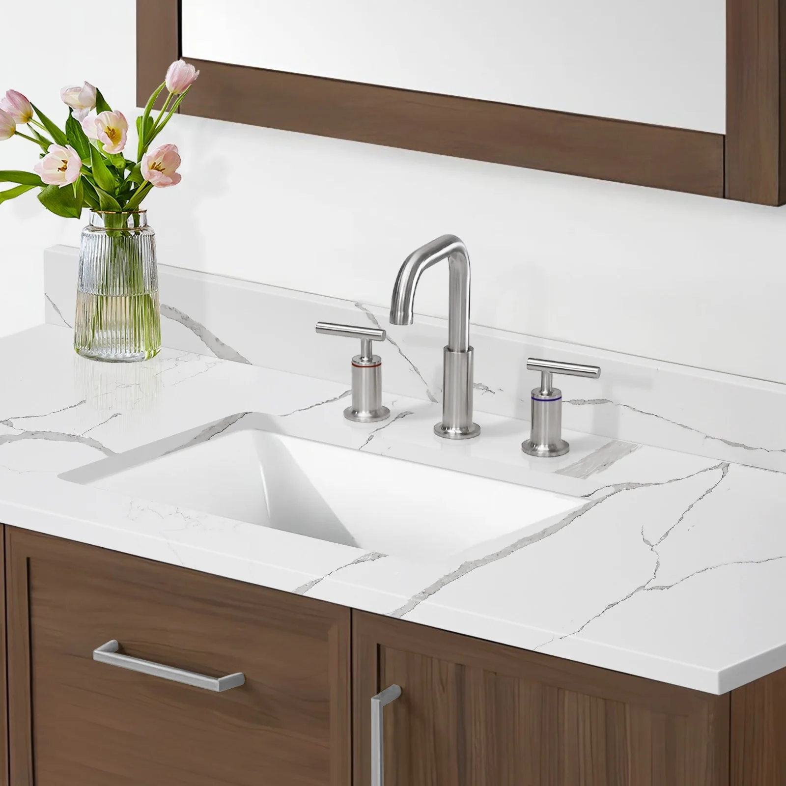 - Faucet Mounting: 8 inch widespread faucet hole